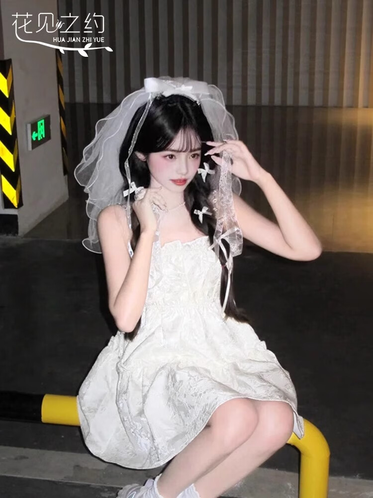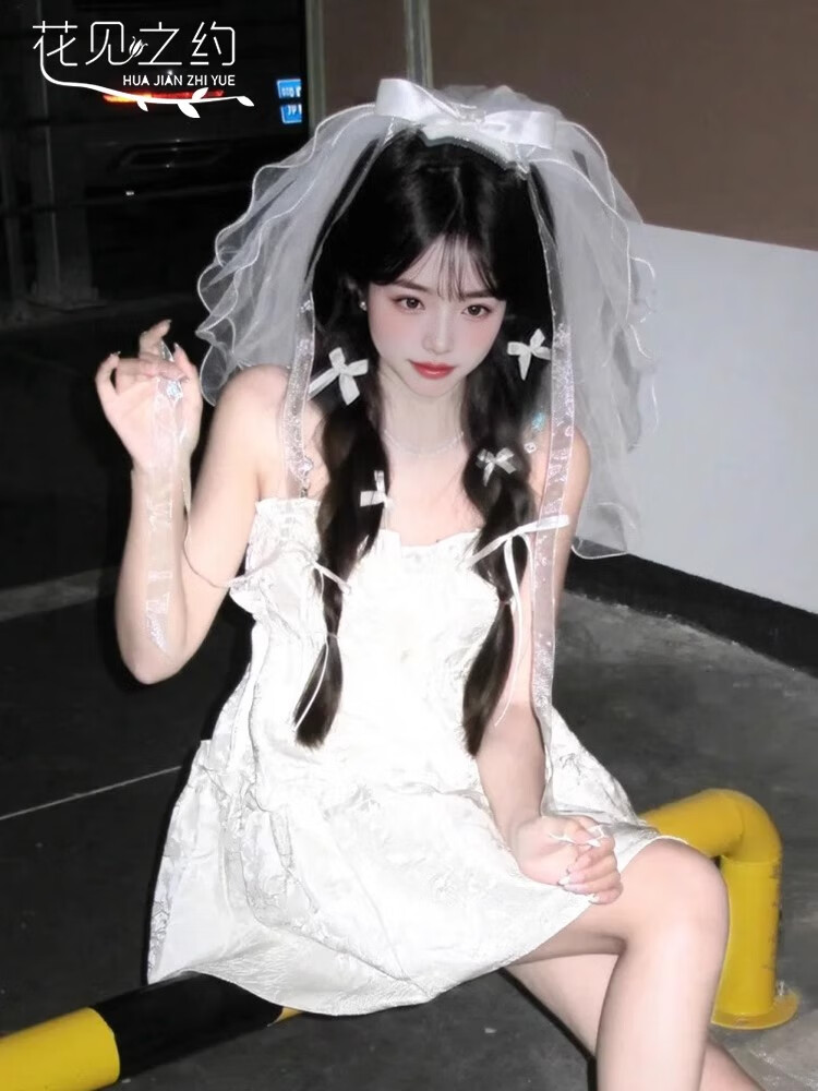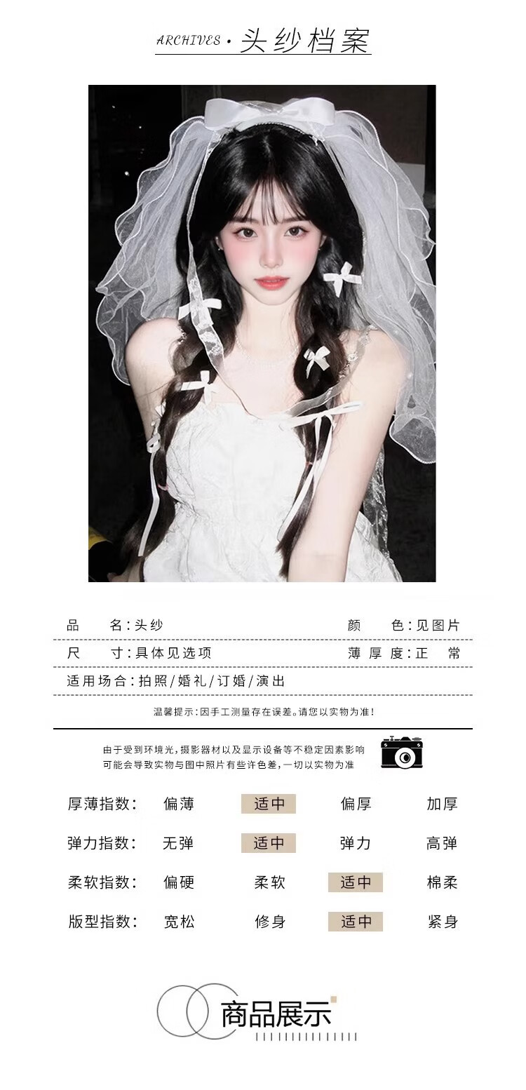 Pu Lian Proposal Veil, Certification, Bride Engagement, Marriage Registration Ceremony, High Head Photo Props, Simple Wedding Hairdress, Double Curled Bow Pearl (hairpin)