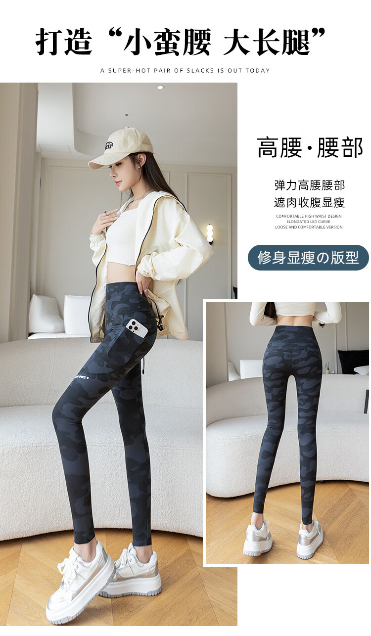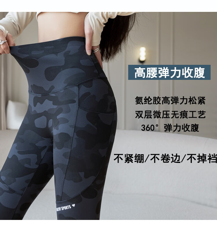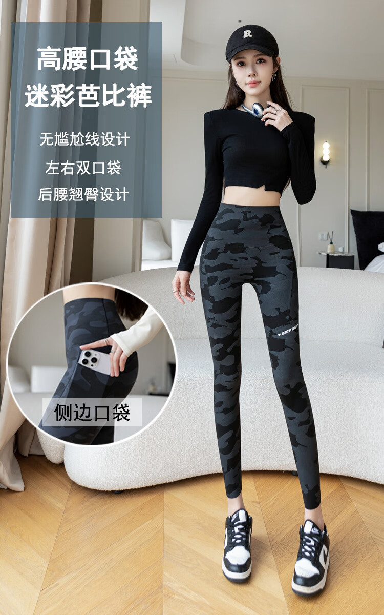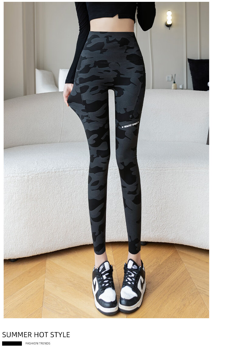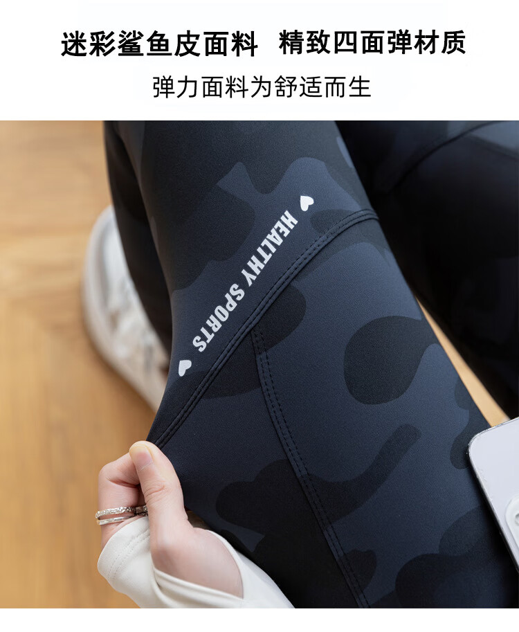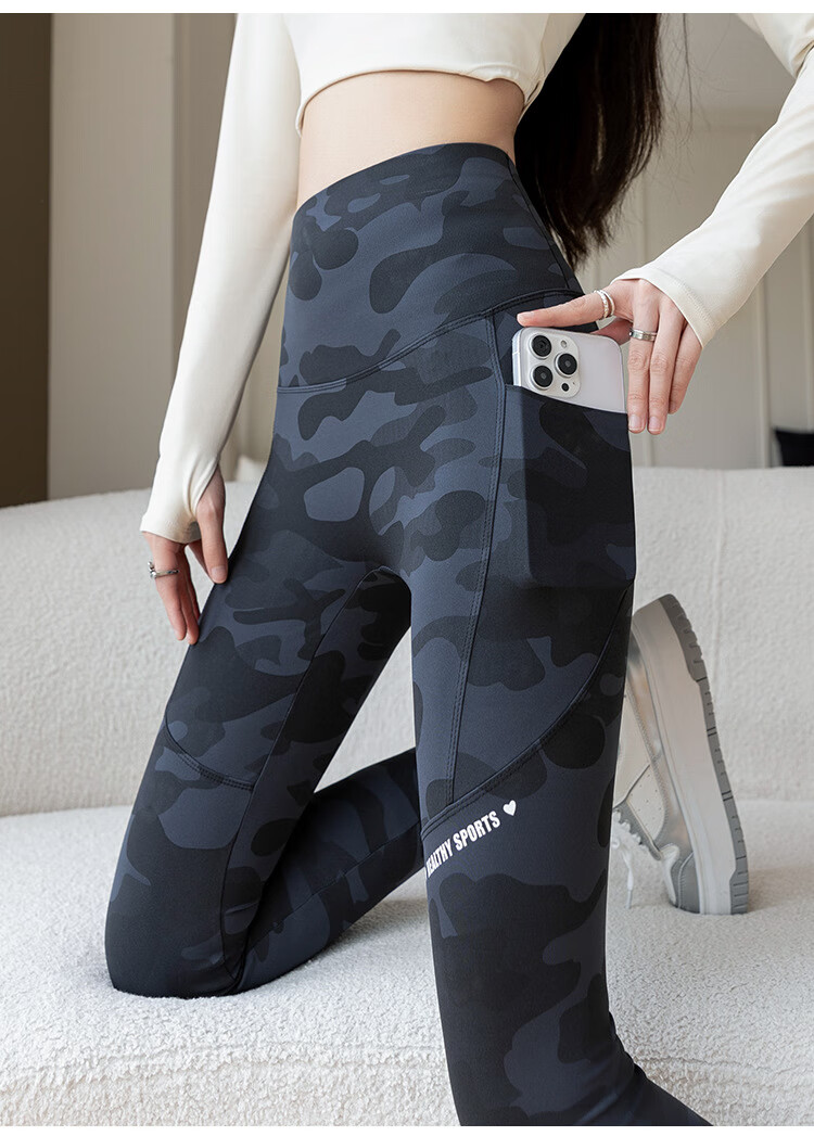 Camouflage double pocket shark pants plus velvet leggings for women's outer wear 2025 new autumn and winter large size tummy control pants yoga pants black - sherpa - double pocket style thickened velvet 2XL suitable for 130-150Jin Jin equals 0.5 kg