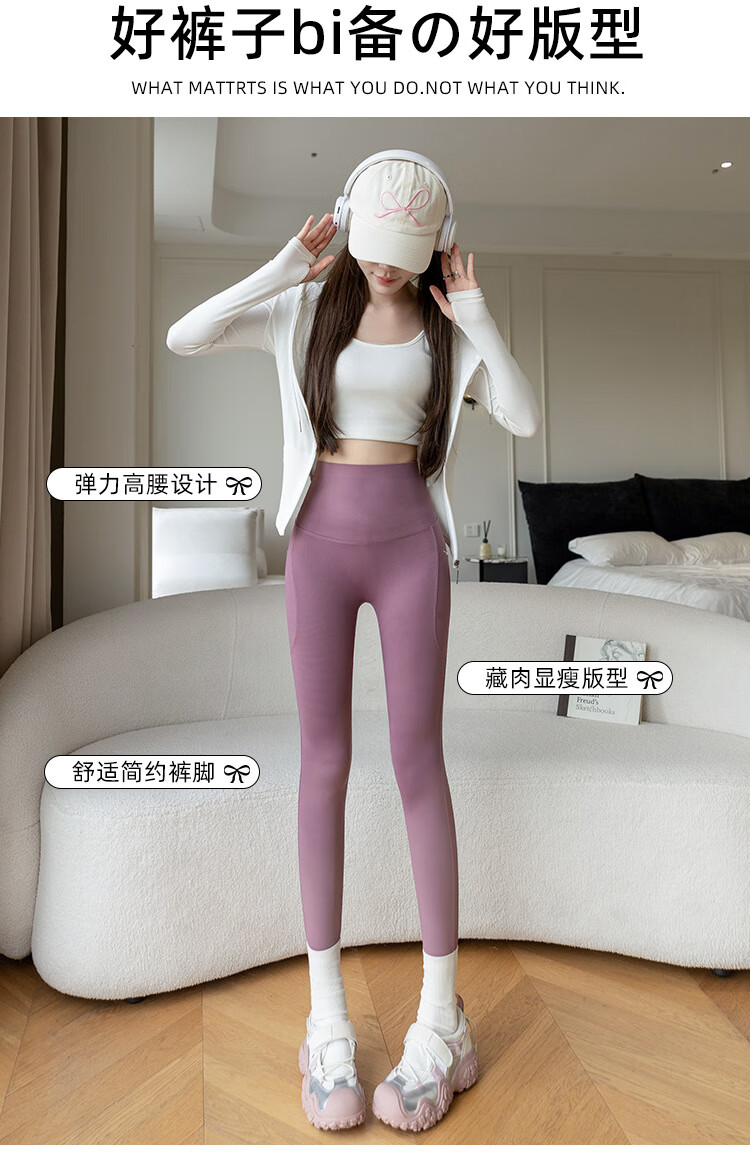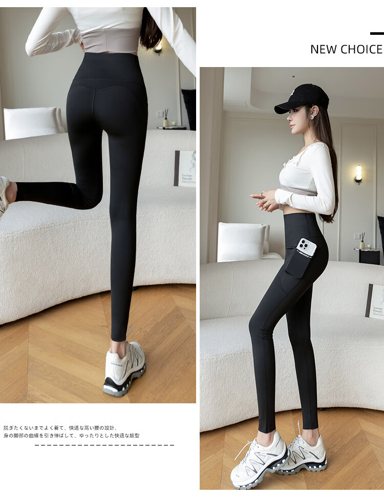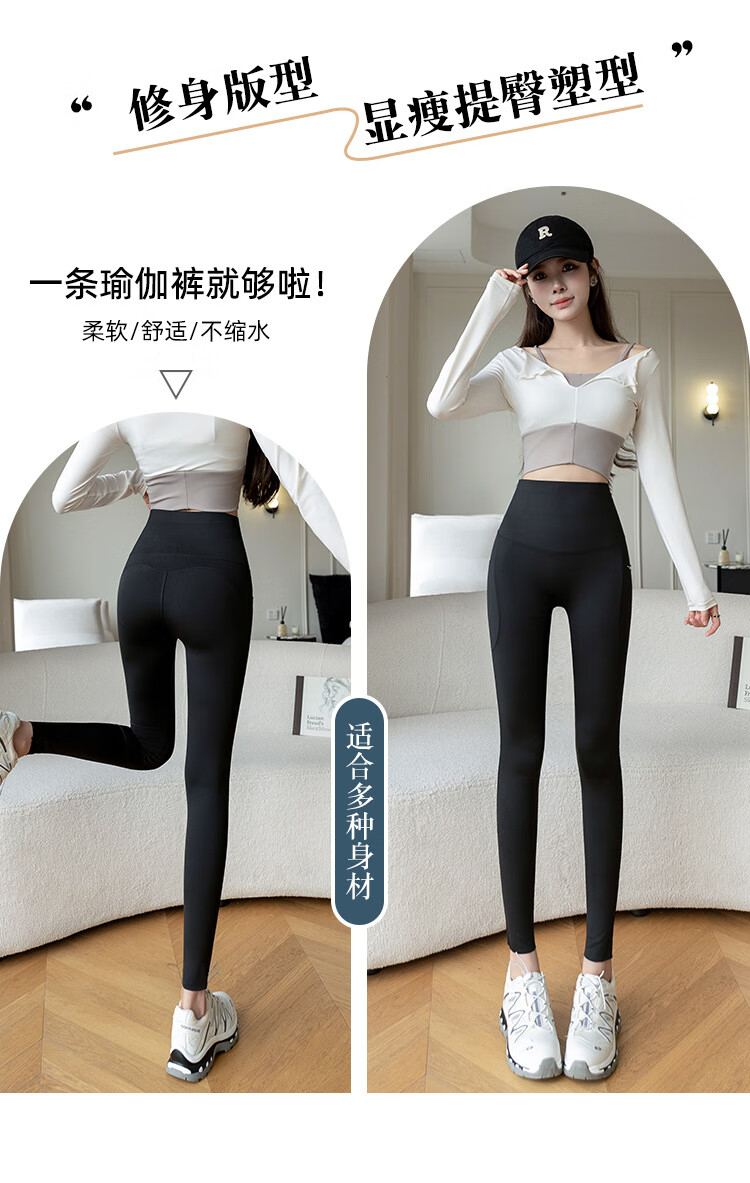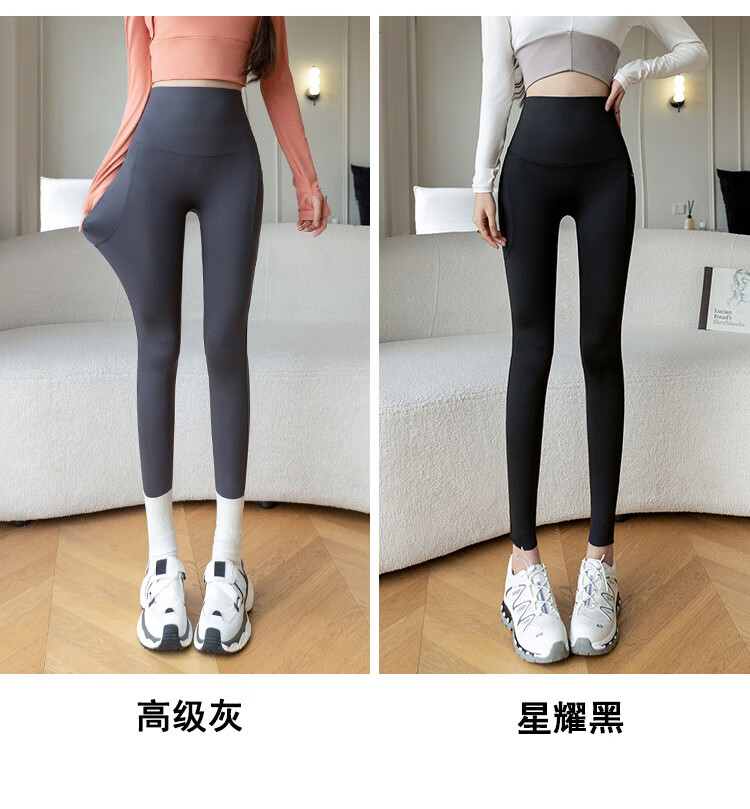 Double Pocket Large Size Shark Pants Plus Velvet Leggings for Women Autumn and Winter Outerwear 2025 New Warm Yoga Pants Belly Control Pants Star Black - Double Pocket Spring and Autumn Style No Velvet M 80-100Jin Jin is equal to 0.5kg