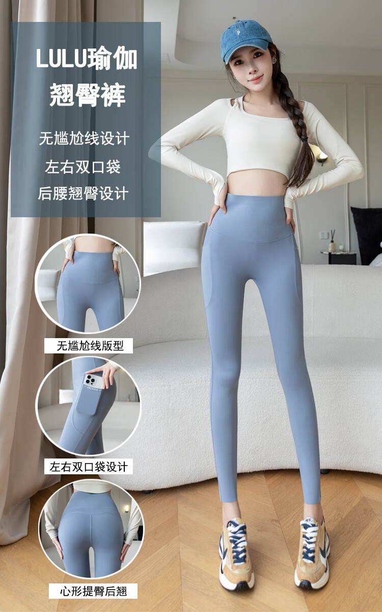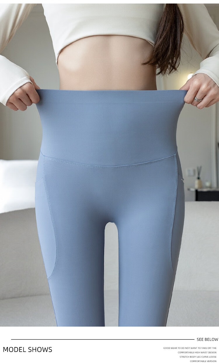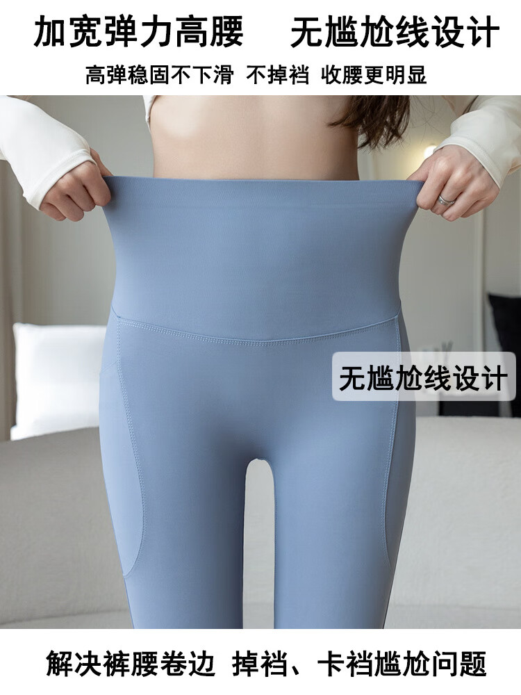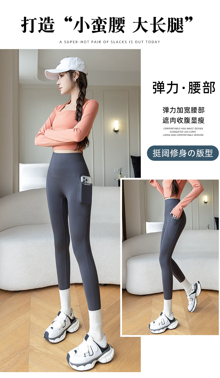 Double Pocket Large Size Shark Pants Plus Velvet Leggings for Women Autumn and Winter Outerwear 2025 New Warm Yoga Pants Belly Control Pants Star Black - Double Pocket Spring and Autumn Style No Velvet M 80-100Jin Jin is equal to 0.5kg