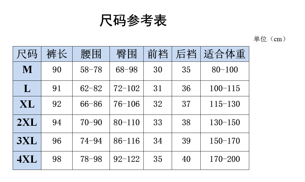 China (cm) 160-165/84-86 165-170 / 88-90 167-172 / 92-96 168-173 / 98-102 170-176 / 106-110