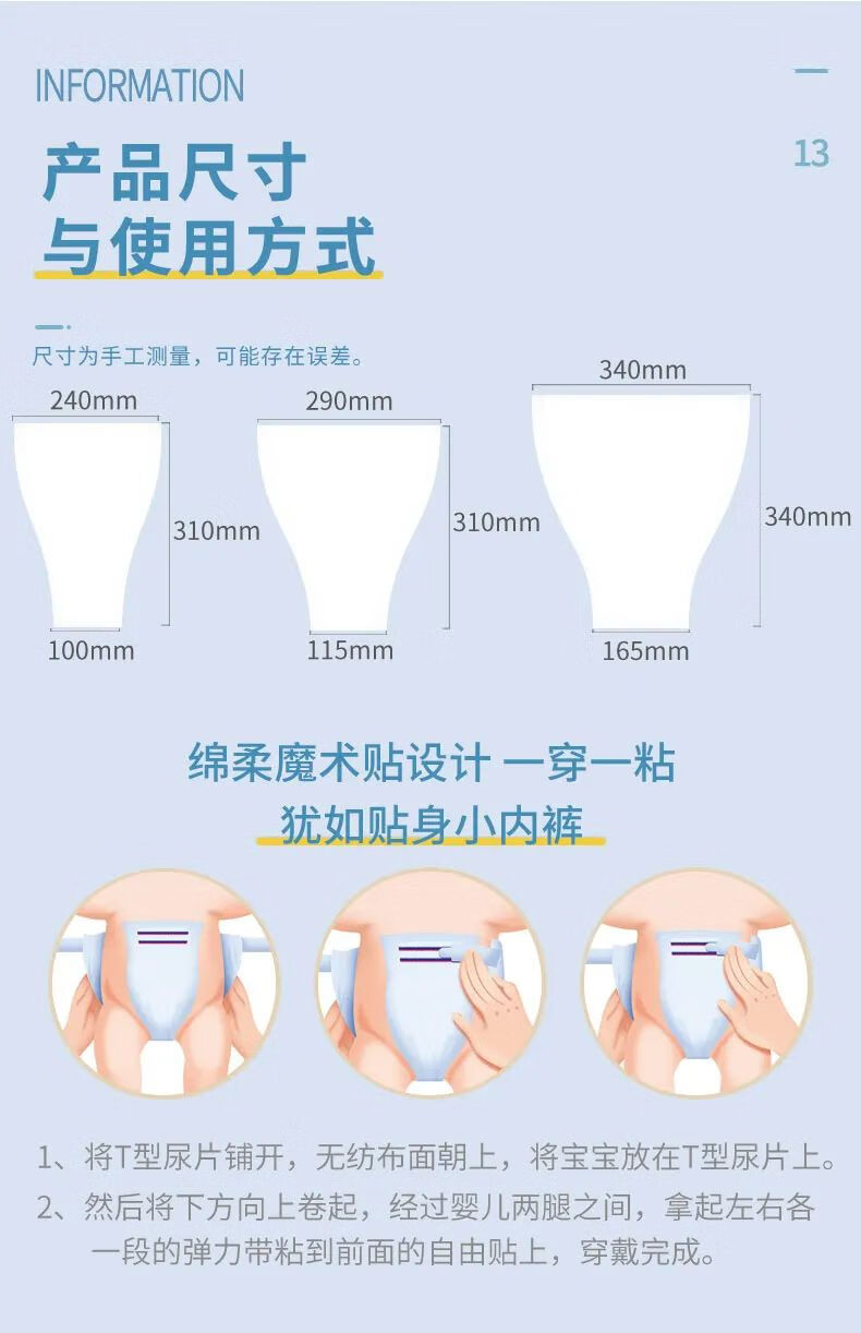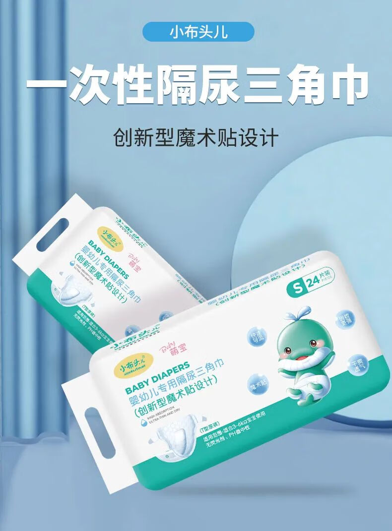 Small cloth triangle baby disposable T-shaped diaper waterproof diaper pad newborn diaper care pad Velcro baby triangle diaper M size 20 pieces 2 packs 24x31mm