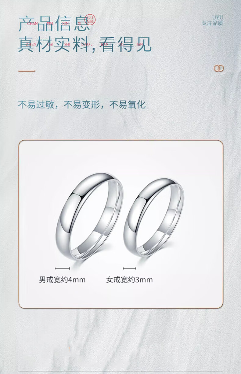 VCIXYOU platinum couple ring PT950 platinum wedding proposal ring plain ring birthday anniversary gift for girlfriend gold-plated model-single ring remarks style-male/female