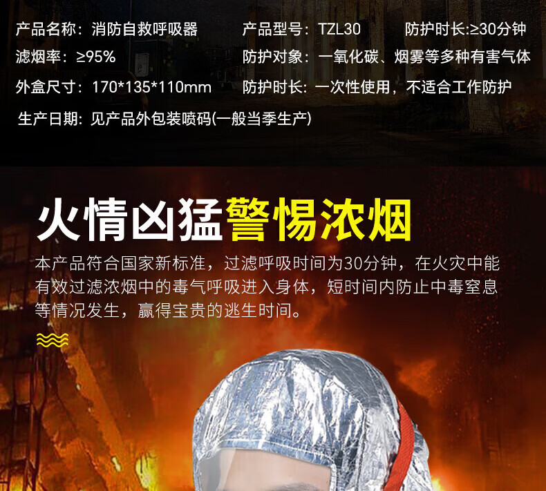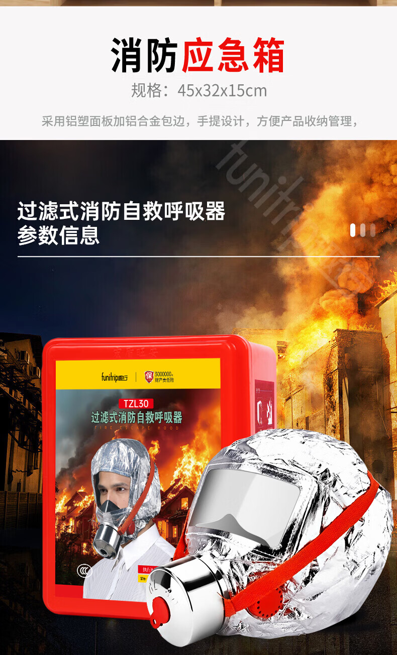 Quxing Family Fire Emergency Kit Home Fire Escape Set Fire Extinguishing Equipment Gas Mask Civil Air Defense Readiness Rescue Fire Emergency 12-piece Set Family of Three