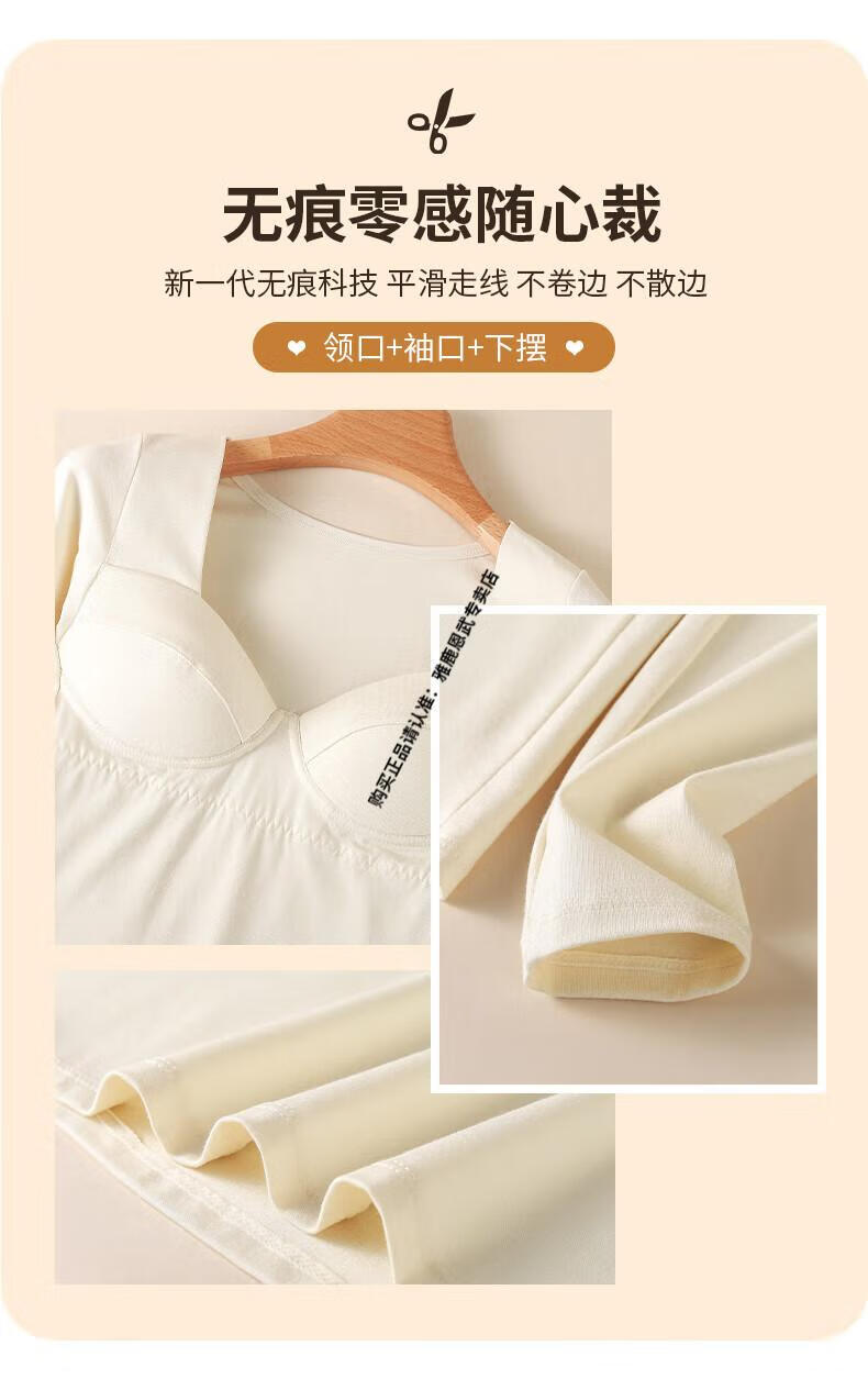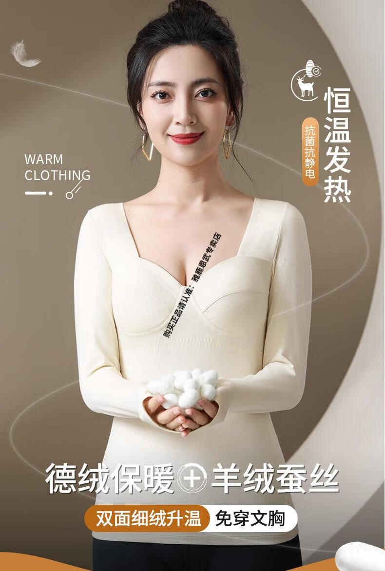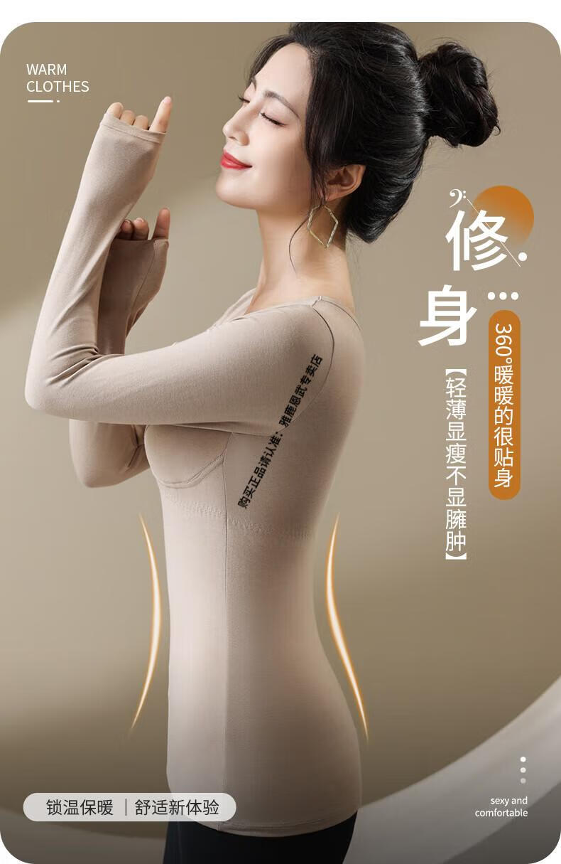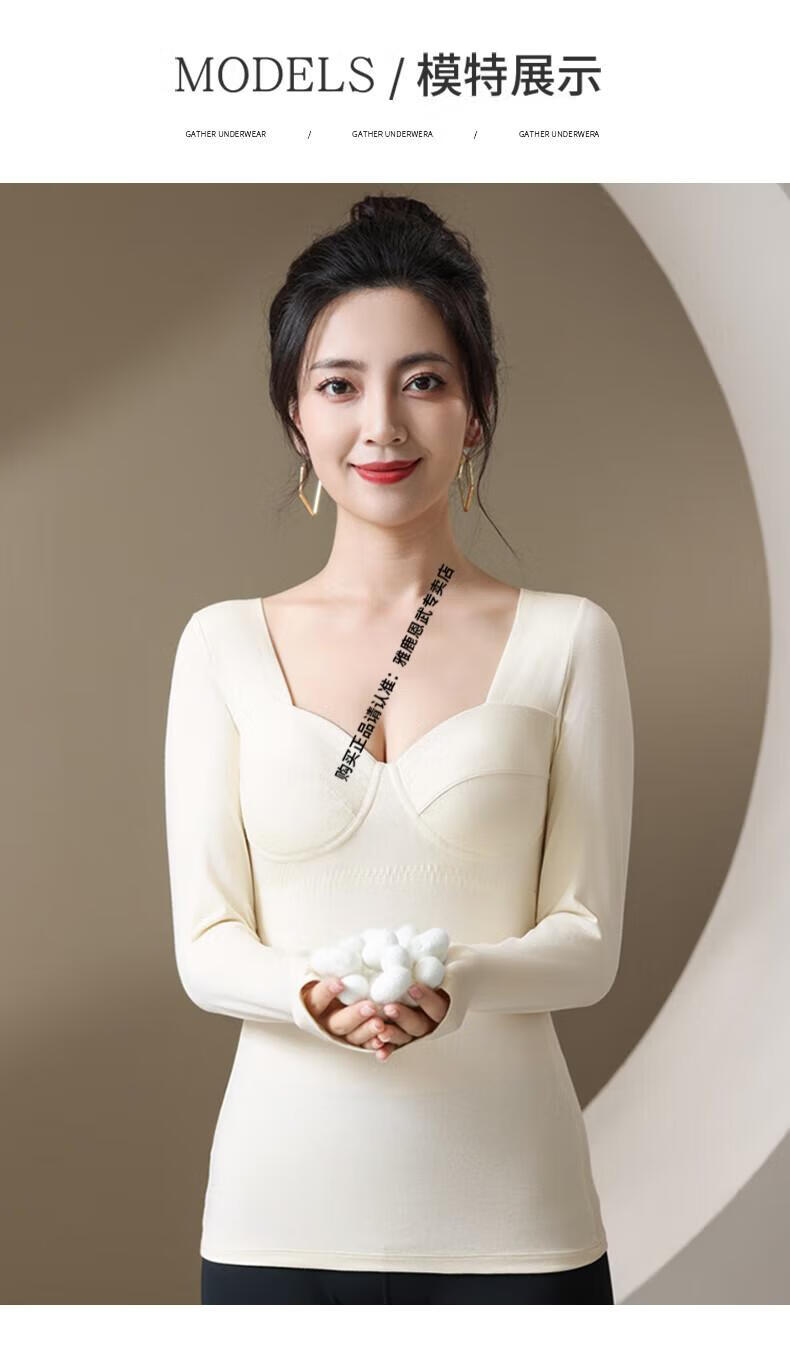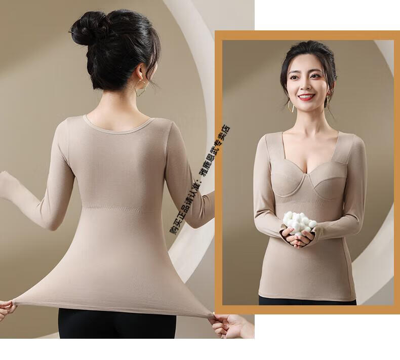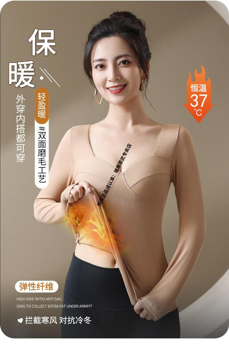 Yalu De velvet plus velvet winter thermal underwear for women with breast pads and no need to wear a bra. Thermal seamless bottoming shirt for autumn. Champagne M (80-100Jin Jin is equal to 0.5 kg)