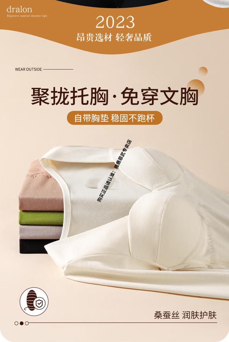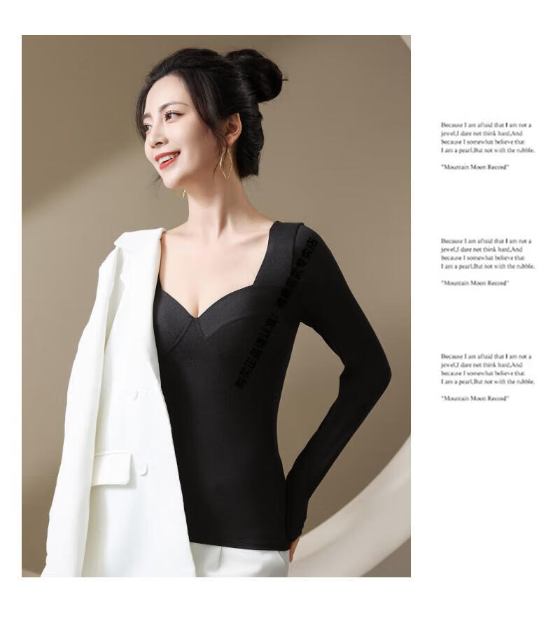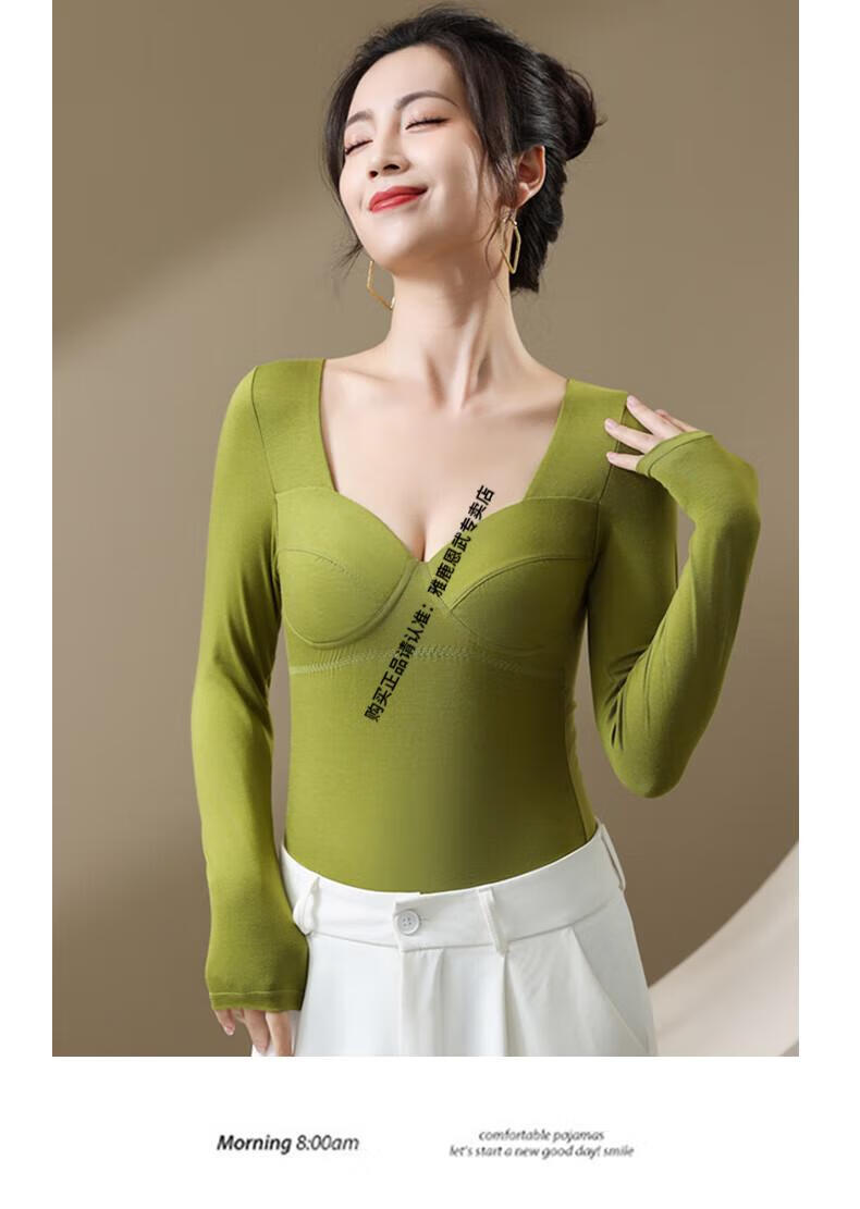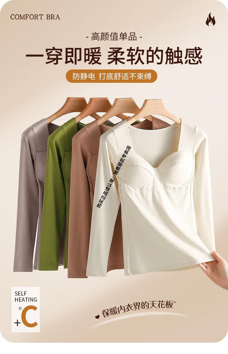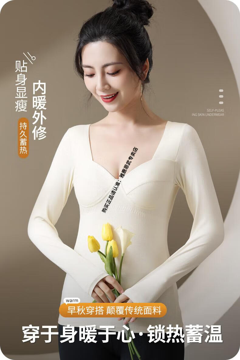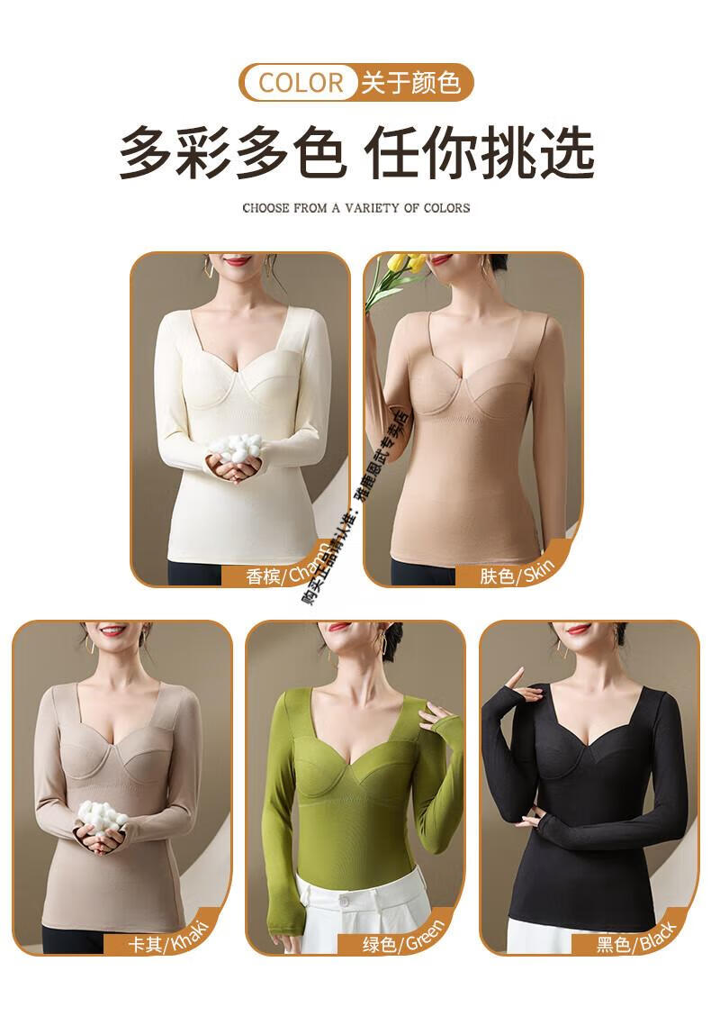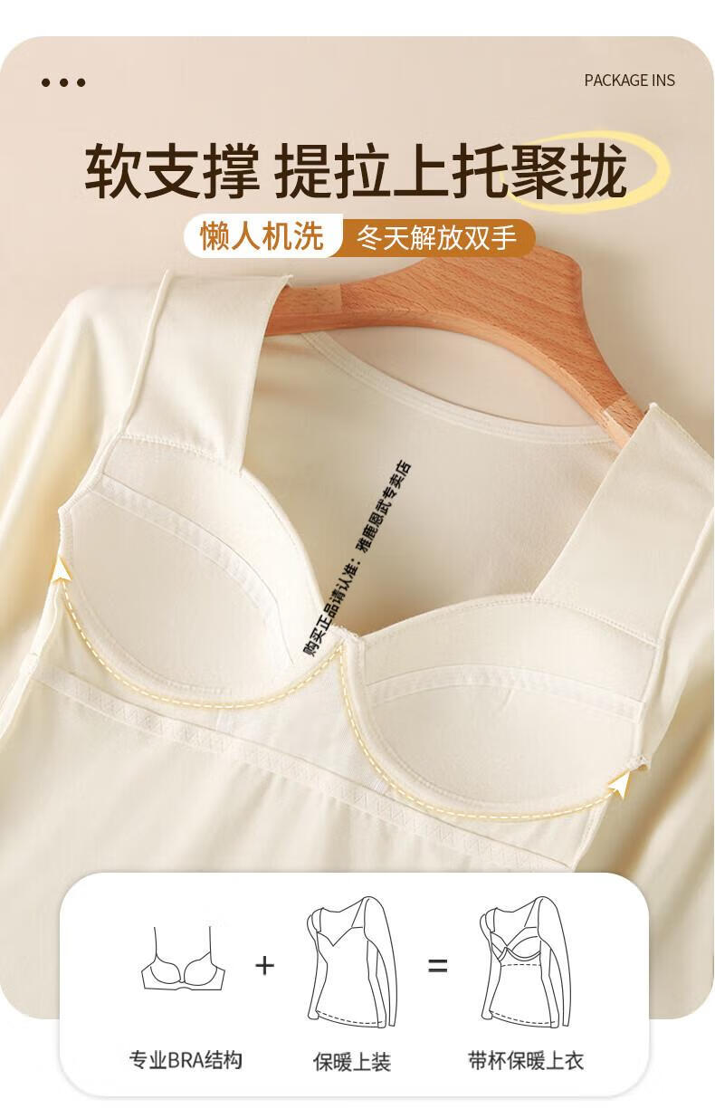 Yalu De velvet plus velvet winter thermal underwear for women with breast pads and no need to wear a bra. Thermal seamless bottoming shirt for autumn. Champagne M (80-100Jin Jin is equal to 0.5 kg)