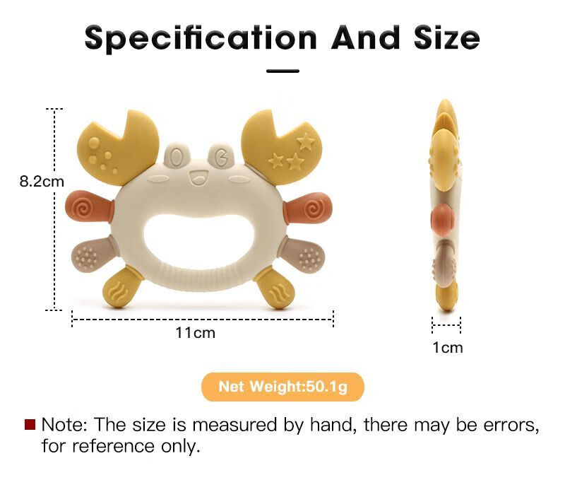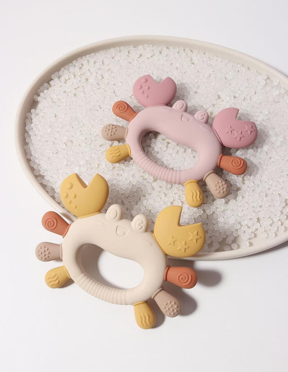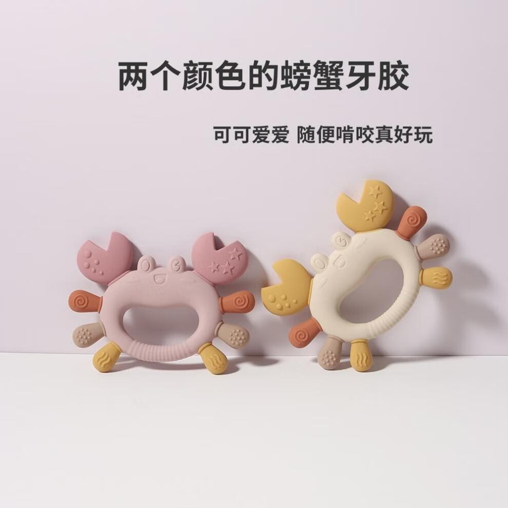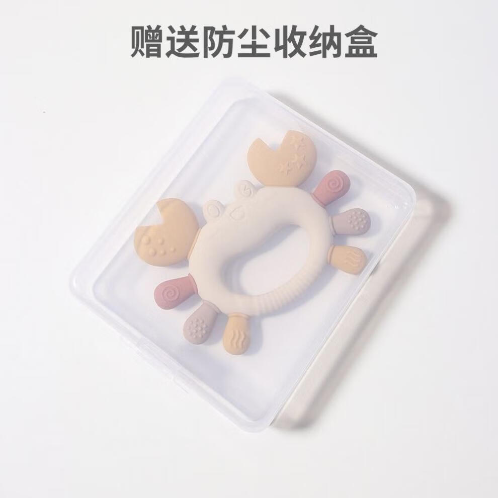 MOONPIE crab teether baby teething stick, anti-eating hand toy 6-12, food grade beige crab