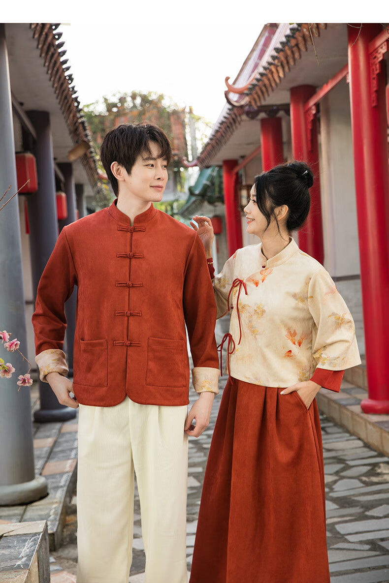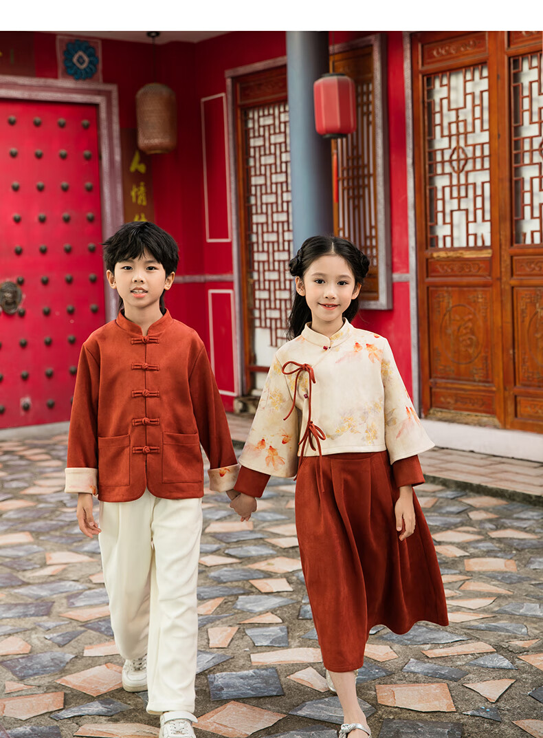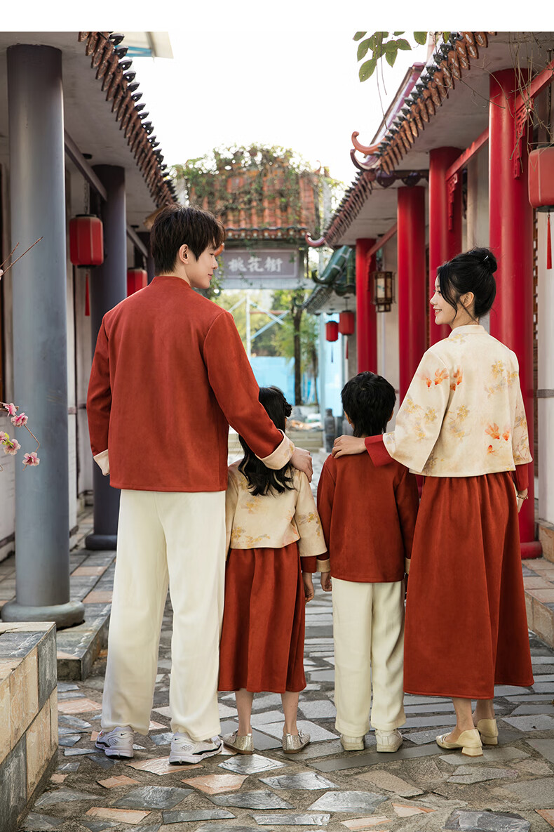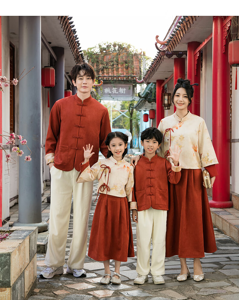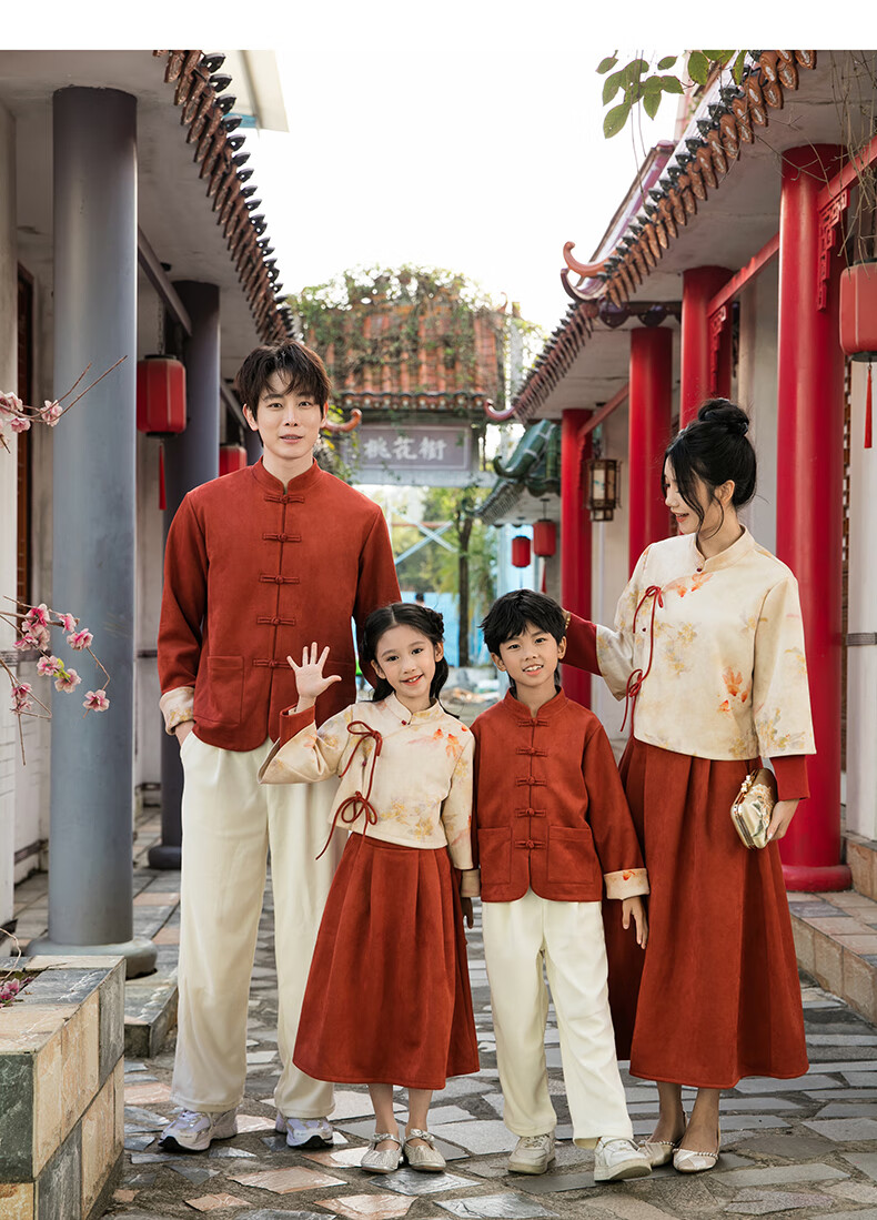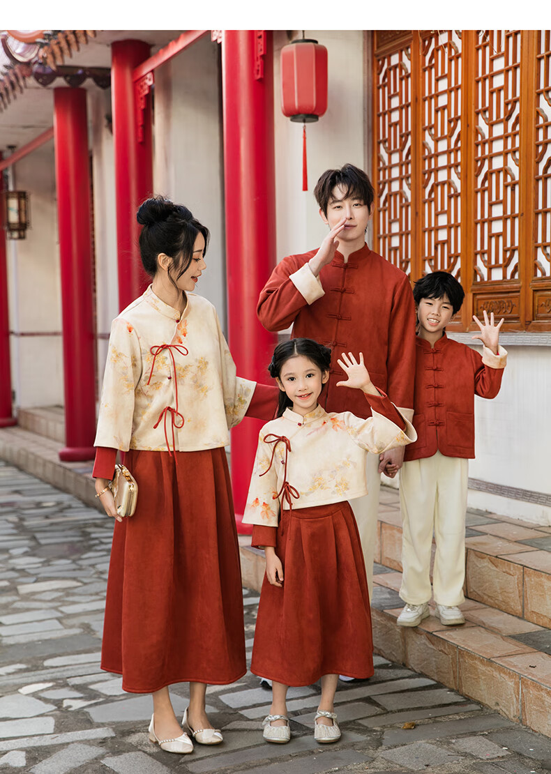 Chuangjingyi chooses parent-child clothing, Chinese style New Year parent-child clothing, Tang suit, Chinese style Hanfu, new Chinese style mother-daughter autumn and winter clothing, family of three suit_orange 140 baby boy_suitable for 130-138 height