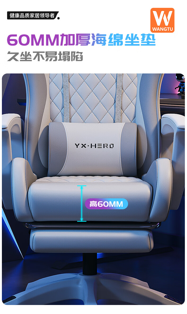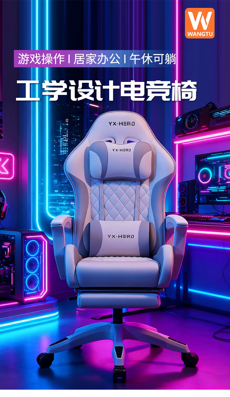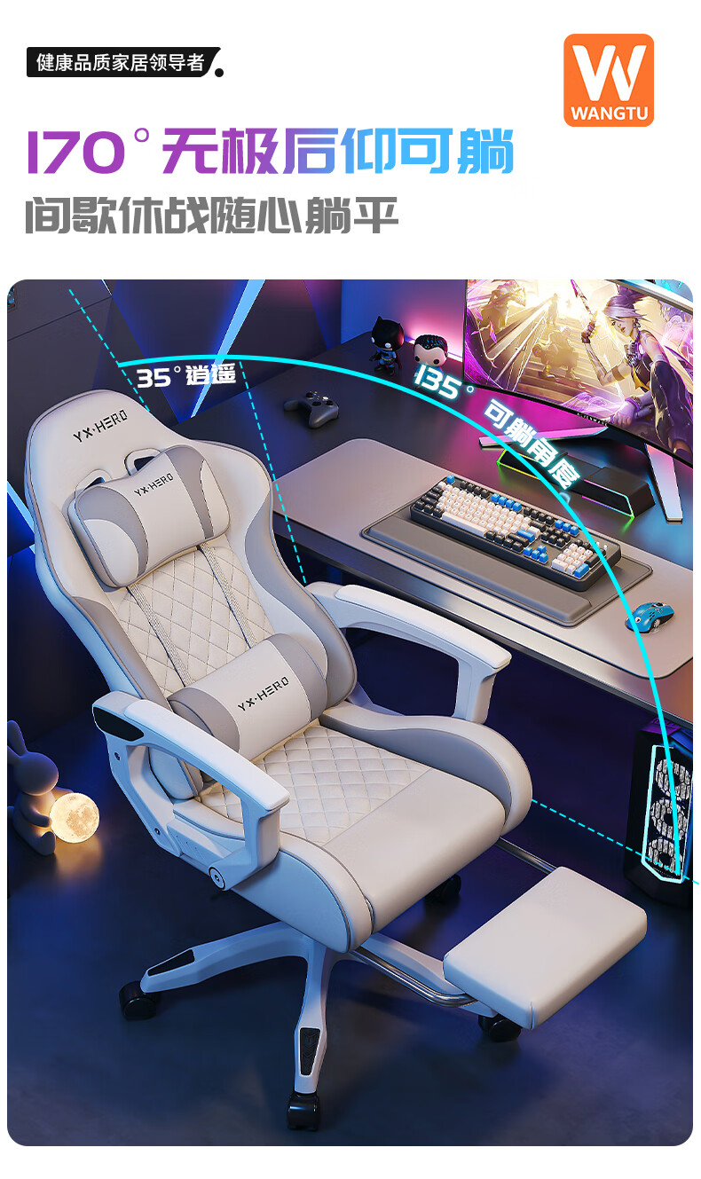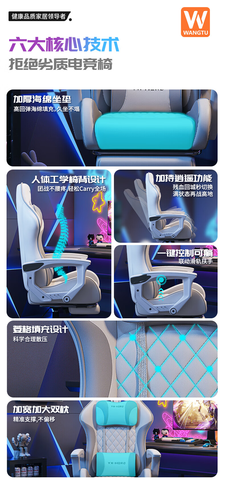 Nettu e-sports chair computer chair home comfortable sedentary office reclining dormitory ergonomic chair lifting game seat reclining Xiaoyao Moon Shadow Gray MAX-latex model