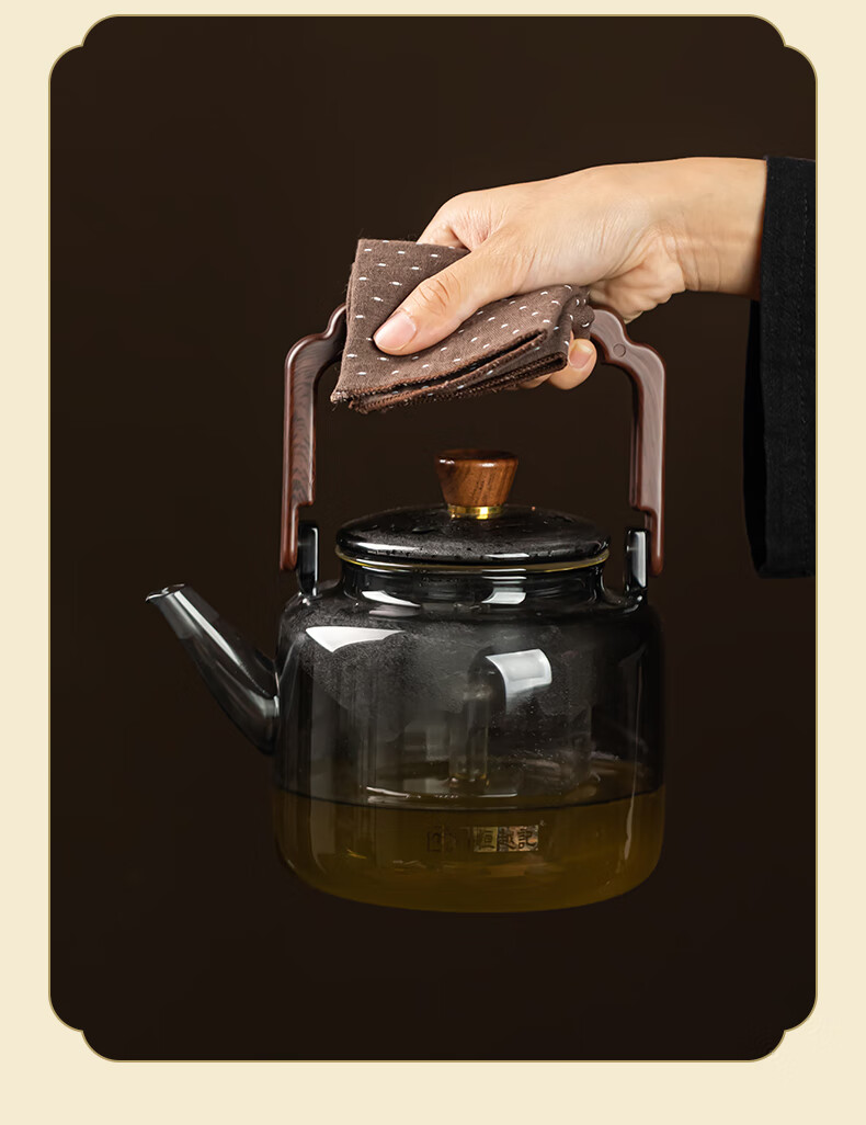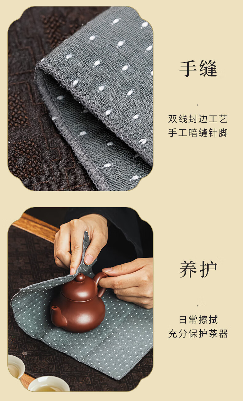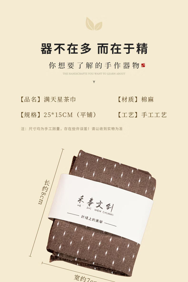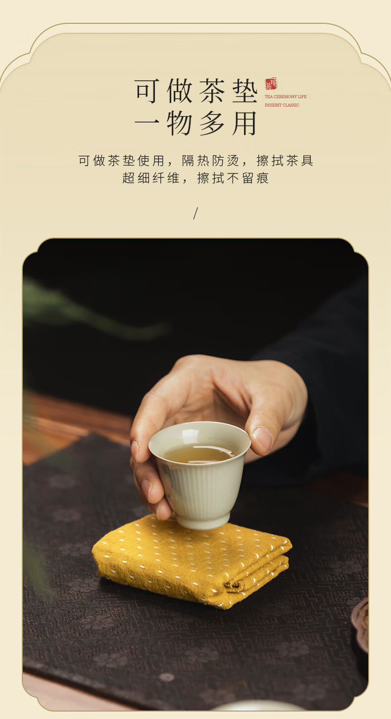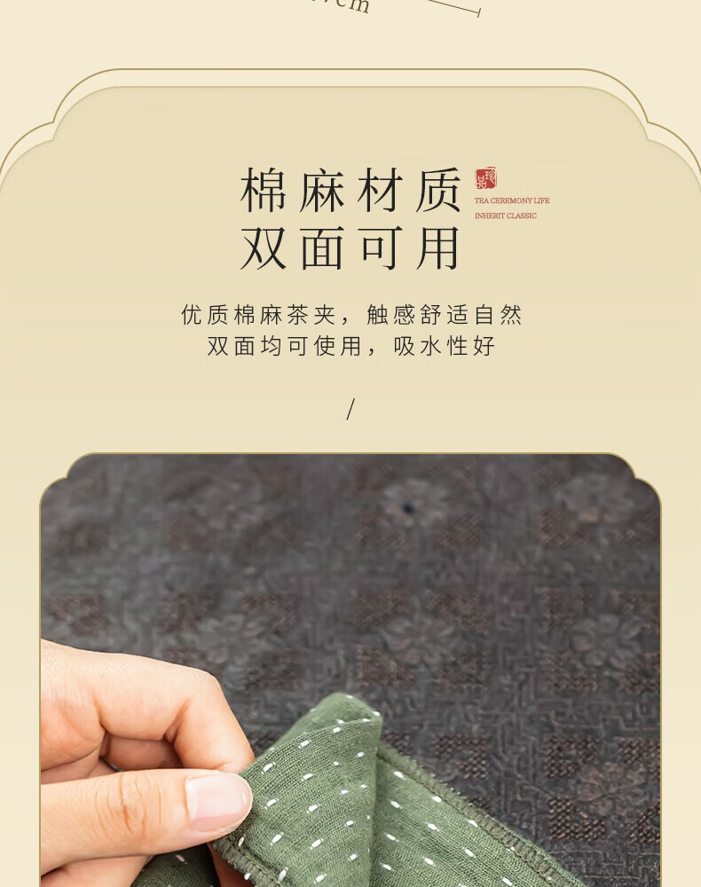 Huairunji high-end thickened tea towel, absorbent tablecloth, special towel for tea table, rag, cup mat, kung fu tea set accessories, cotton and linen baby's breath tea towel - green