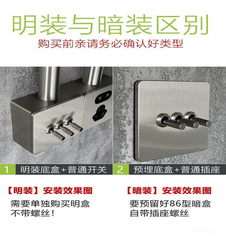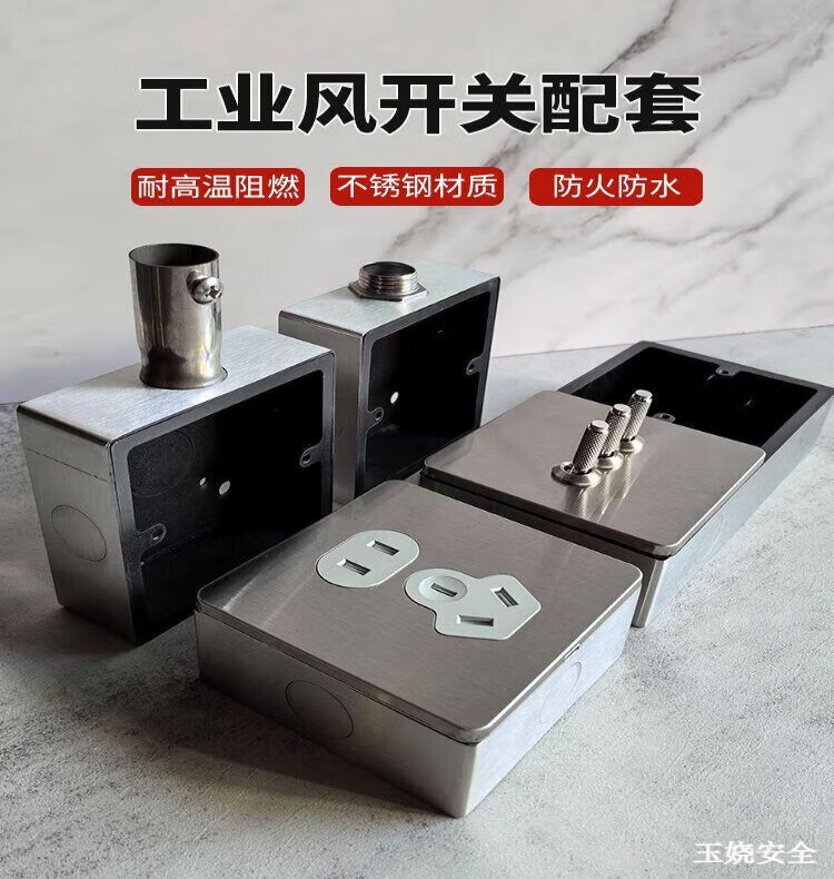 何佳功定制明装插座明装工业风开关不锈钢明线盒复古开关拨杆家用 四开单双控通用