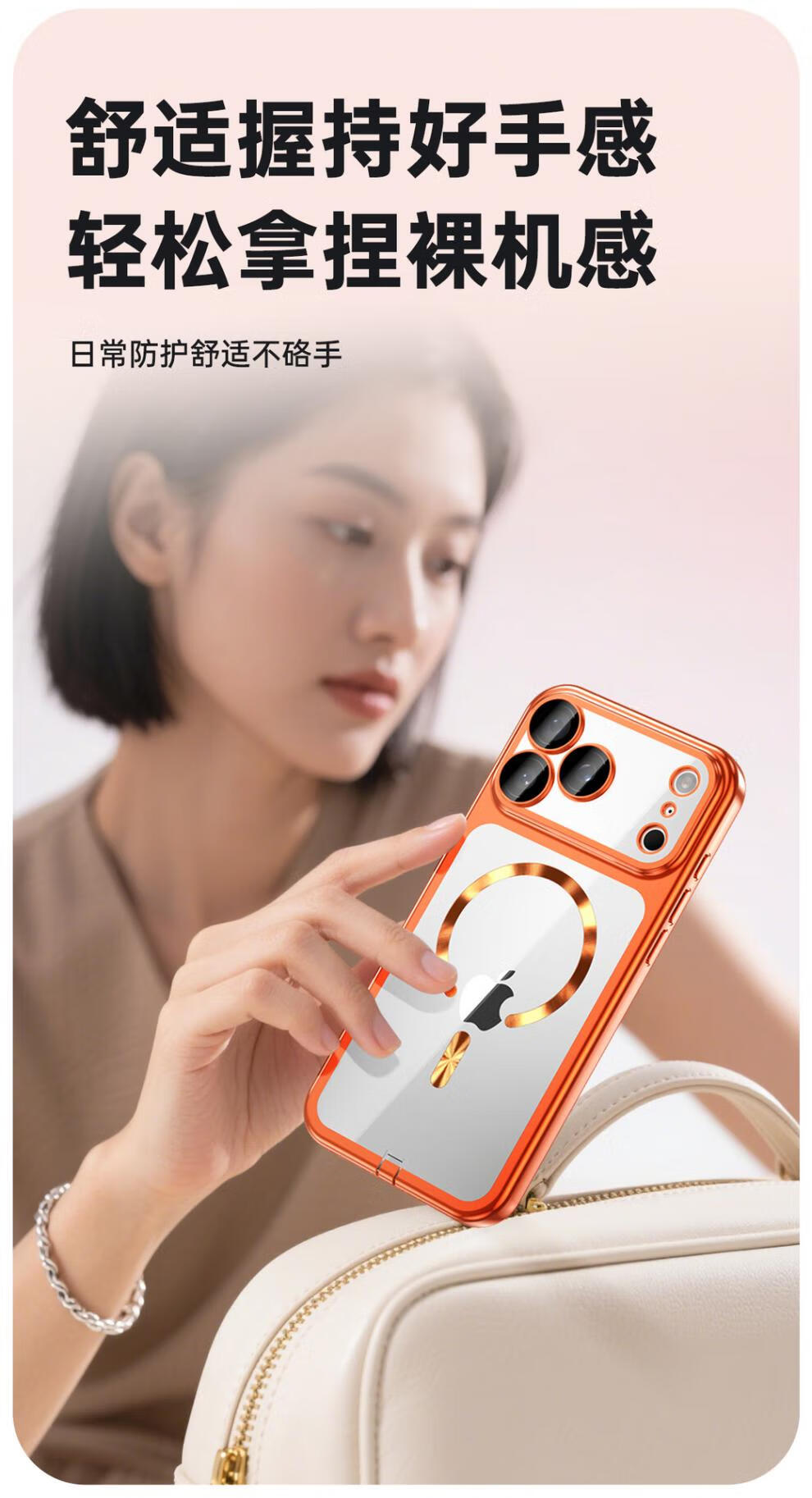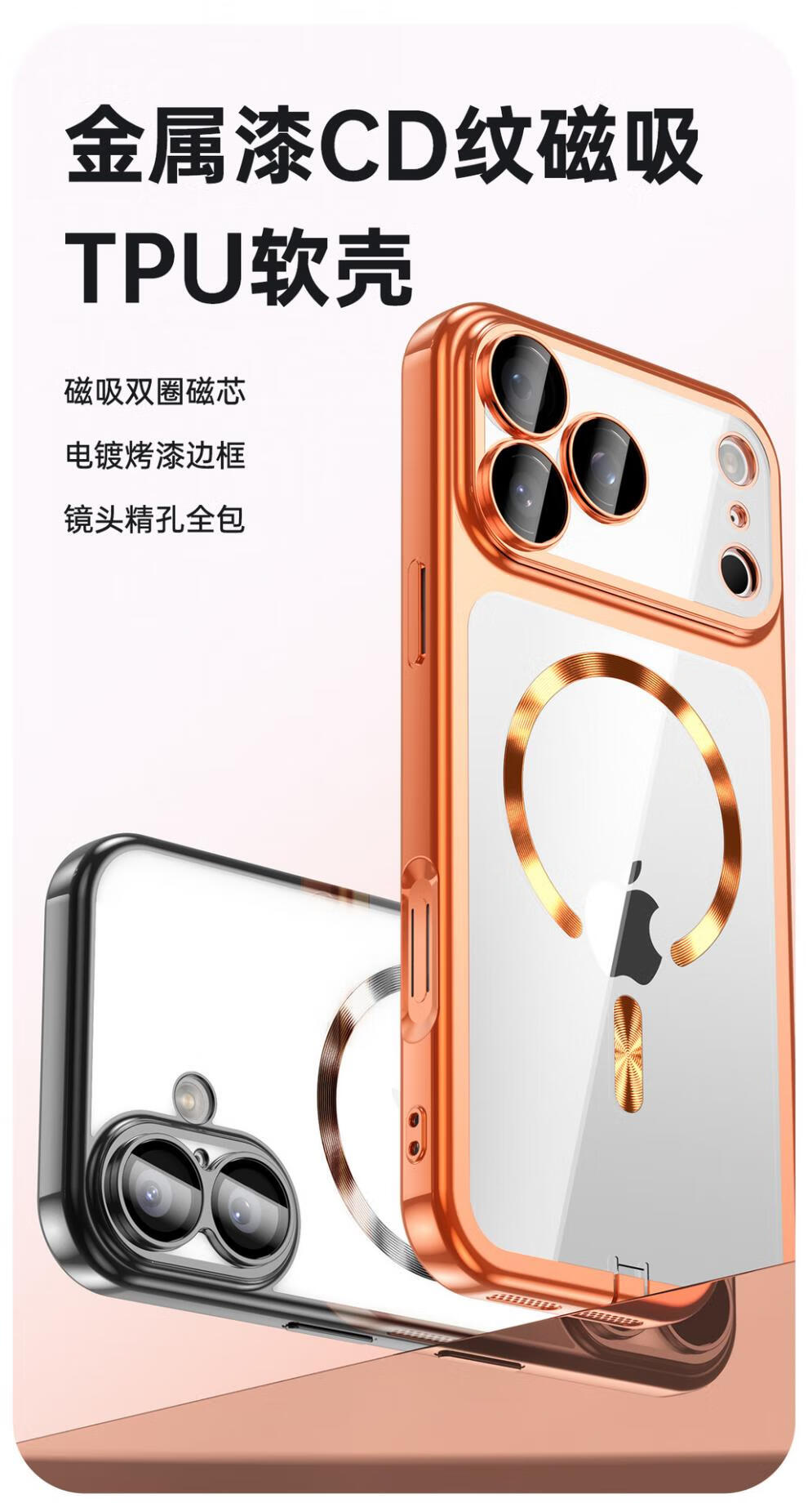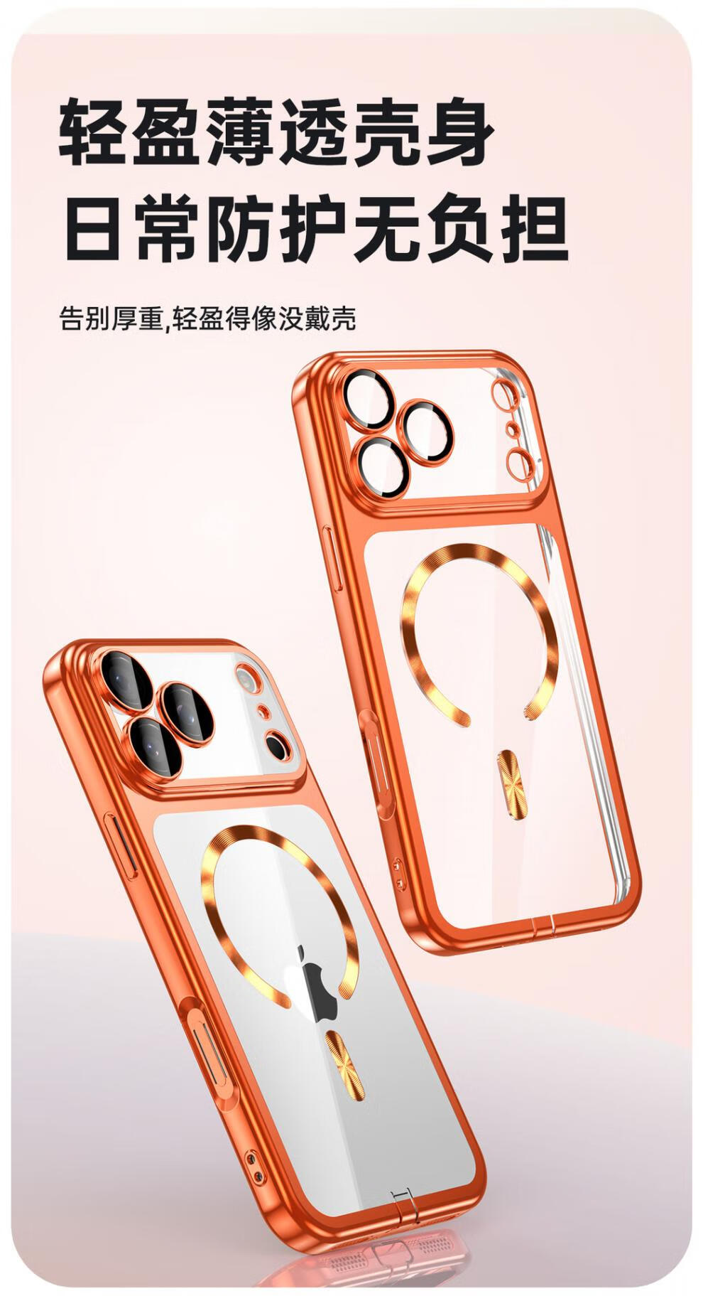 Endless is suitable for Apple 17Pro Max mobile phone case iPhone17 transparent magnetic all-inclusive anti-fall protective cover 17pro new model comes with integrated dust plug soft shell fashionable men and women Apple 17Pro Orange comes with integrated dust plug