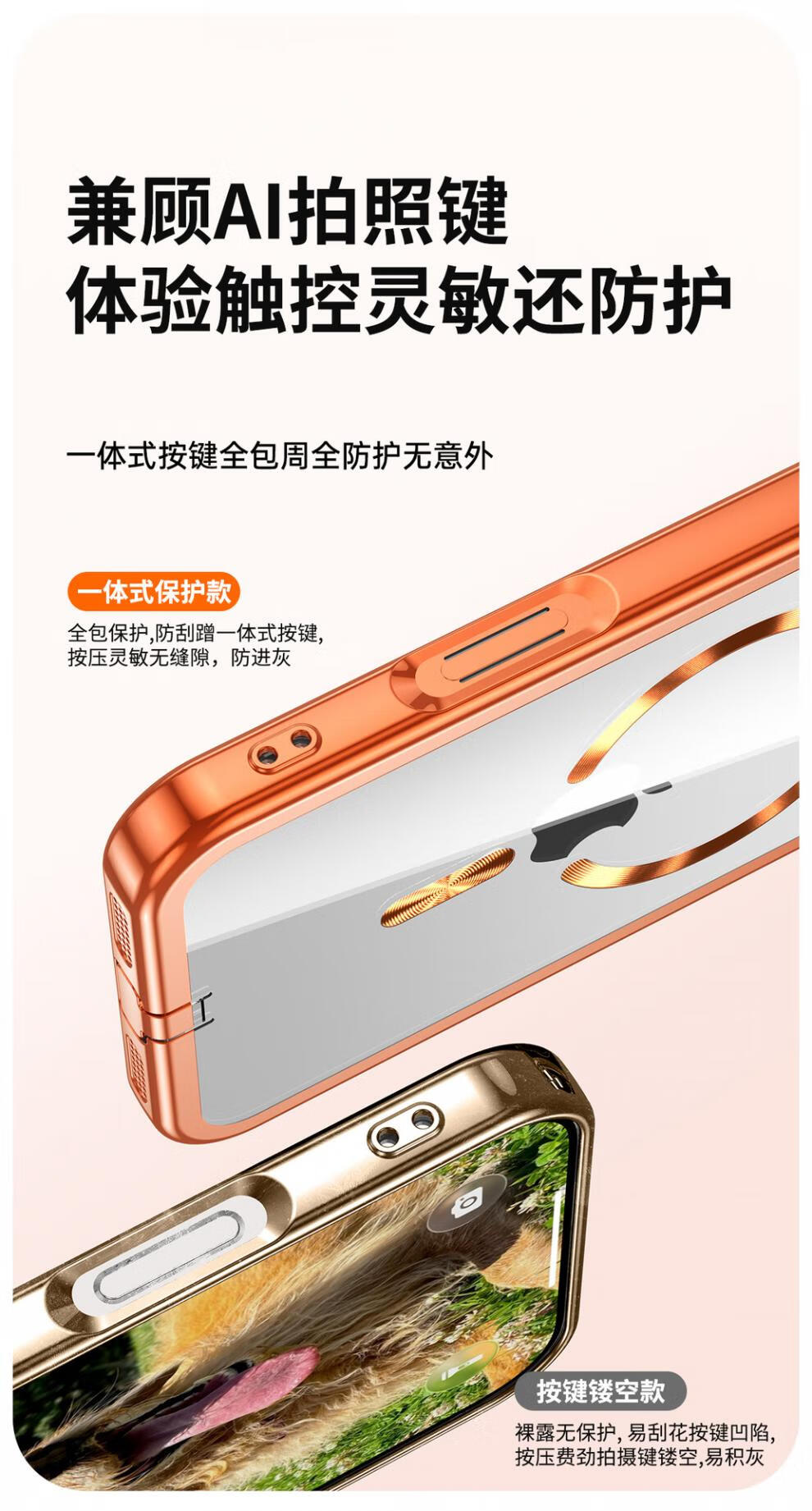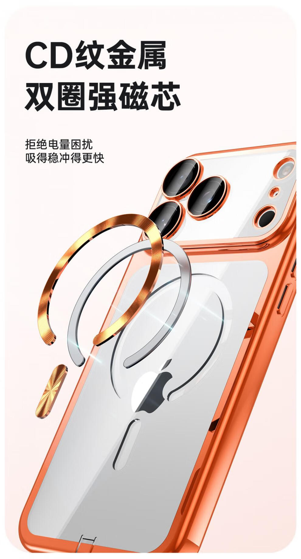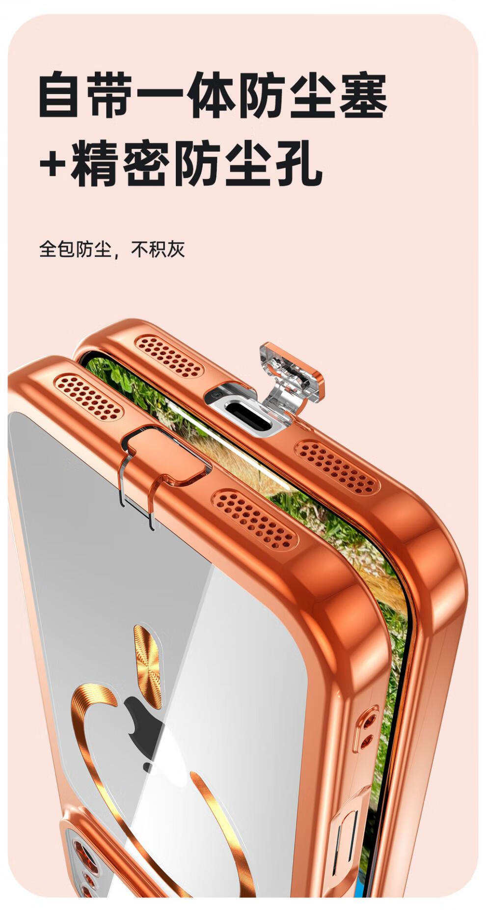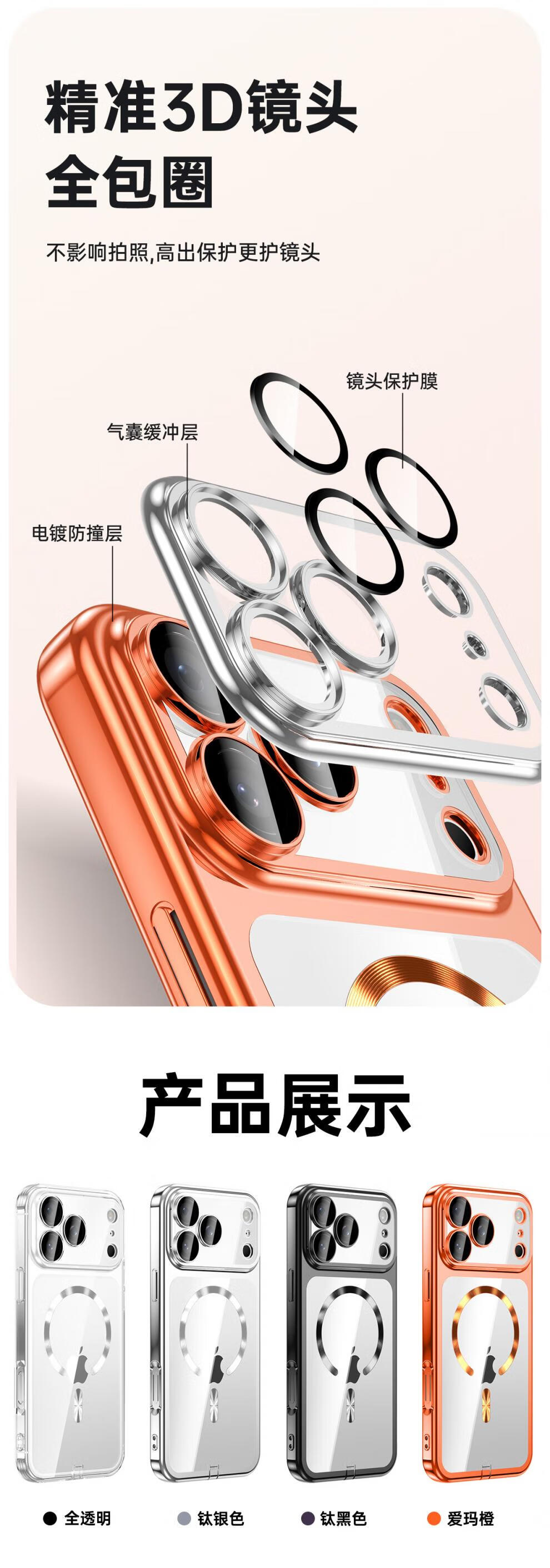 Endless is suitable for Apple 17Pro Max mobile phone case iPhone17 transparent magnetic all-inclusive anti-fall protective cover 17pro new model comes with integrated dust plug soft shell fashionable men and women Apple 17Pro Orange comes with integrated dust plug