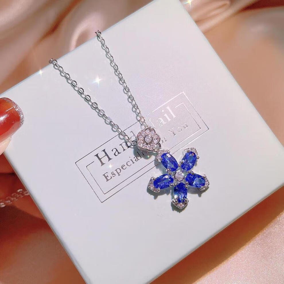 Lihu Tanzanite Snowflake Bone Chain Necklace Female Internet Celebrity Light Luxury Purple Simple S925 Sterling Silver Earrings Ring Set (Earrings)