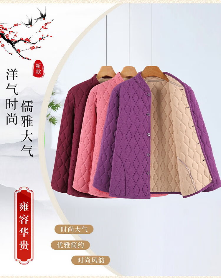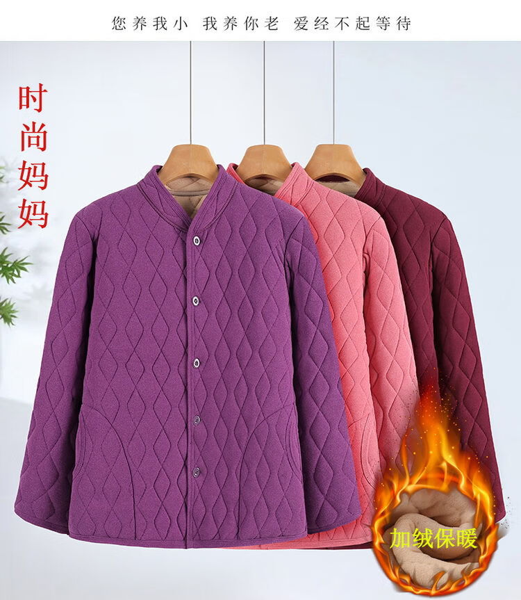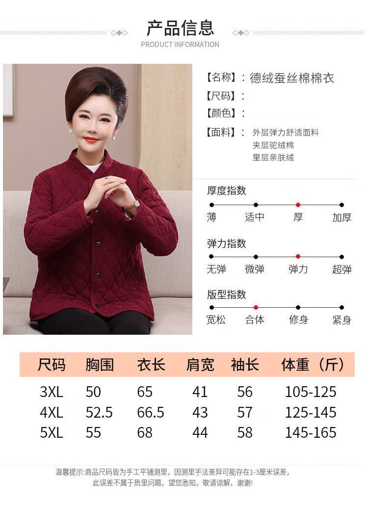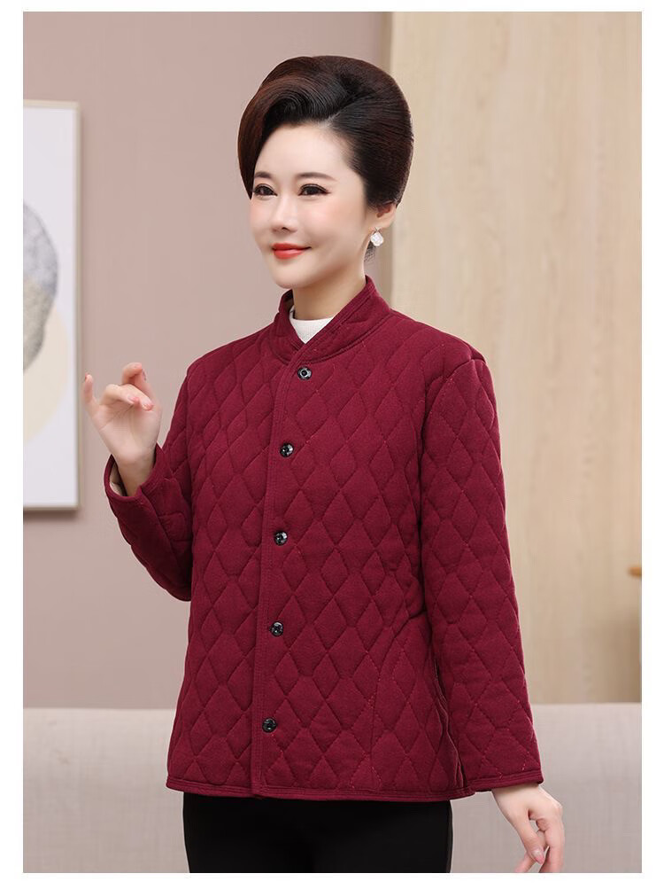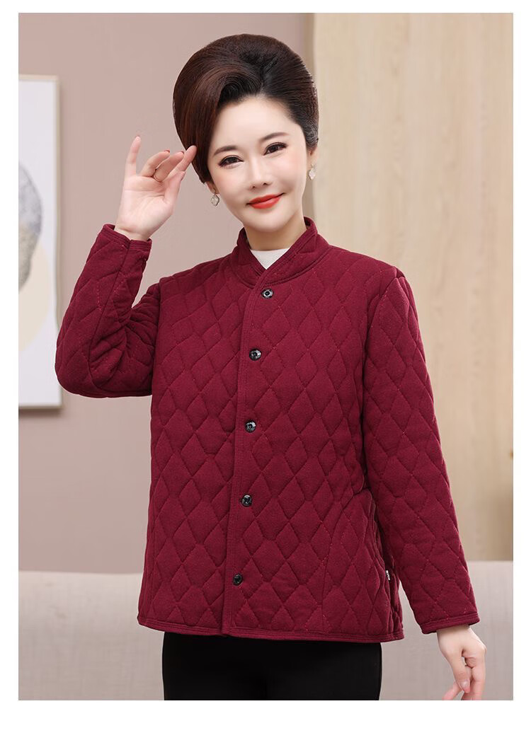 Middle-aged and elderly women's cotton-padded jackets, winter warm Derong cotton-padded jackets, thickened inner liner, fattened cotton-padded jackets for the elderly, burgundy Derong cotton-padded jackets 4XL