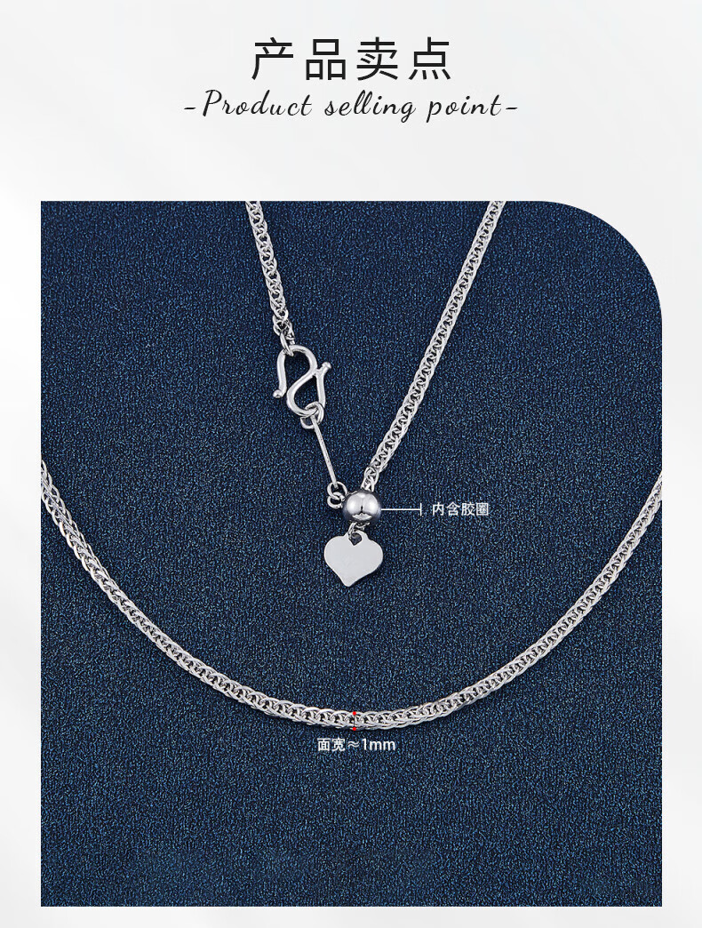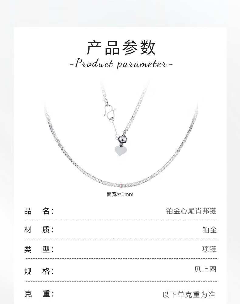 CHINA GOLD Platinum Necklace Heart Tail Adjustable Chopard Chain Versatile Gift for Boyfriend Holiday Birthday 2025 About 4.3g
