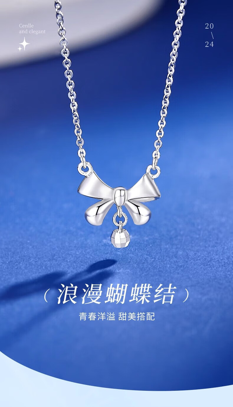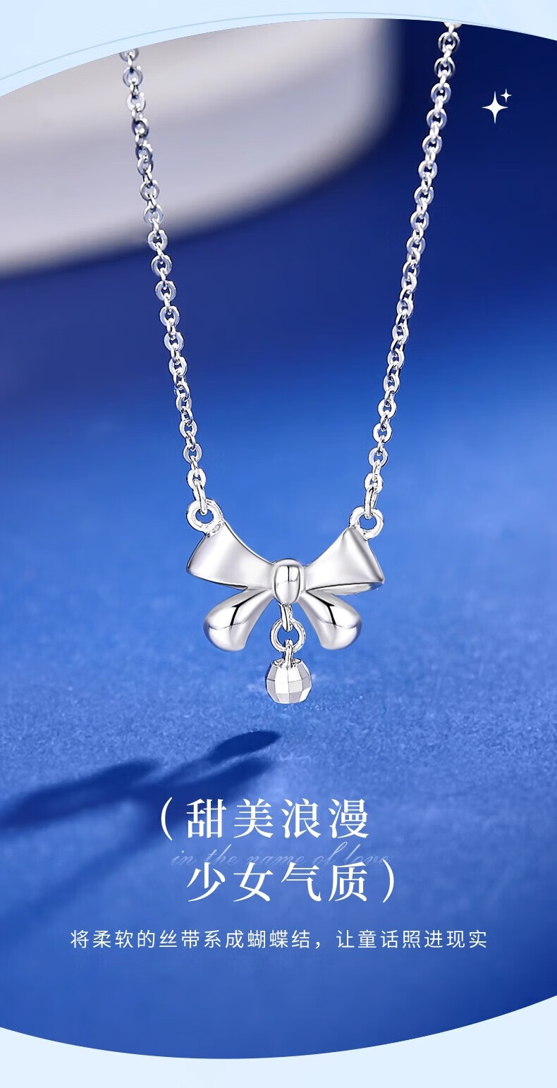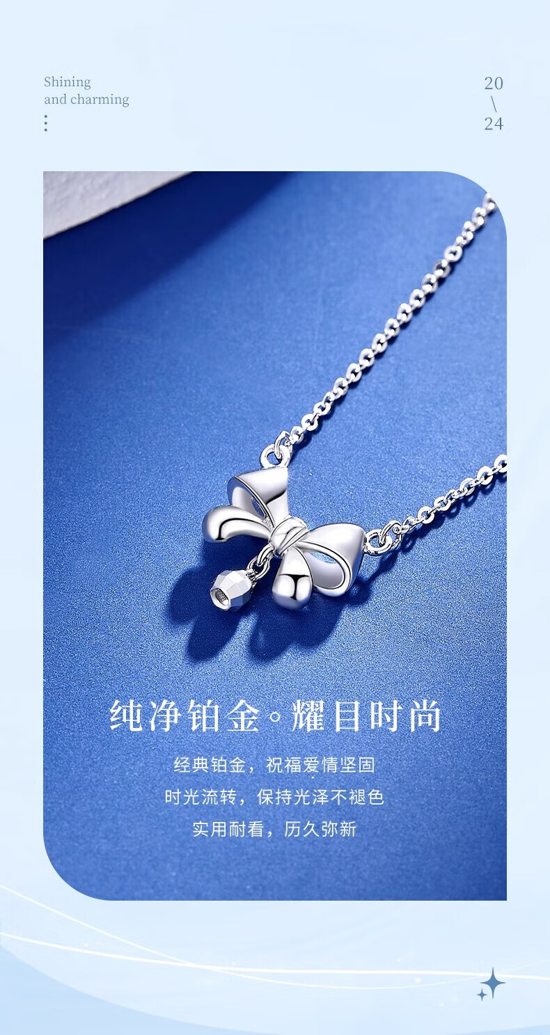 Lao Fengxiang PT950 platinum bow necklace women's platinum pendant birthday gift for girlfriend and wife Mid-Autumn Festival gift platinum bow necklace about 3.4g + brand gift box
