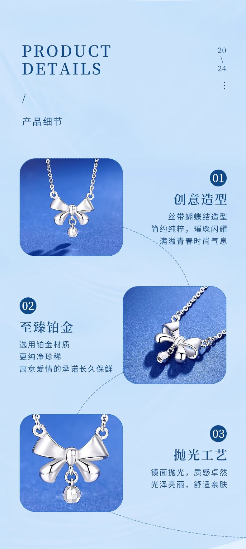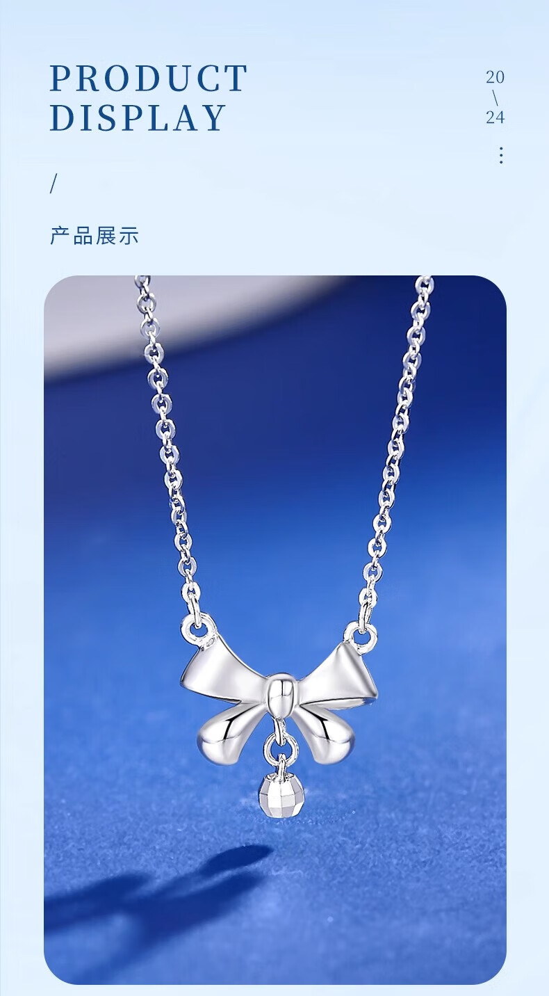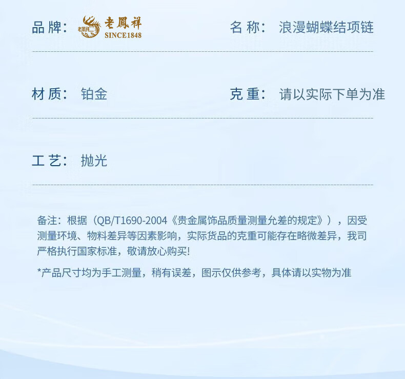 Lao Fengxiang PT950 platinum bow necklace women's platinum pendant birthday gift for girlfriend and wife Mid-Autumn Festival gift platinum bow necklace about 3.4g + brand gift box