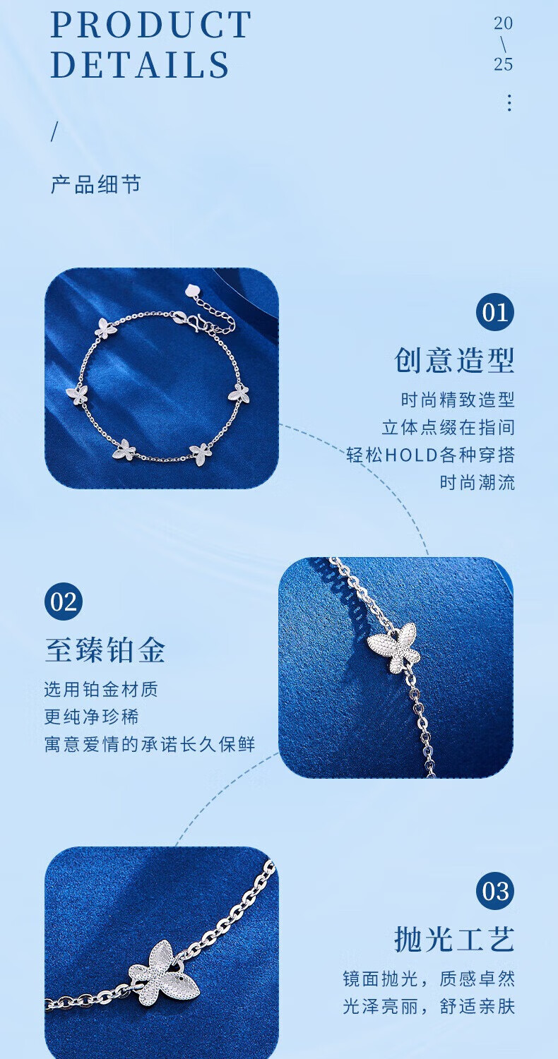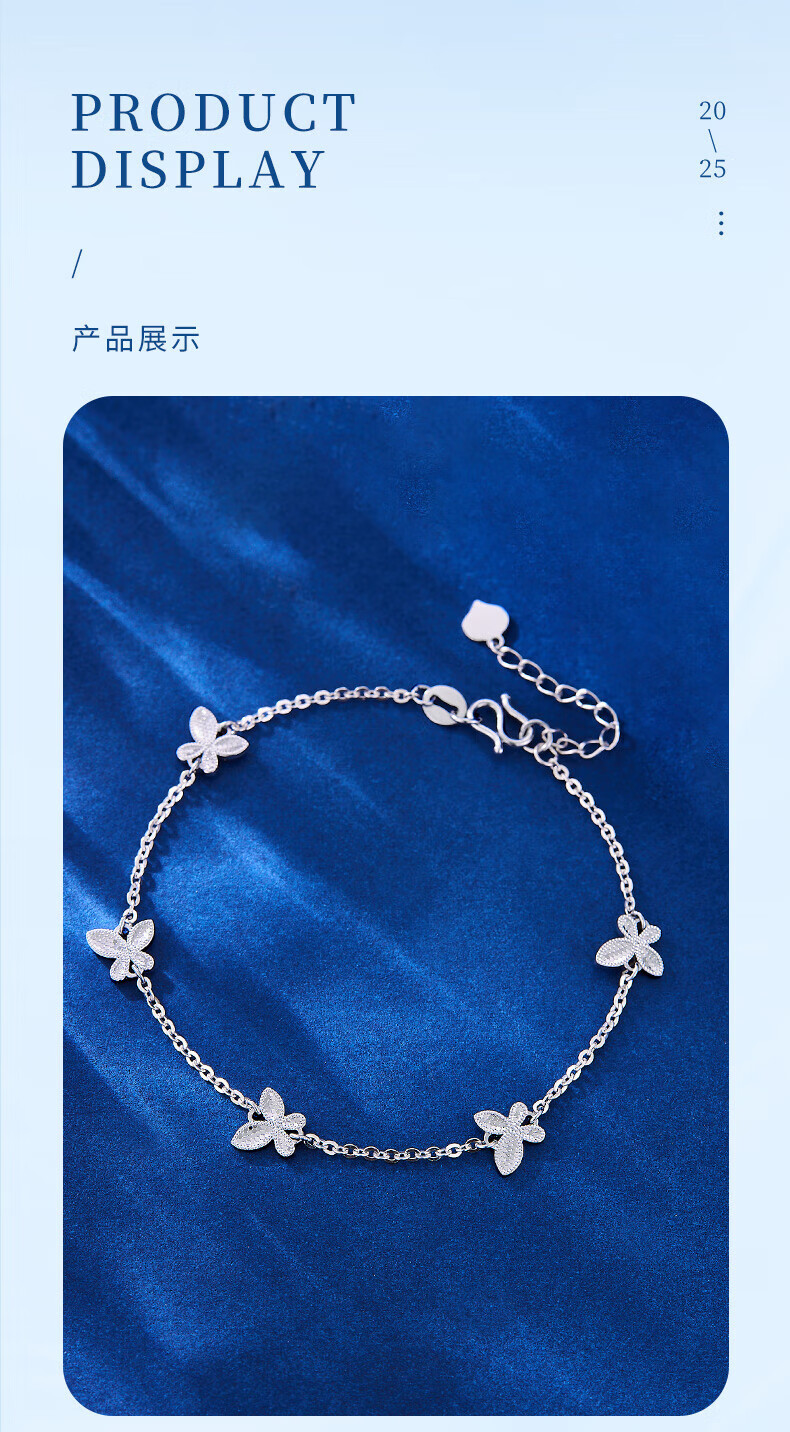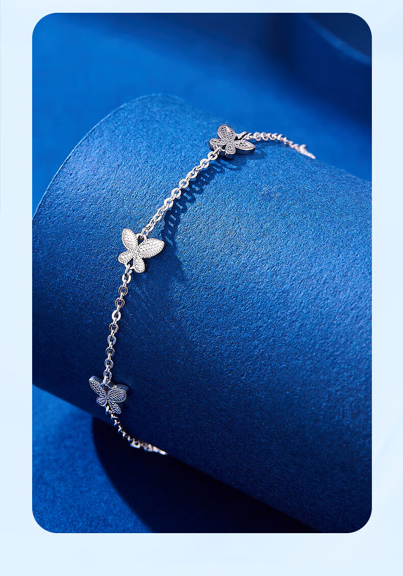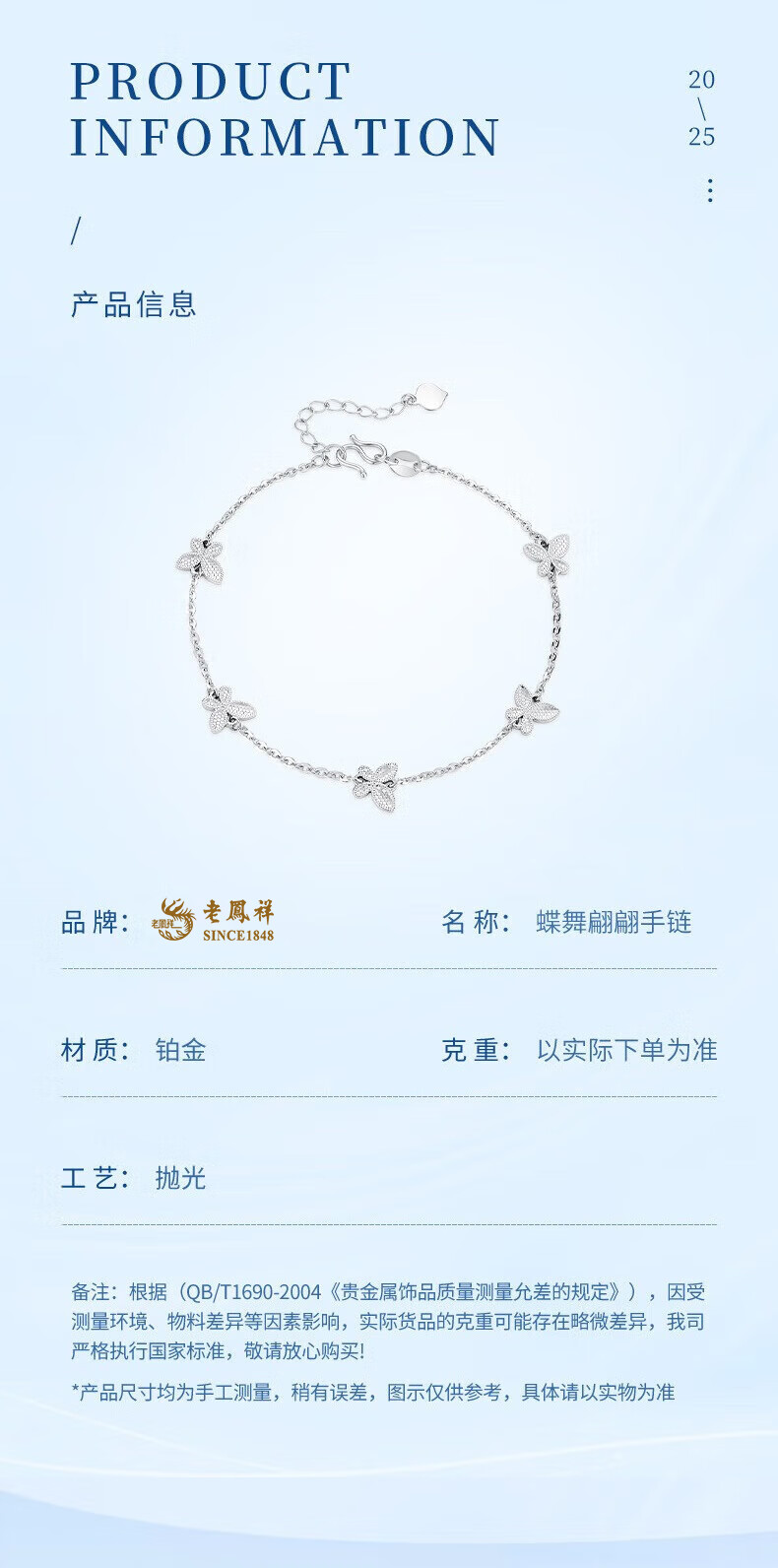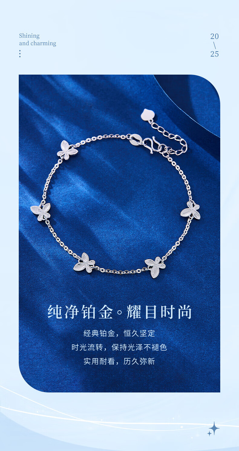 Lao Fengxiang PT950 Platinum Butterfly Dance Bracelet for Women New Platinum Bracelet Mid-Autumn Festival Birthday Gift for Girlfriend Platinum Butterfly Dance Bracelet About 4.8g Selection Gift Box