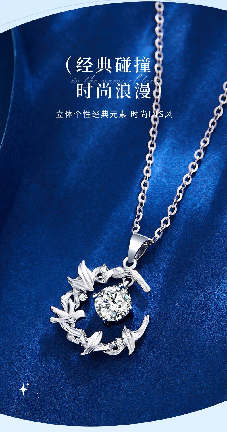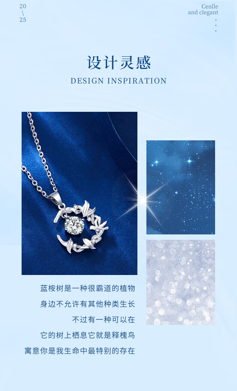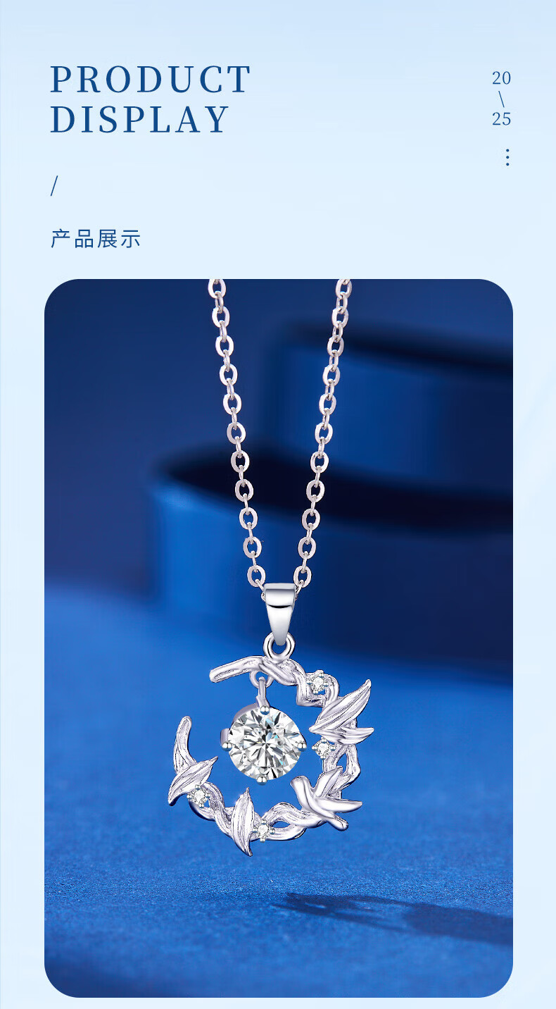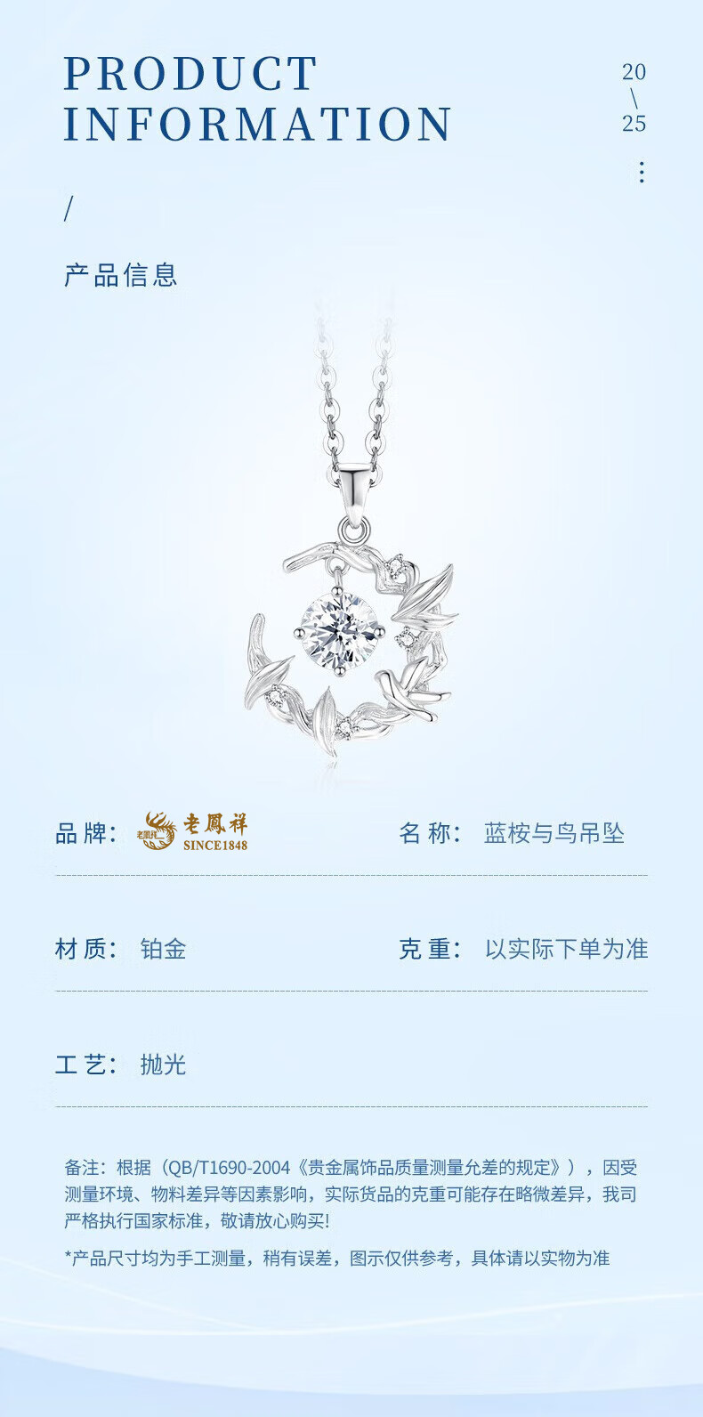 Lao Fengxiang PT950 platinum blue eucalyptus and bird necklace niche pendant for women new birthday gift Mid-Autumn Festival gift for girlfriend Platinum blue eucalyptus and bird pendant about 2.6g free silver chain