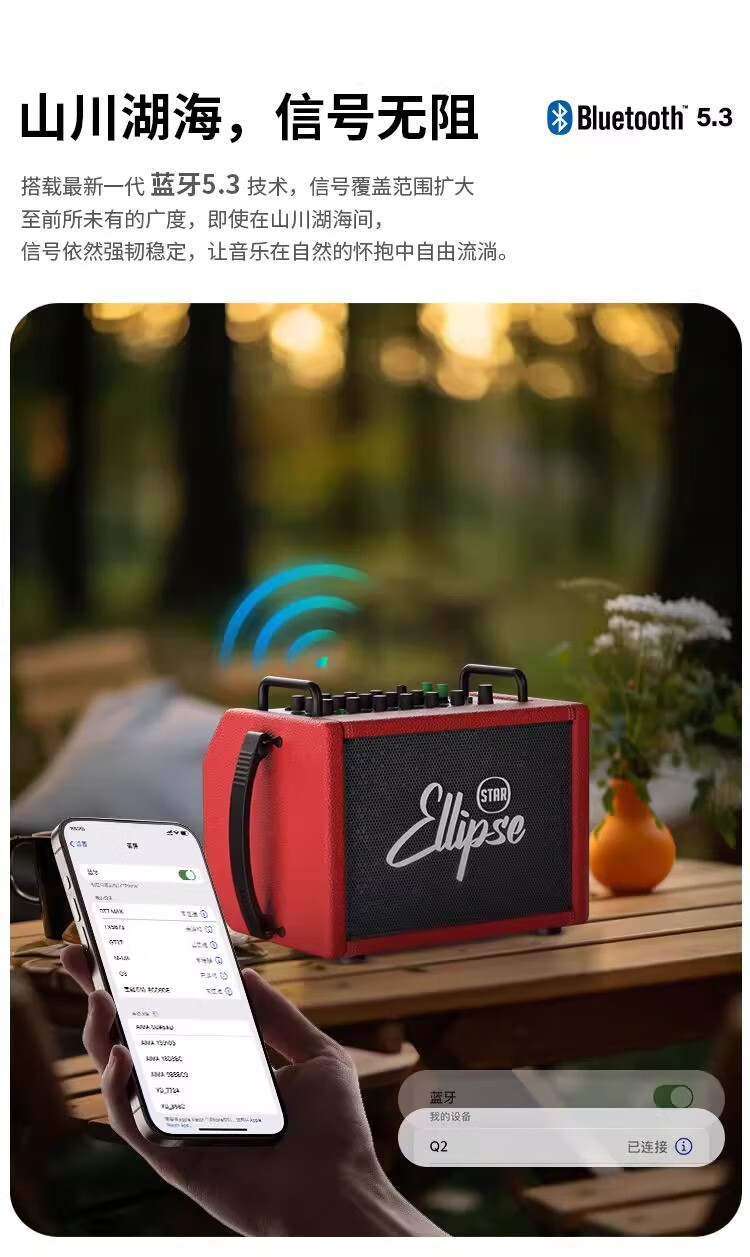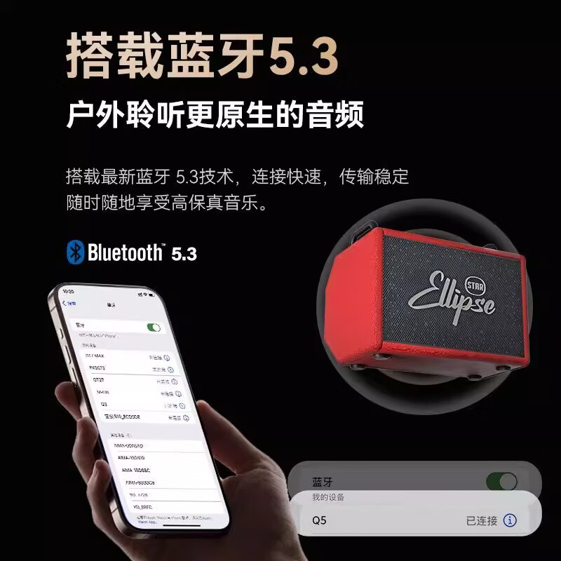 Oval Planet Q5 outdoor mobile professional musical instrument playing and singing karaoke live broadcast speaker wireless Bluetooth camping small speaker black + gift bag
