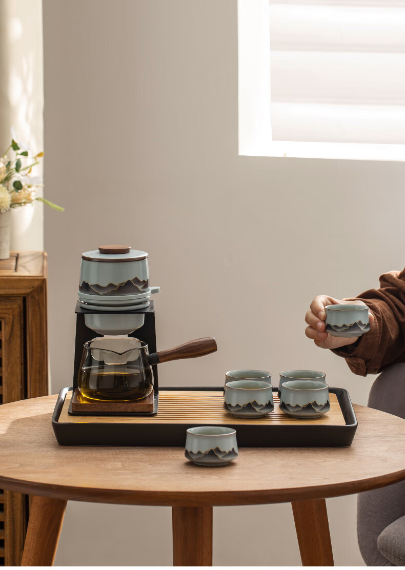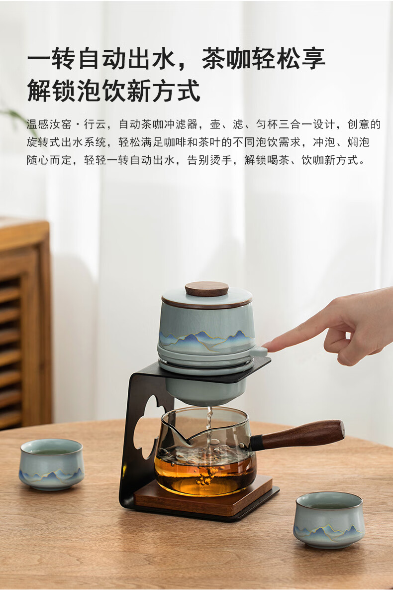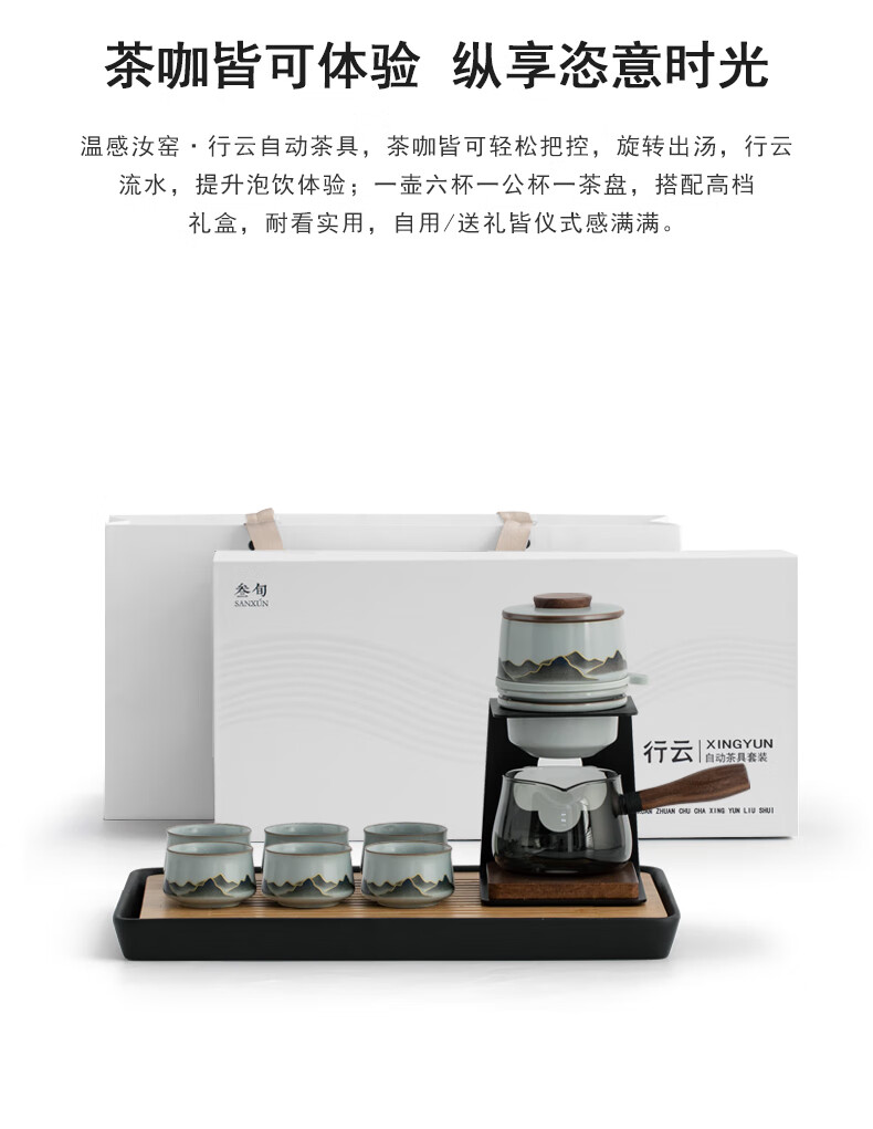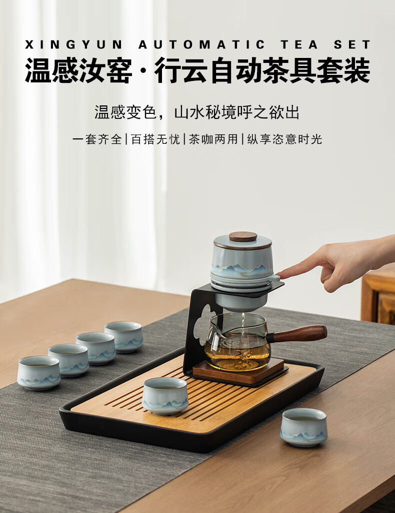 Thirty-year-old Wengan Ru Kiln Xingyun Kung Fu tea set for home office tea making artifact complete set of tea tray gift box for elders Wengan Ru Kiln_Xingyun automatic tea set (Tianqing) + 6 tea cups