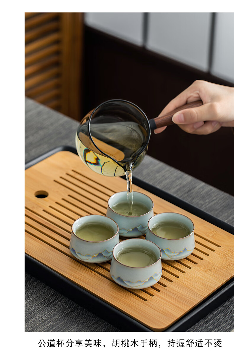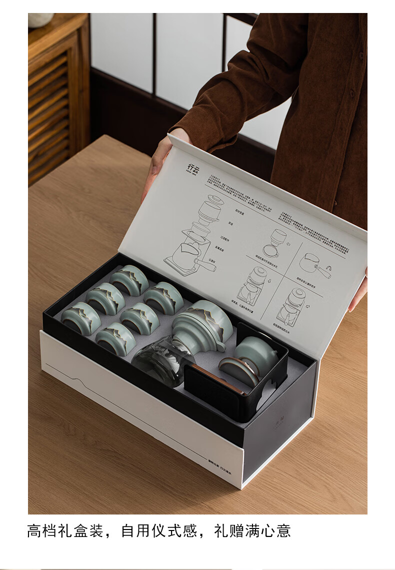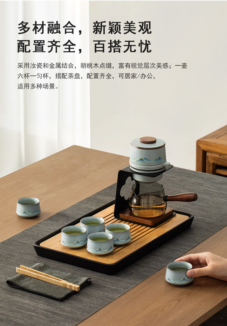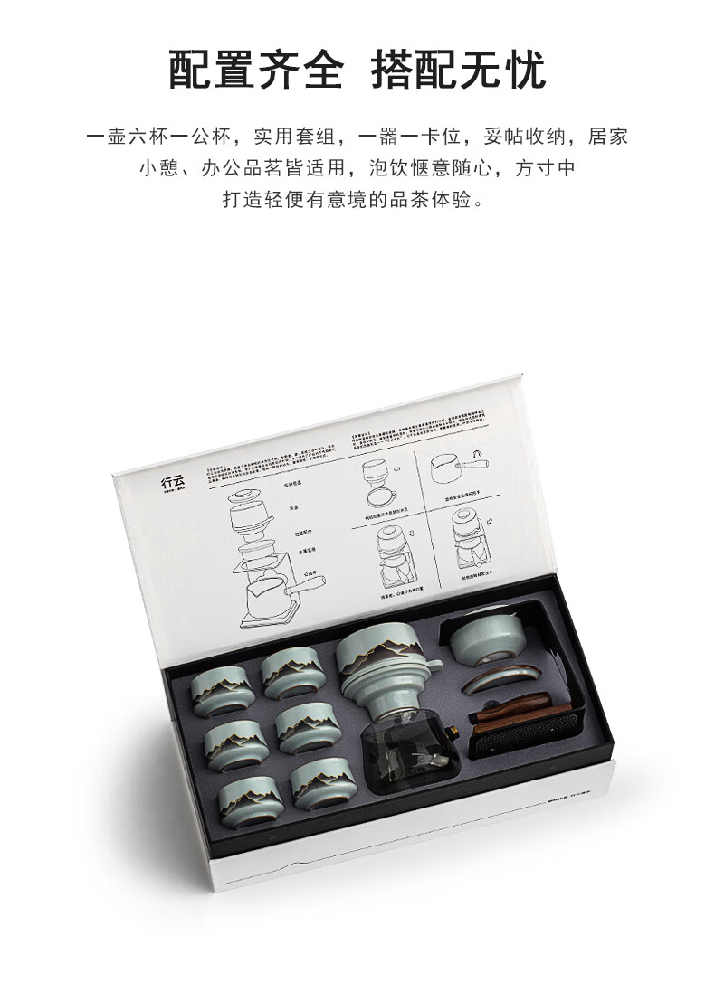 Thirty-year-old Wengan Ru Kiln Xingyun Kung Fu tea set for home office tea making artifact complete set of tea tray gift box for elders Wengan Ru Kiln_Xingyun automatic tea set (Tianqing) + 6 tea cups