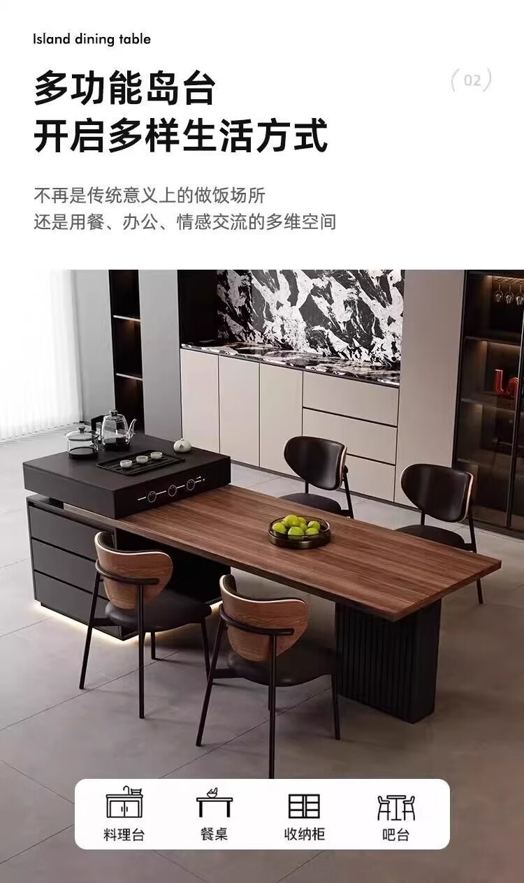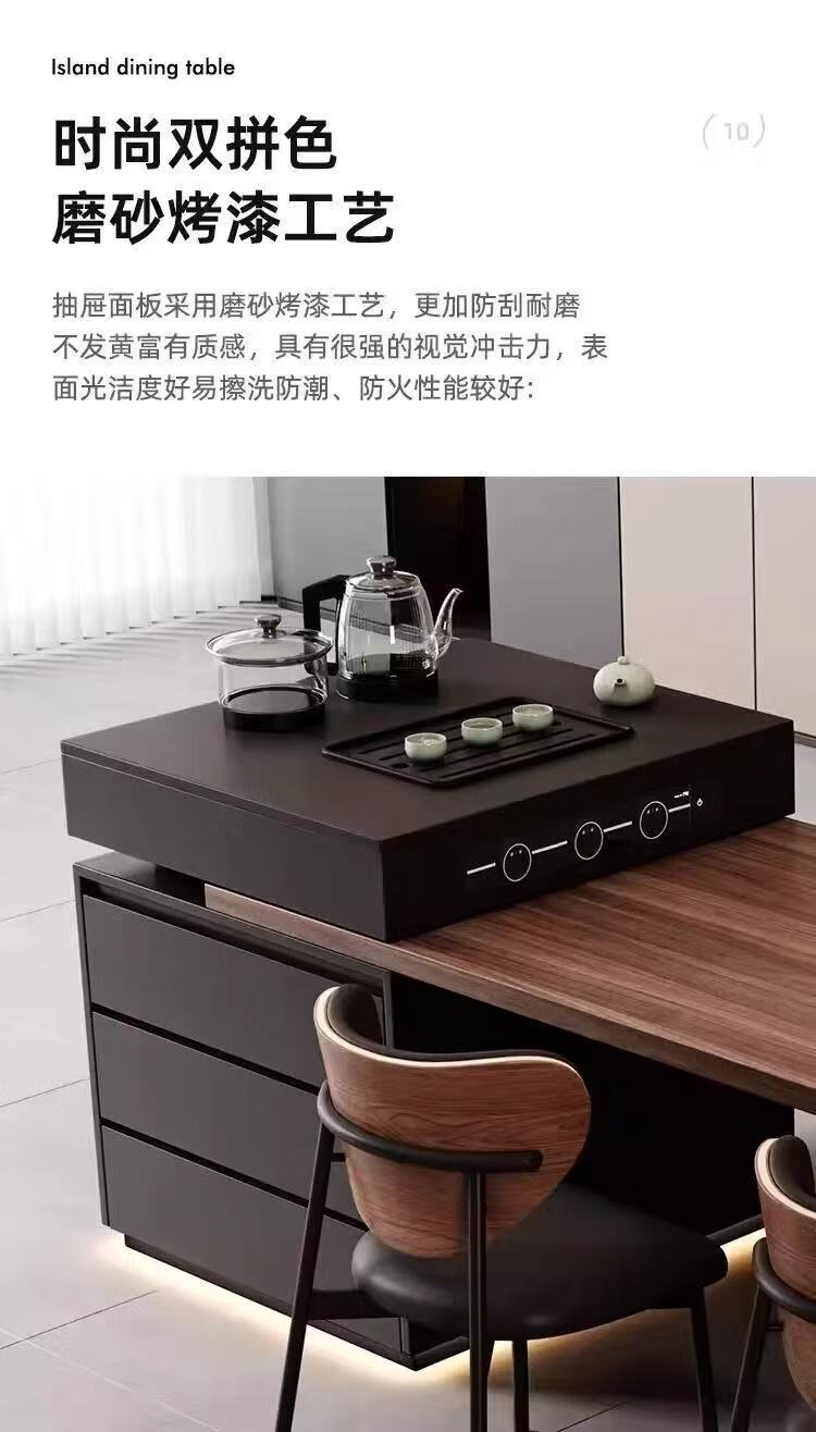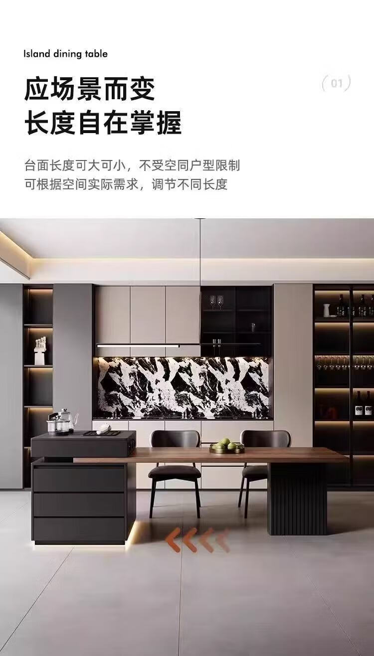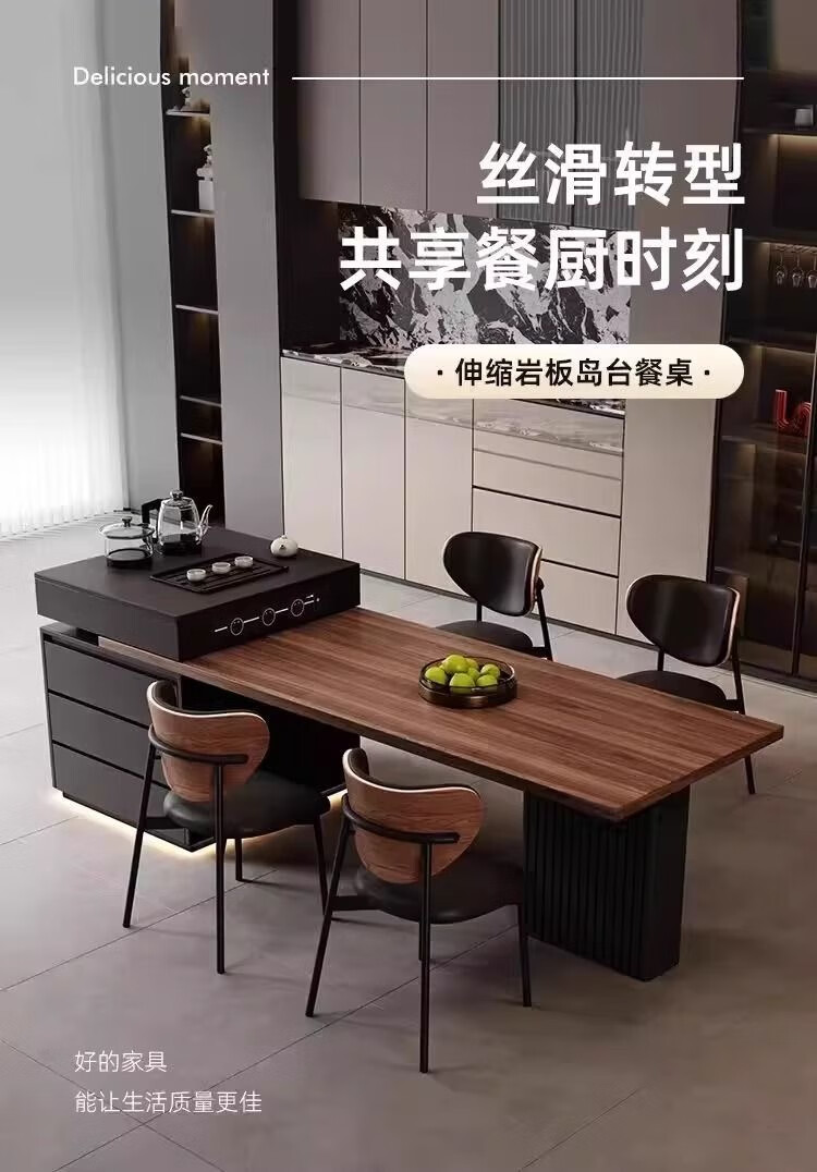Slate Italian style island dining table minimalist retractable small apartment home high-end all-in-one multifunctional living room tea making island island dining table + flat version (orbit socket) 1.6 meters one table and four chairs (goat chair)