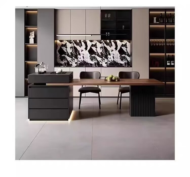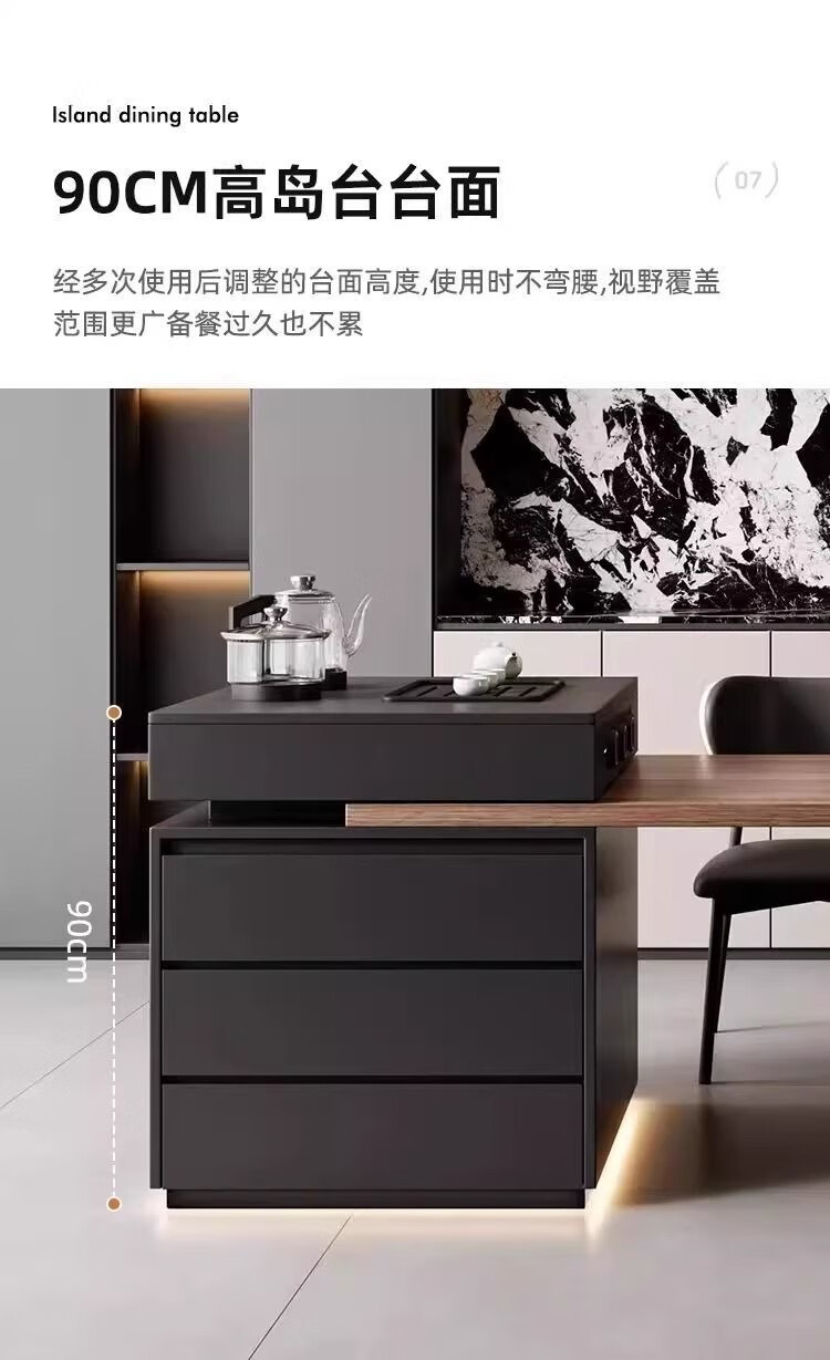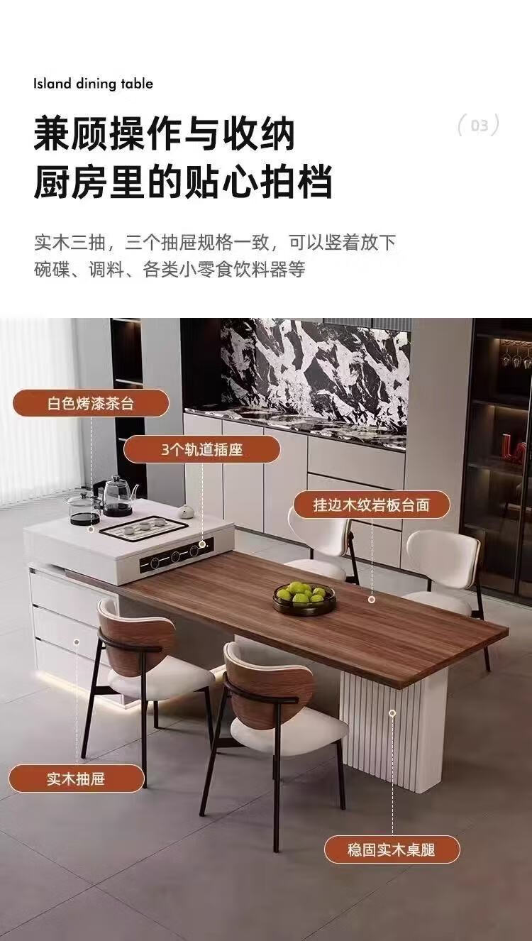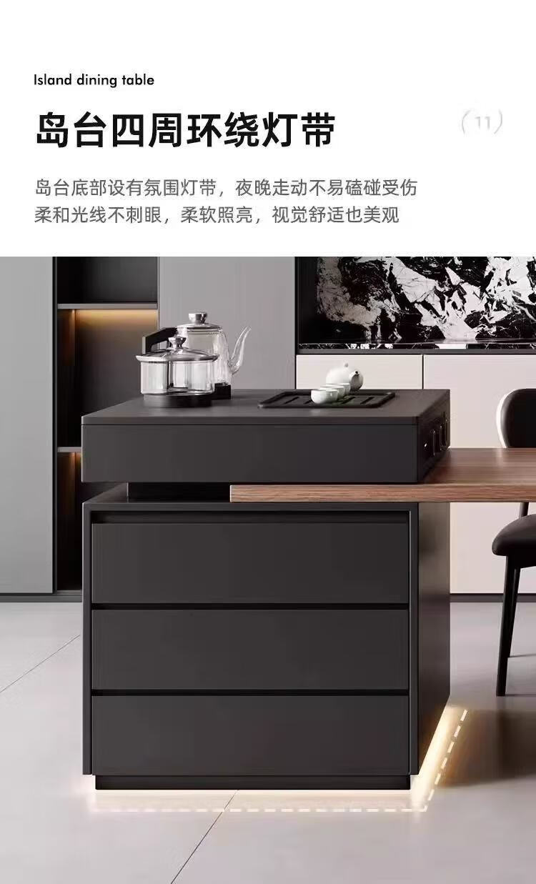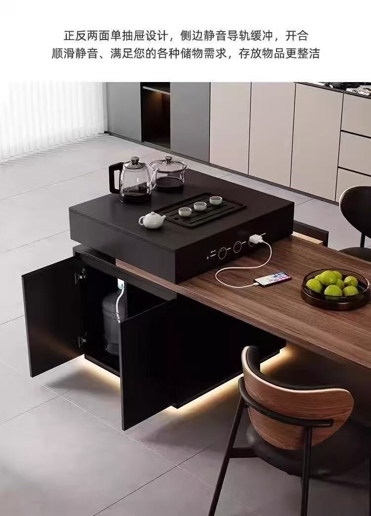 Slate Italian style island dining table minimalist retractable small apartment home high-end all-in-one multifunctional living room tea making island island dining table + flat version (orbit socket) 1.6 meters one table and four chairs (goat chair)