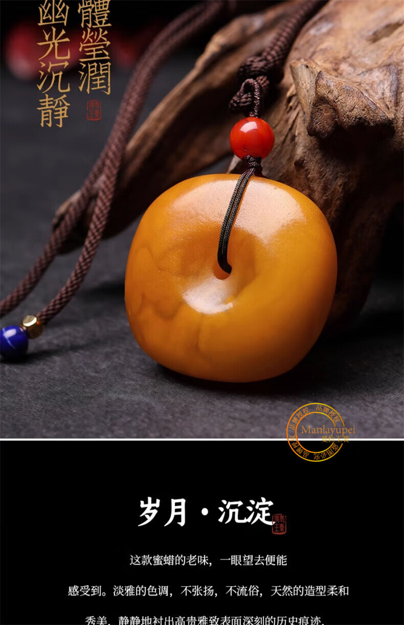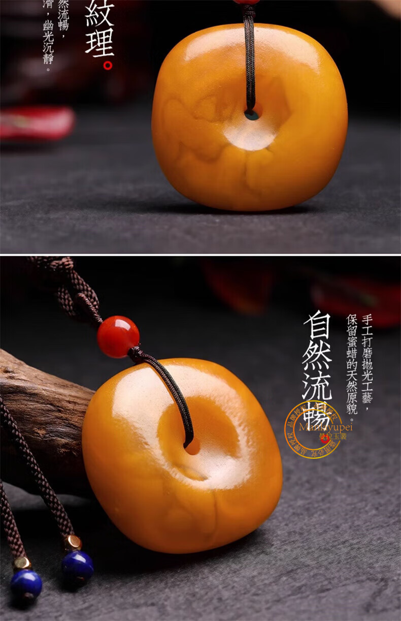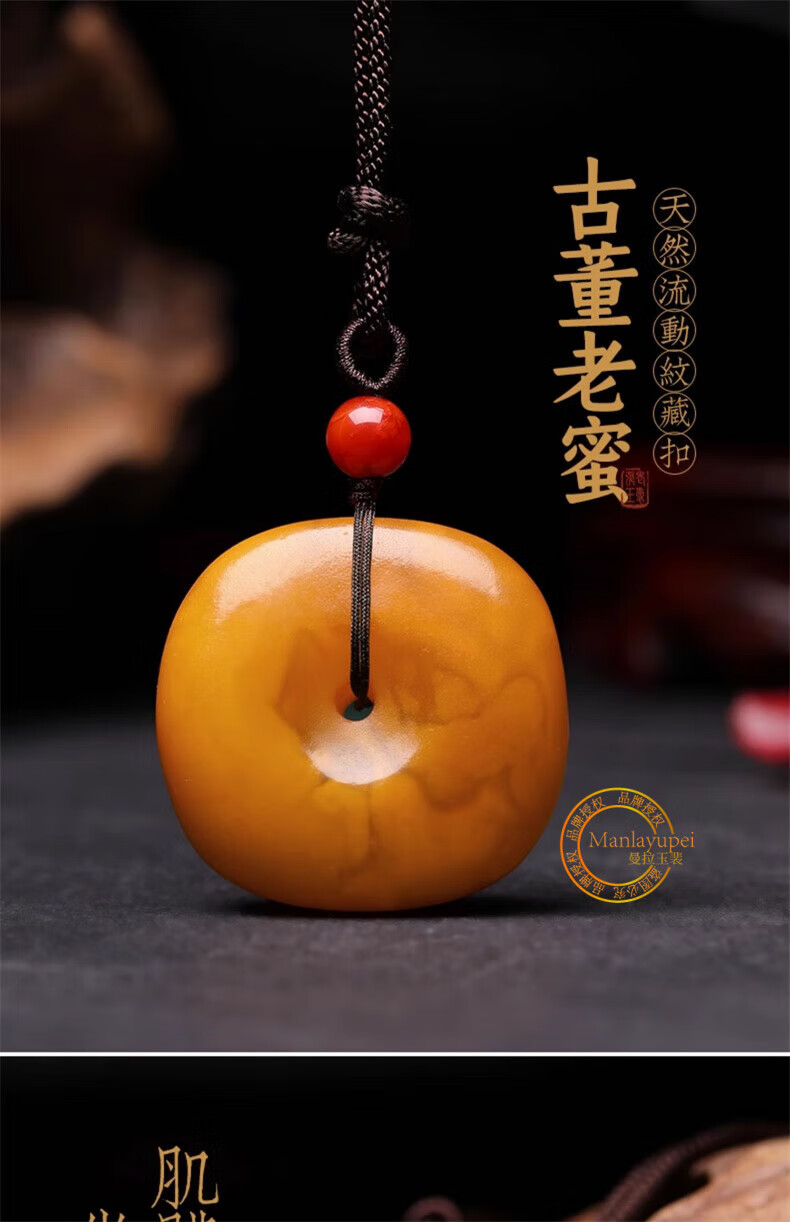 Manla Jade Pei natural beeswax peace buckle pendant men and women sweater chain old honey antique wax hidden buckle jade pendant genuine peace buckle pendant