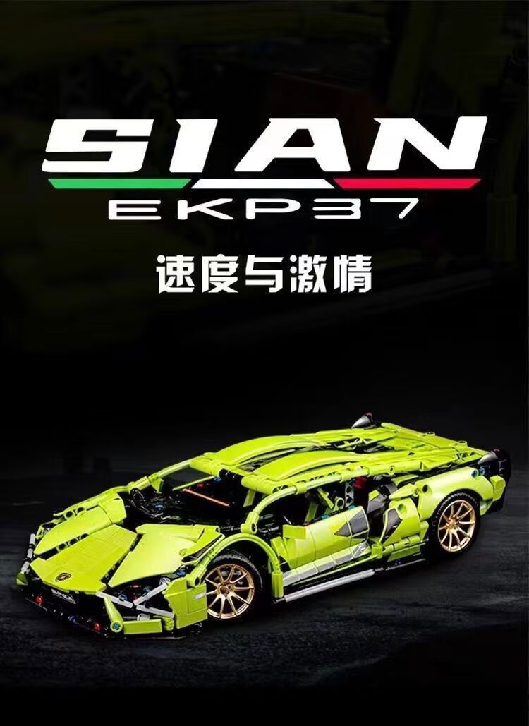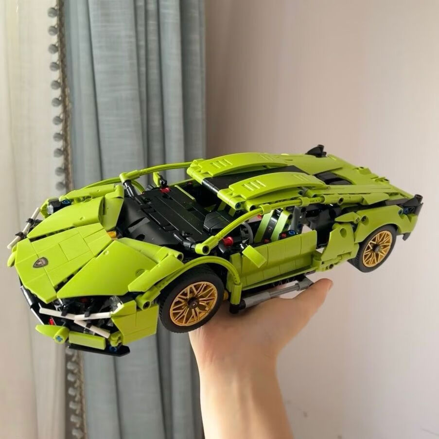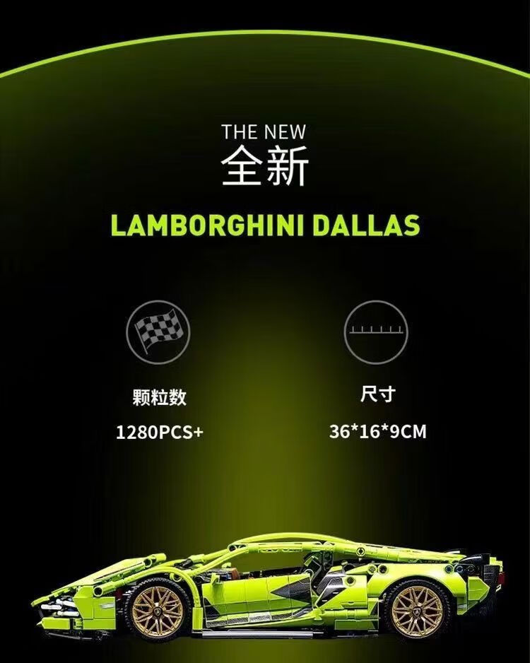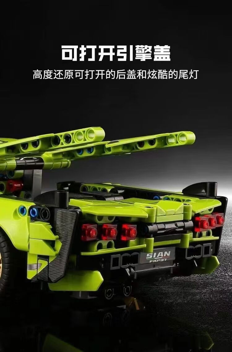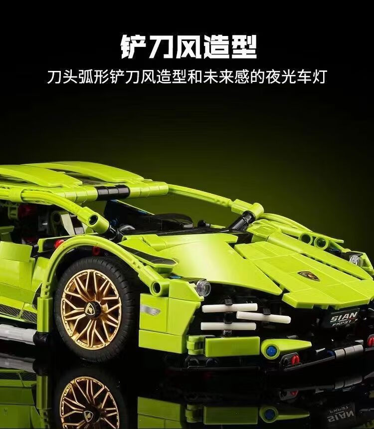 Shantou Lincun domestic building blocks Lamborghini Green Bull racing supercar display ornaments for children boys and girls assembly Big Green Bull remote control power set HD Yak