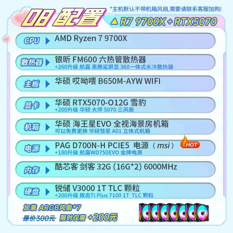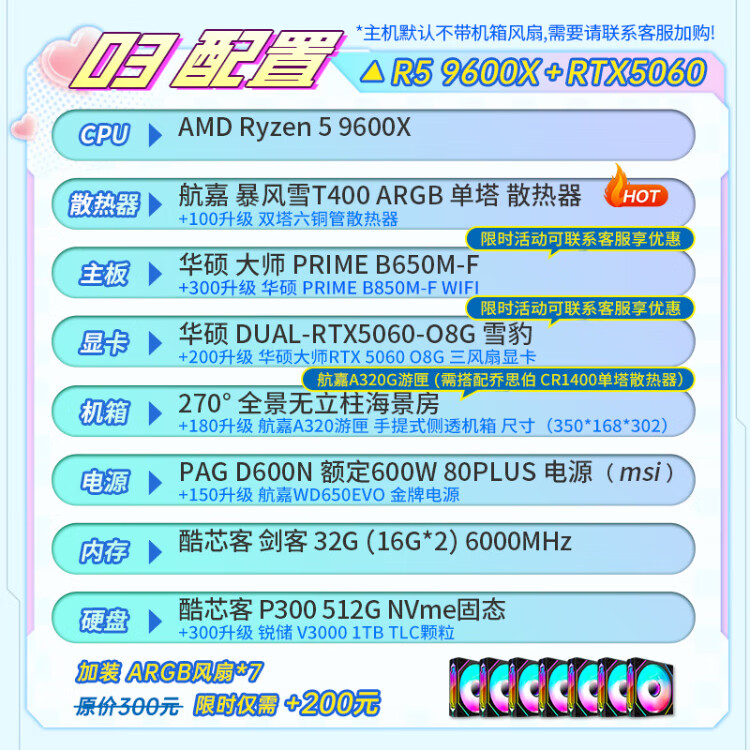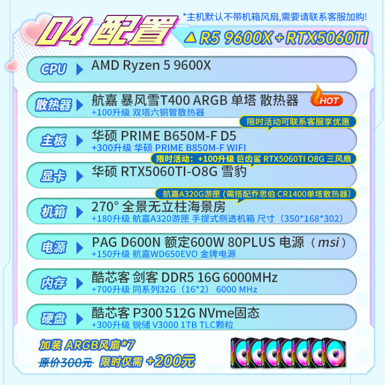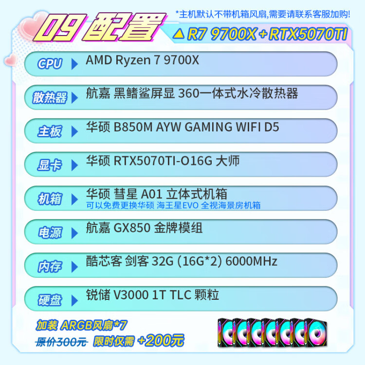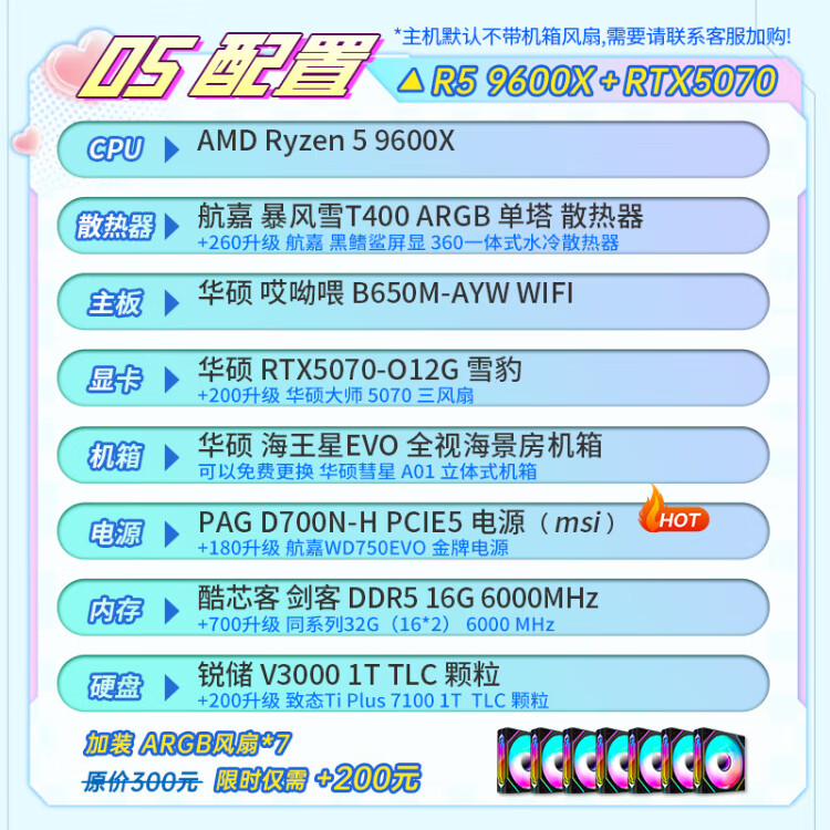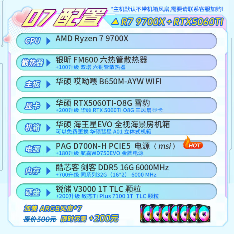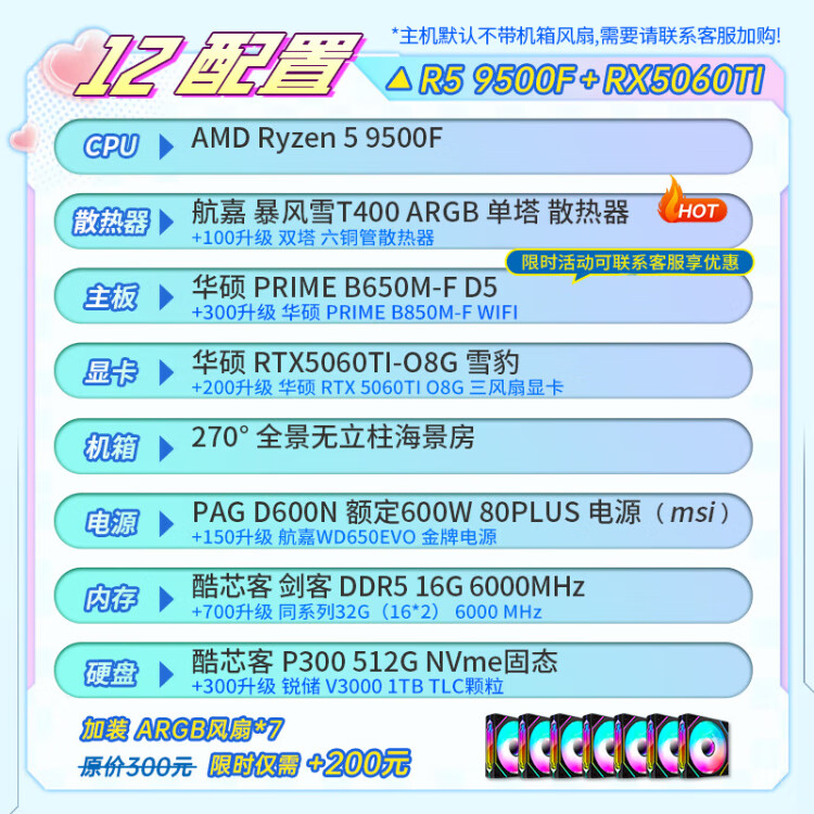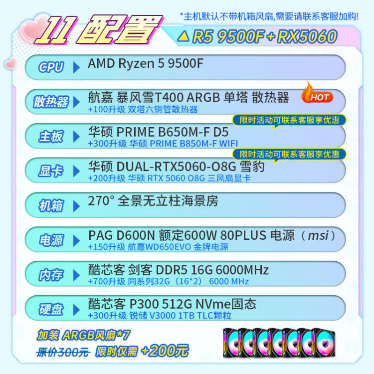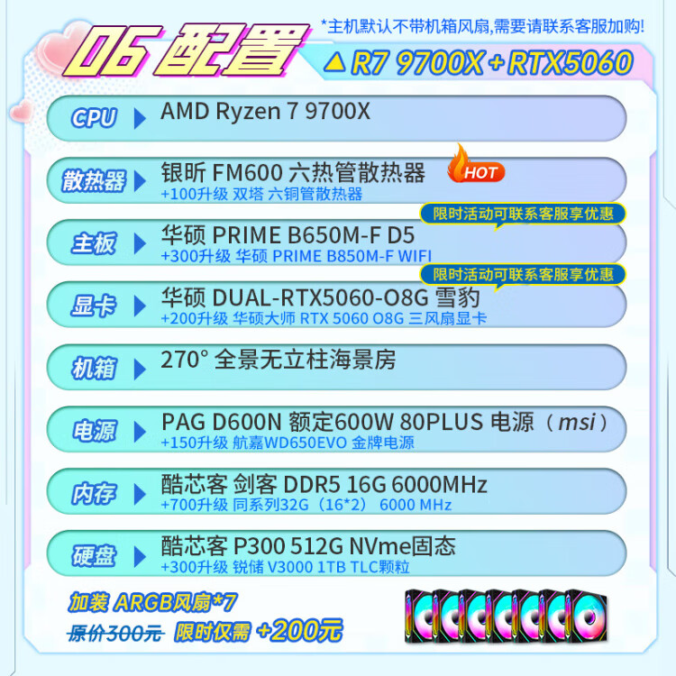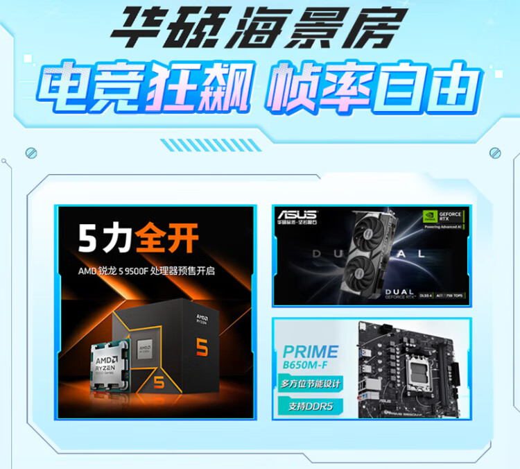 ASUS AMD Ryzen R5 9600X/9700X/RTX5060/ Family Bucket Desktop Host Rendering Design Drawing Machine High-end E-Sports Game DIY Assembly Computer High Configuration 9600X+5060+32G+Bluetooth WIFI