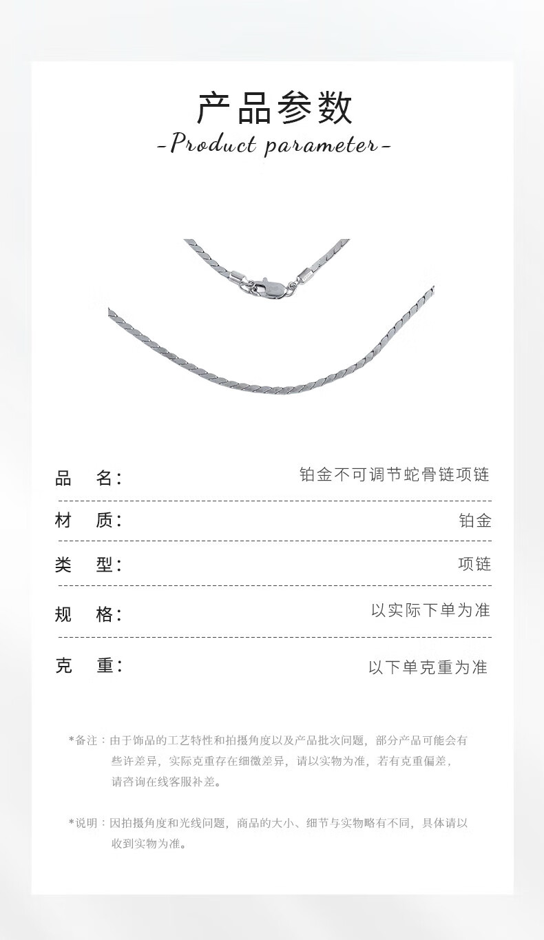 Beijing Gold Trading Center Co., Ltd. PT950 platinum necklace non-adjustable snake bone chain necklace for men and women, about 14.11g