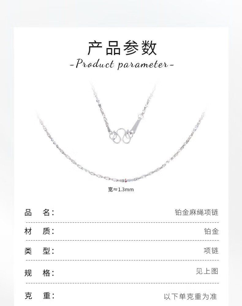 Beijing Gold Trading Center Co., Ltd. Platinum Necklace Hemp Rope Simple Fashionable Versatile Necklace for Boyfriend and Husband Holiday Birthday Gift 2025 About 5.13g