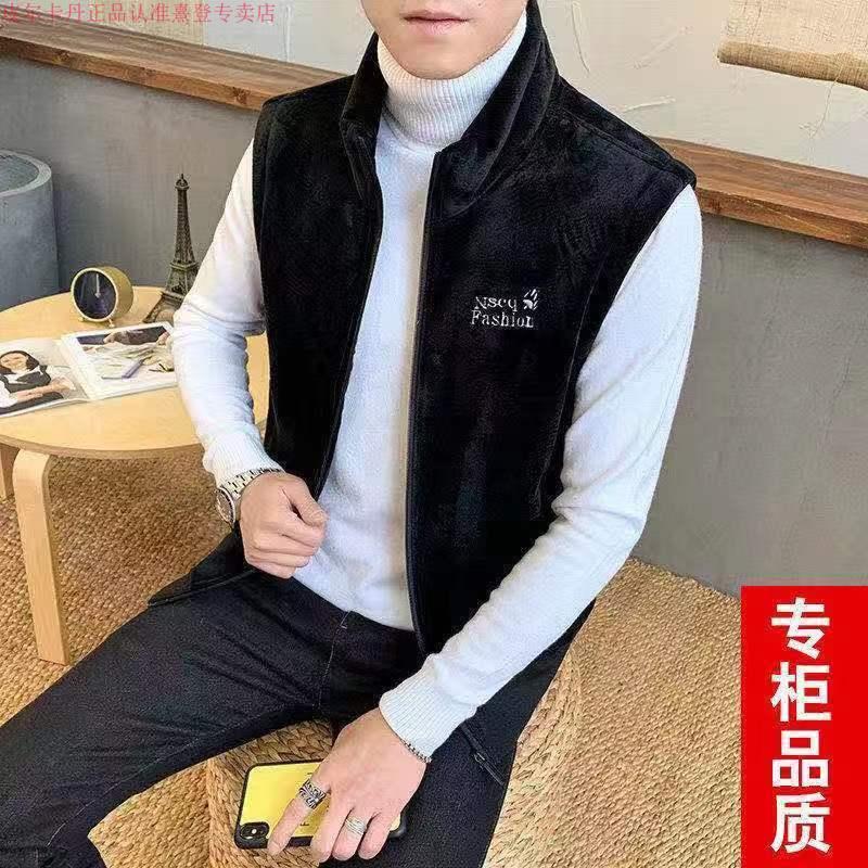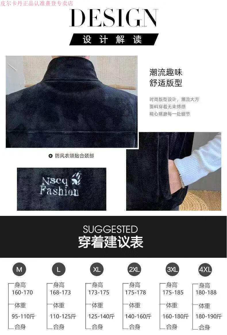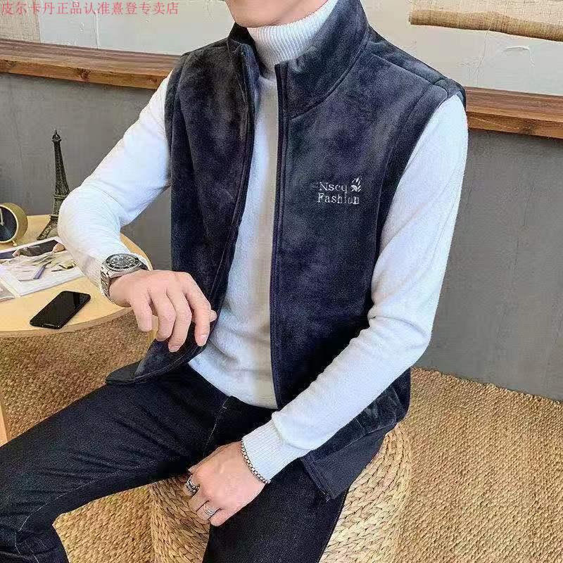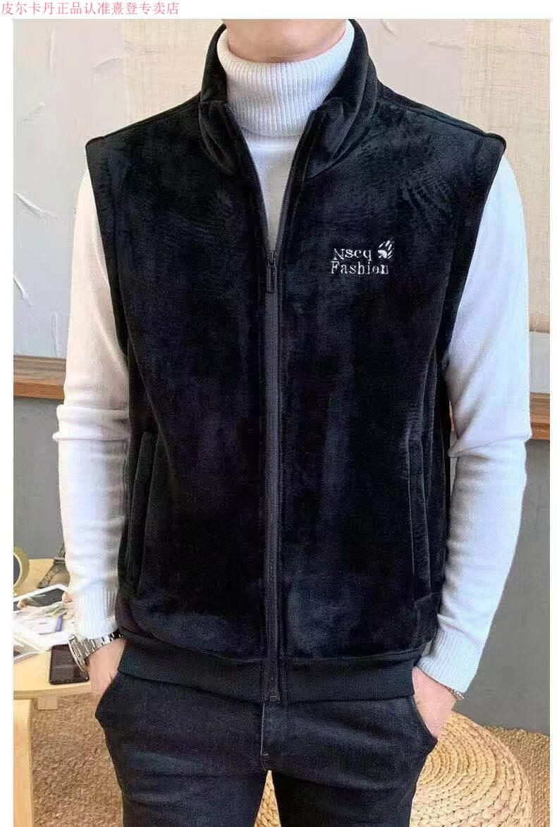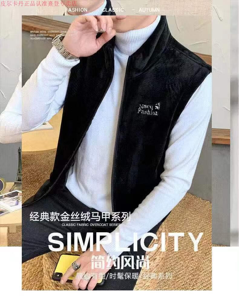 Pierre Cardin gold velvet winter vest plus velvet thickened warm lamb velvet waistcoat stand-up collar vest top jacket for men gray vest plus velvet XL recommended 120-140 Jin Jin is equal to 0.5 kg