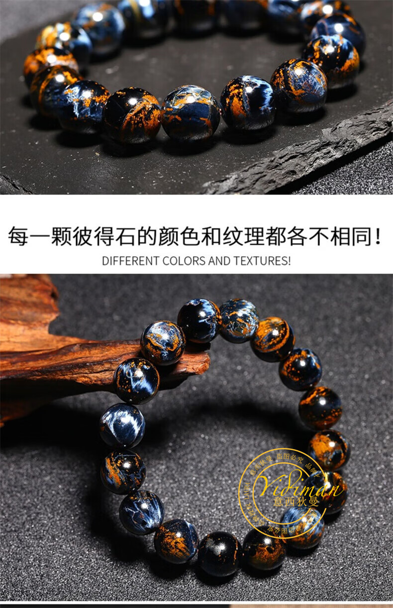 Italian natural Peter stone bracelet for men and women Namibia gold and blue bracelet jewelry birthday gift 7mm natural Peter stone bracelet single circle