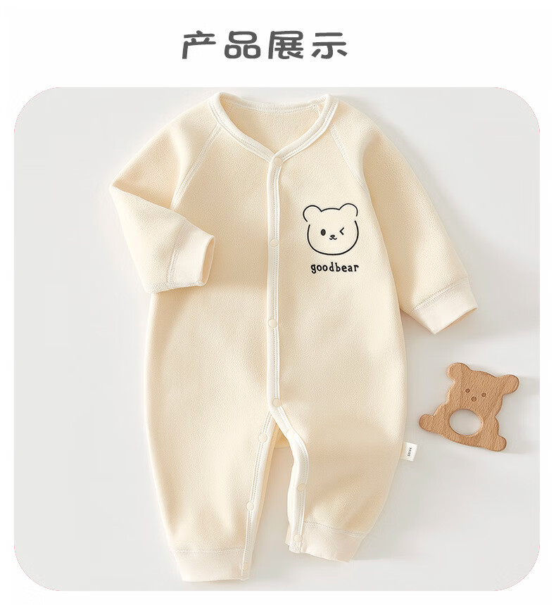 Xinnan baby warm velvet jumpsuit for spring, autumn and winter, warm velvet outdoor clothing for boys and girls, baby indoor rompers, beige bear warm velvet edged jumpsuit 66cm