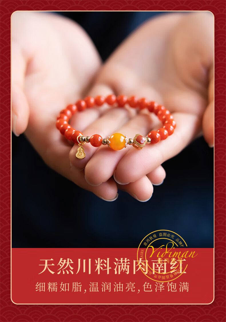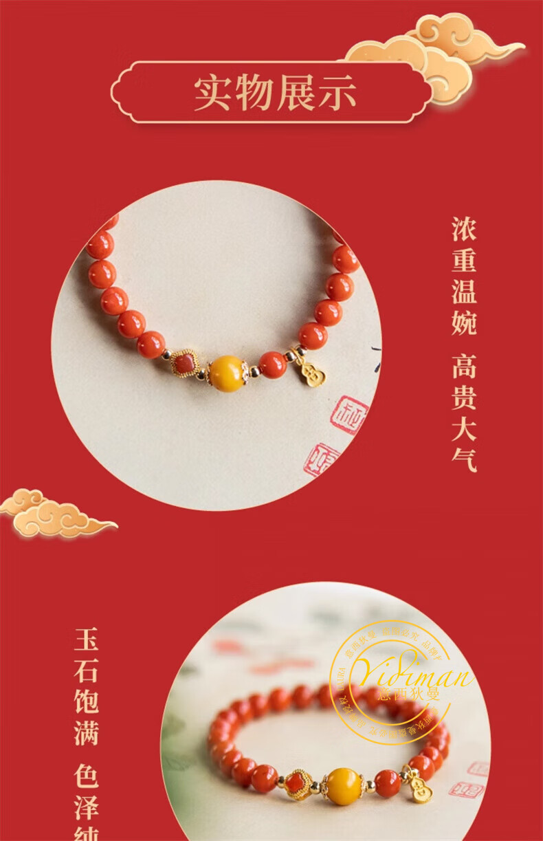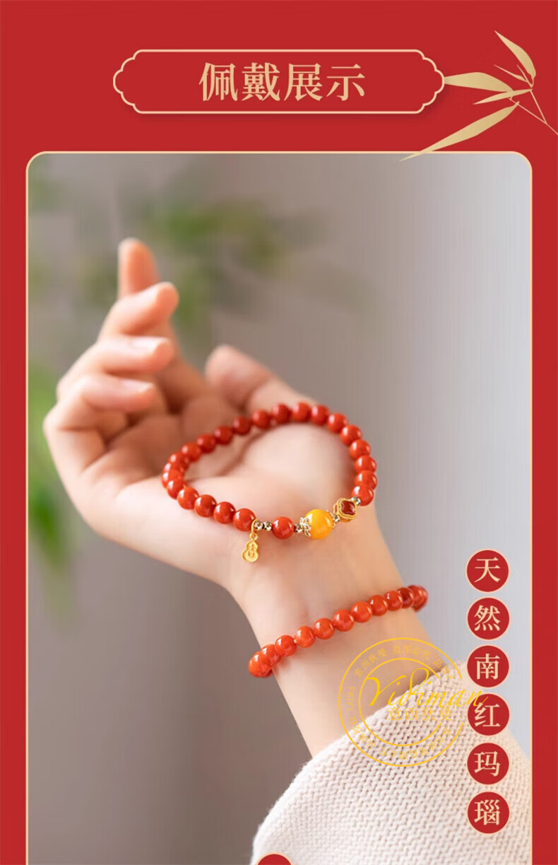 Italian Dimannan Red Bracelet Red Agate Bead Bracelet Women's Beaded Natural Beeswax Duobao Bracelet Sterling Silver Four-leaf Clover Hihe 8mm Southern Red Honey Rhyme 14-15cm Hand Circumference