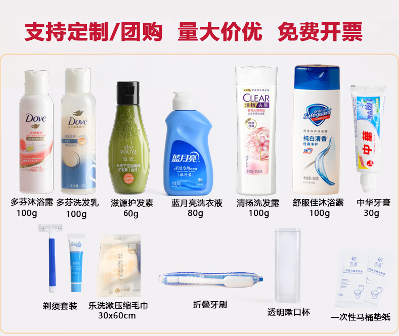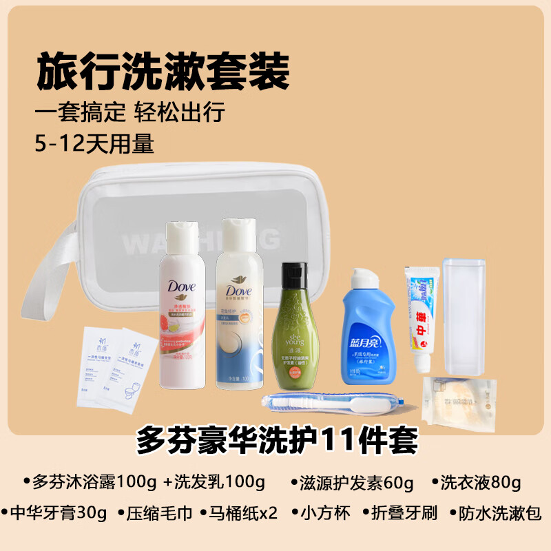 Yishi Travel Washing Set Washing and Care Portable Shampoo and Shower Gel Laundry Detergent Storage Bag Business Travel Hotel Supplies Dove Luxury Washing and Care 11-piece Set