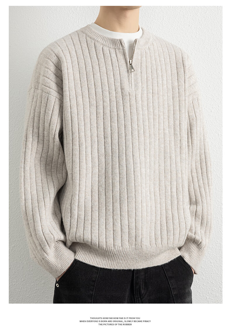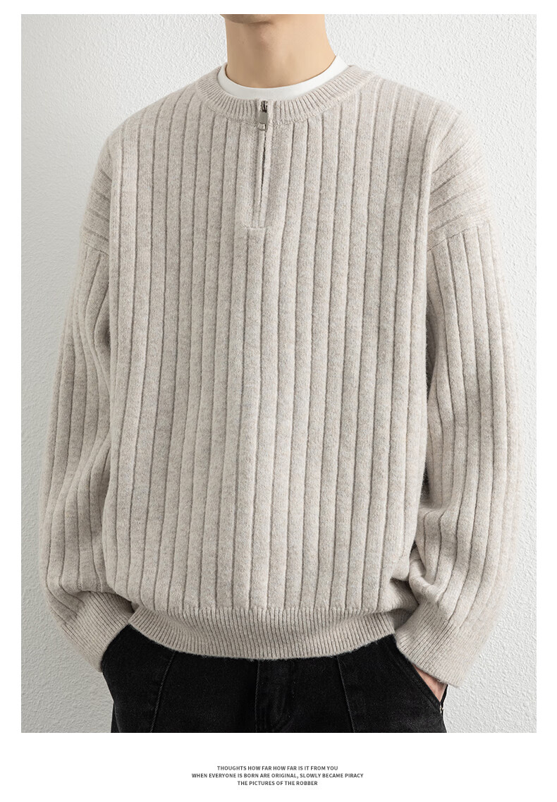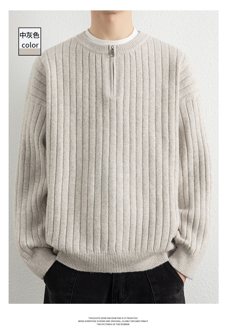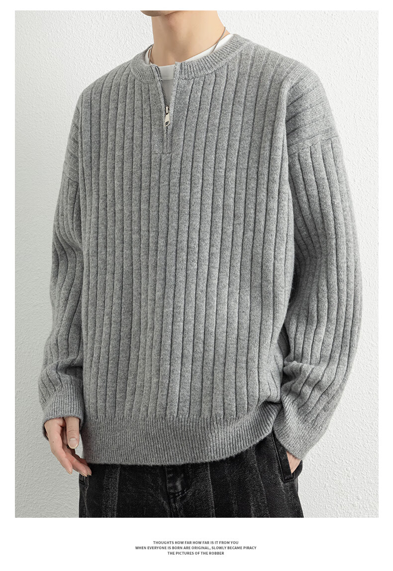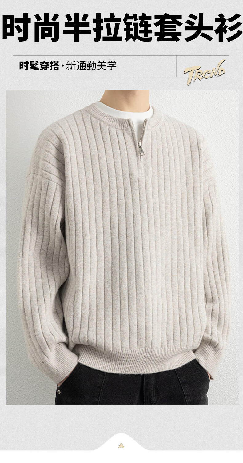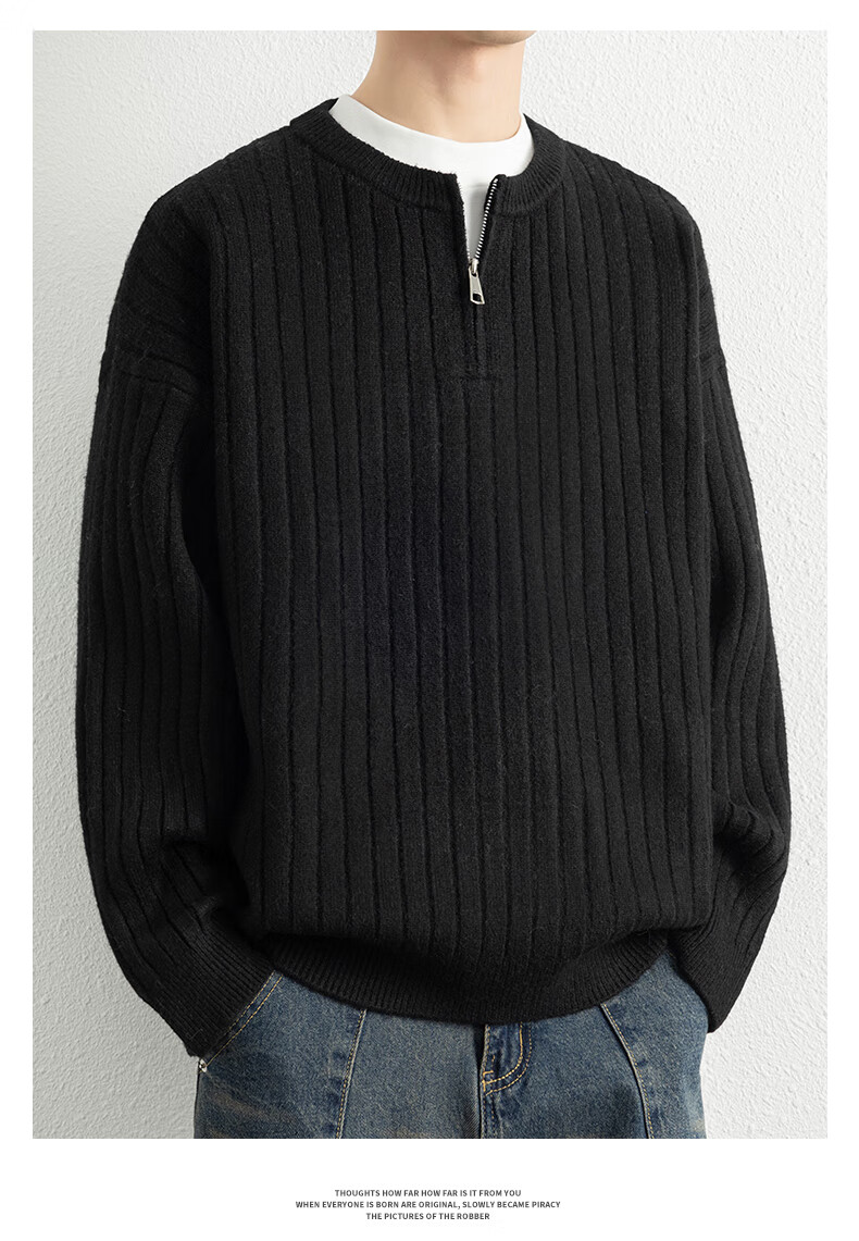 Pierre Cardin half-zip sweater for men autumn and winter 2025 new loose American style Henry collar sweater textured sweater for men 7023 black upgraded version M