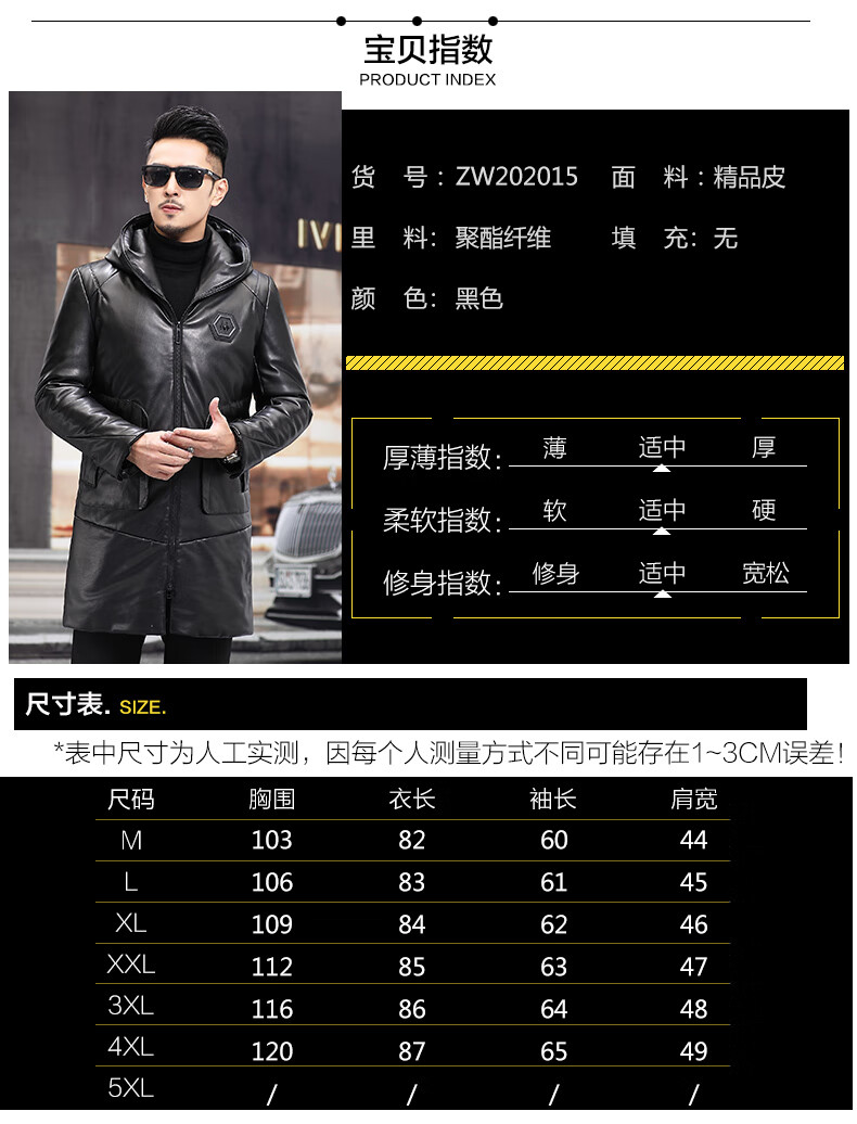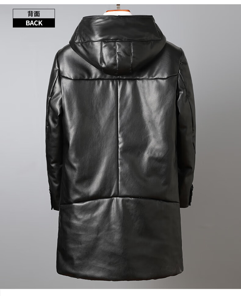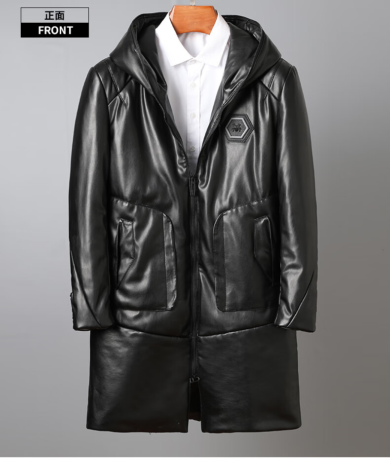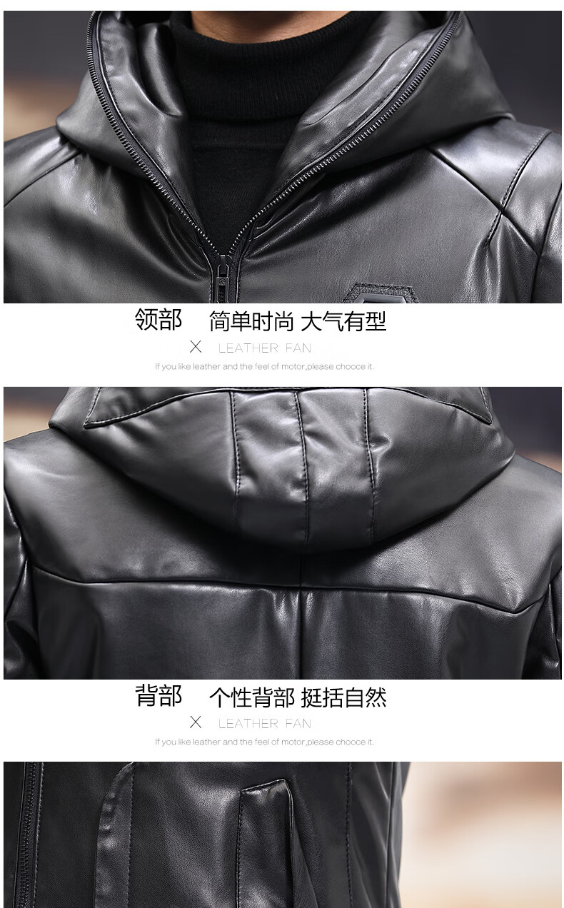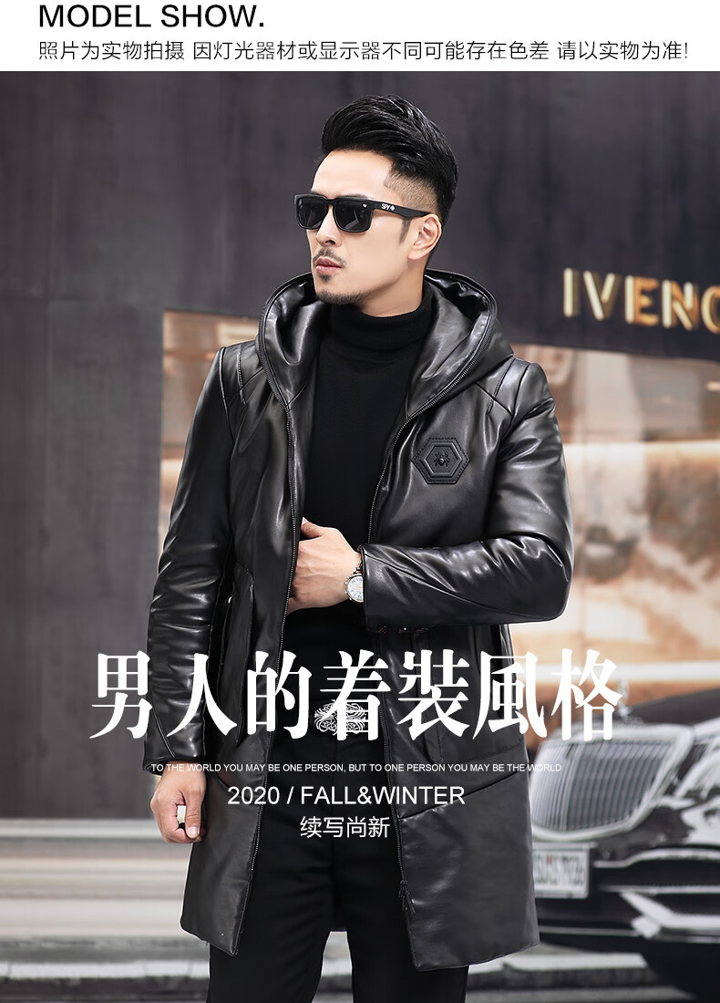 Matchstick Haining Leather Jacket Men's Sheepskin Mid-Length Casual Youth Hooded Leather Jacket Men's Trendy Jacket Winter Black M