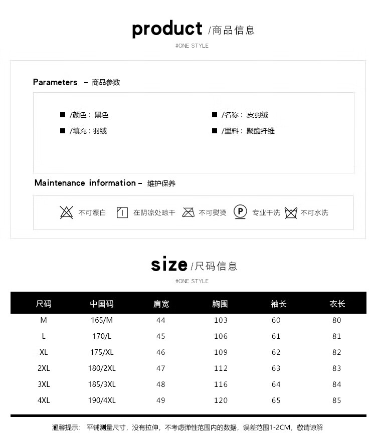 China (cm) 165 / 88-90 170 / 96-98 175 / 108-110 180 / 118-122 185 / 126-130