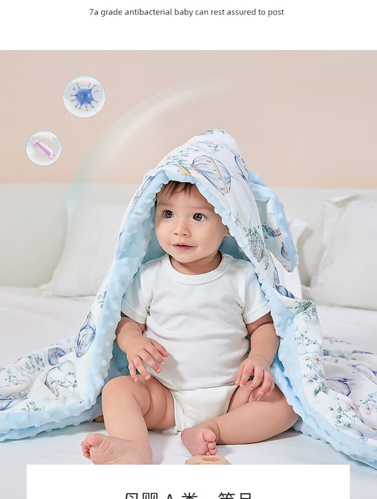 DouDouDi blanket for newborn baby, newborn beanie velvet anti-jump blanket, baby delivery room bag sheet with removable bile, Yunjian Cute Bear 90x90cm