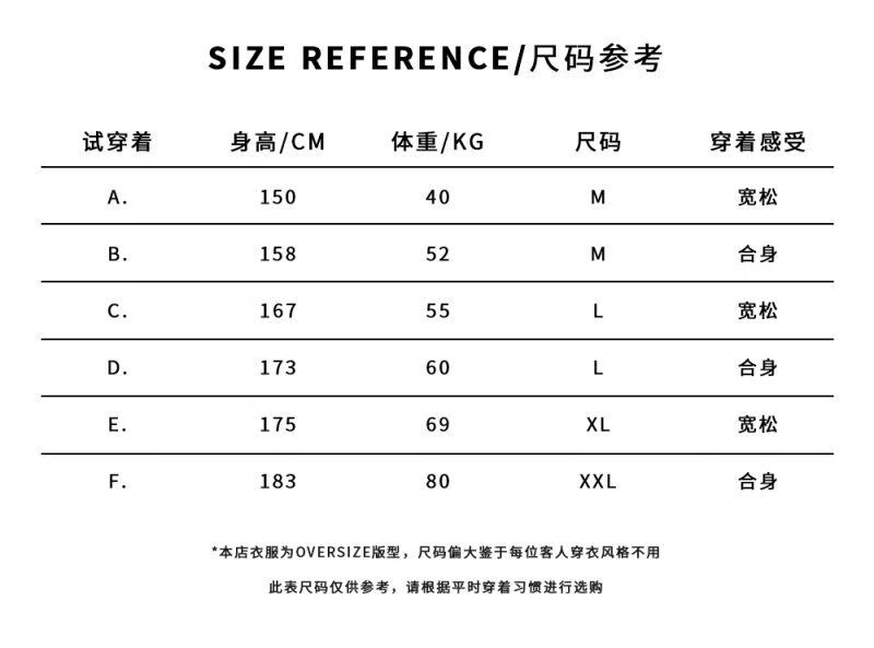 China (cm) 160-165/84-86 165-170 / 88-90 167-172 / 92-96 168-173 / 98-102 170-176 / 106-110