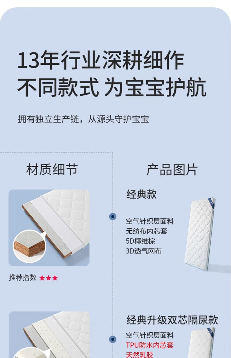 Li Mengsi baby mattress spliced mattress children's kindergarten special latex baby mattress type A maternal and infant grade coconut palm classic upgraded model 150*70