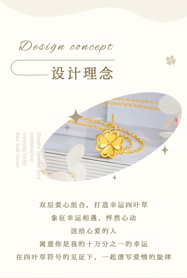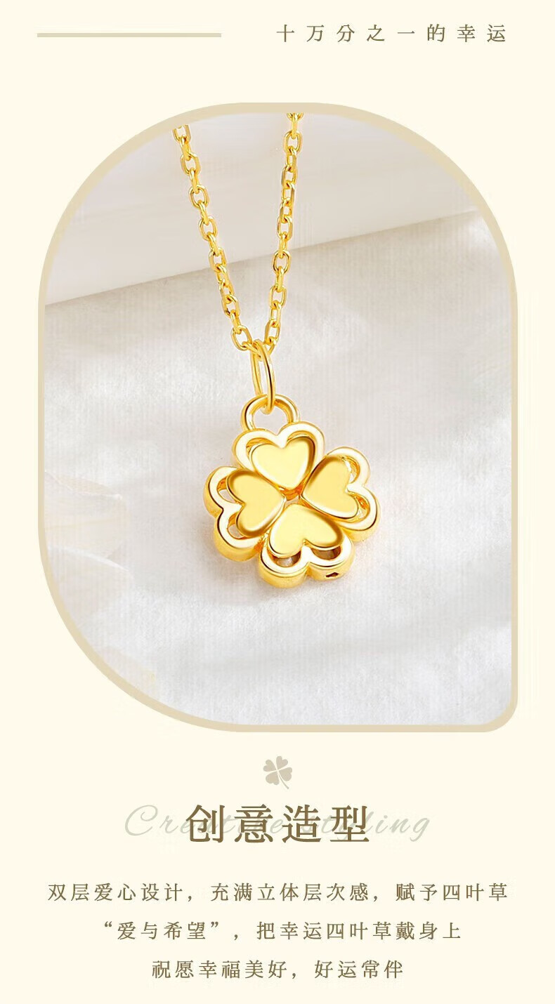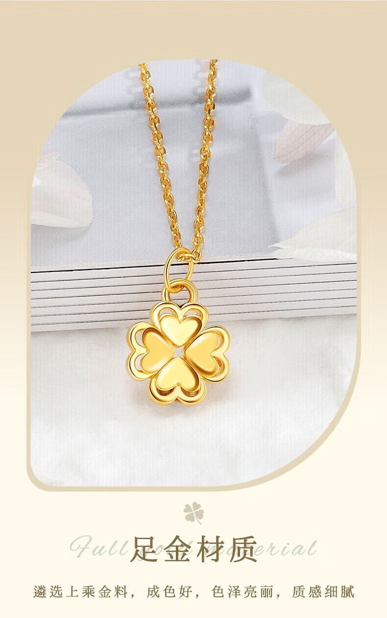 Chow Tai Fook gold necklace women's hard gold heartbeat four-leaf clover pendant love lucky four-leaf clover pure gold necklace Chinese Valentine's Day gift