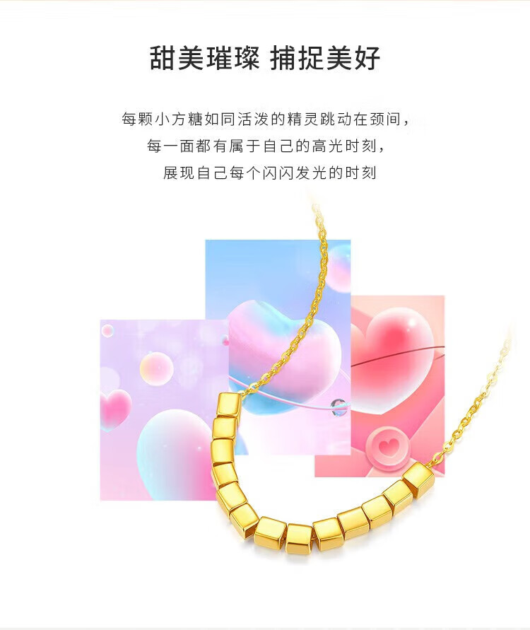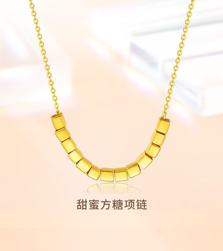 Chow Tai Fook Gold Necklace Women's Hard Gold Sugar Cube Necklace New Bafanglaicai Cube Pure Gold Necklace Women's Chinese Valentine's Day Gift