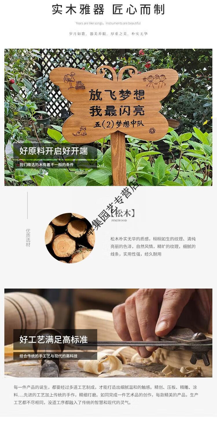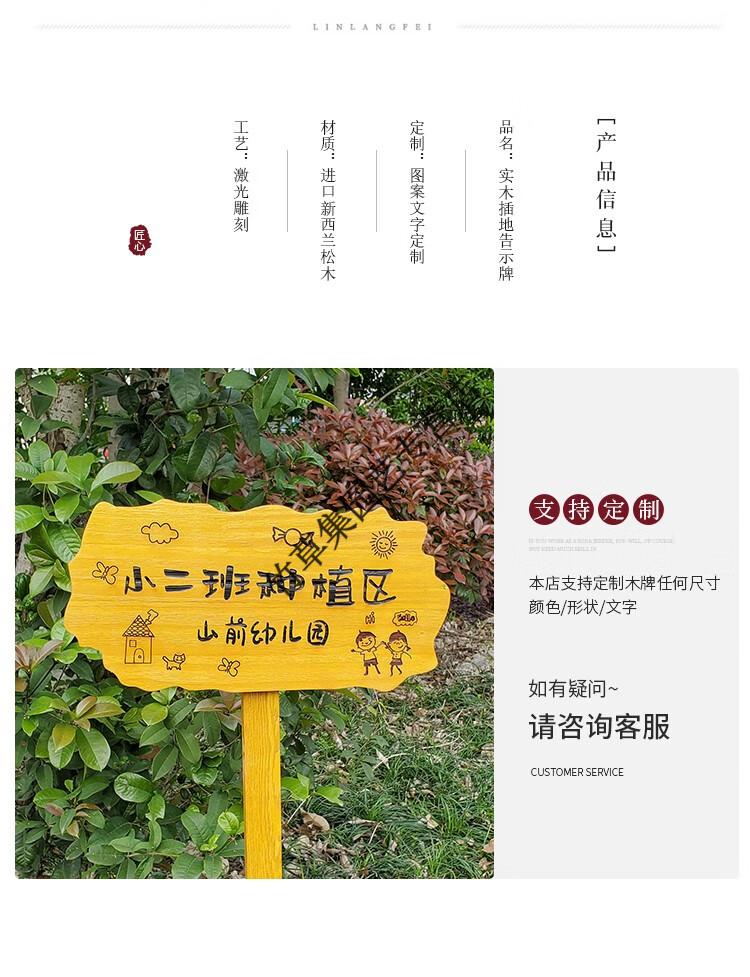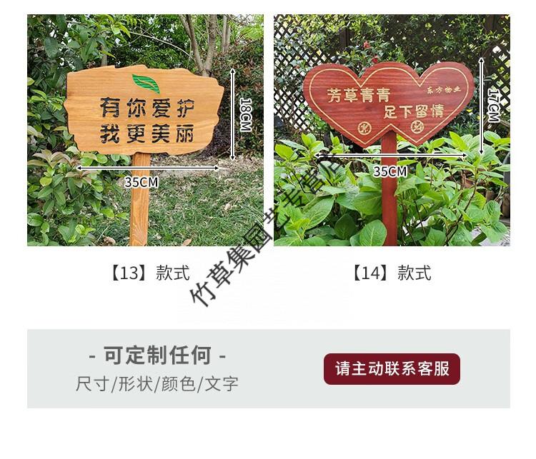 Anticorrosive wood vertical sign, care for flowers and plants sign, greening custom sign, lawn sign, warning sign, insert A18X35CM pole length 65cm