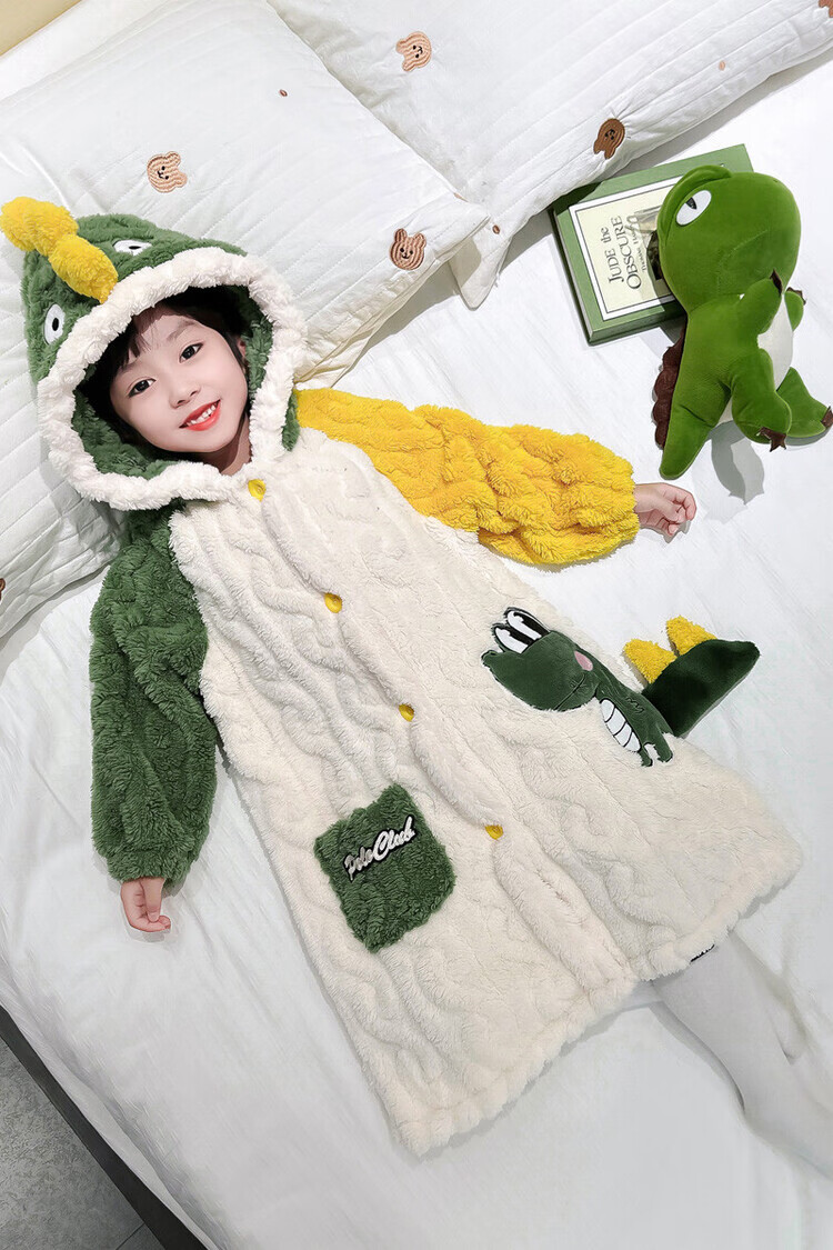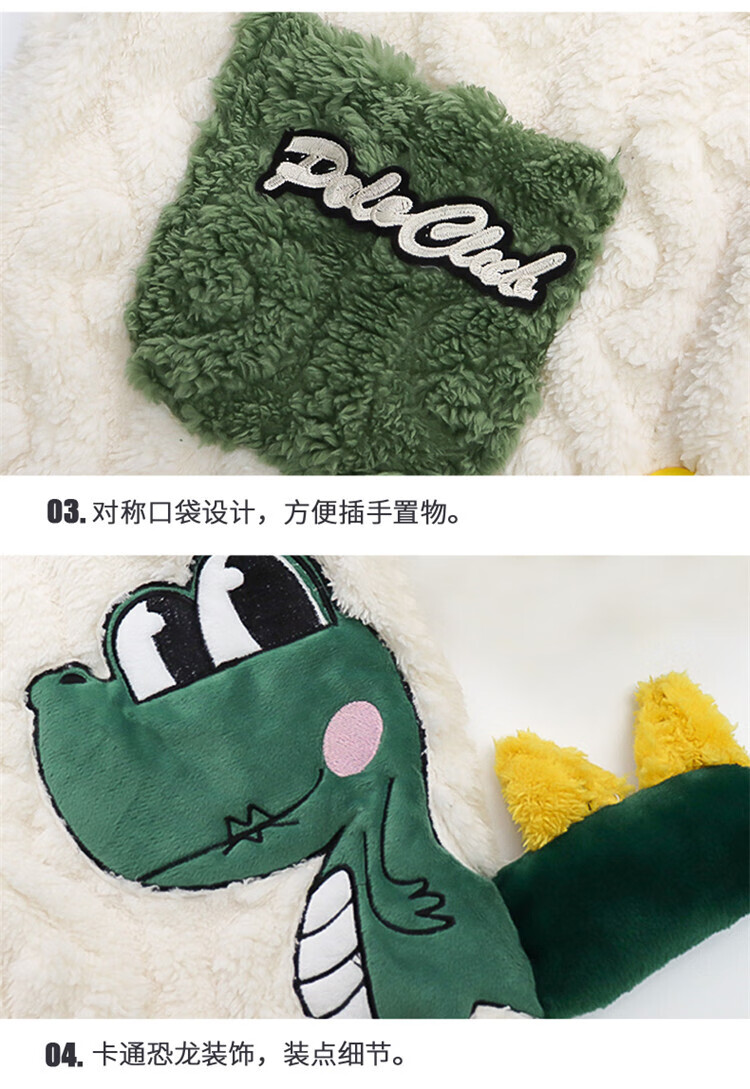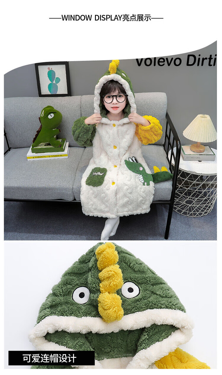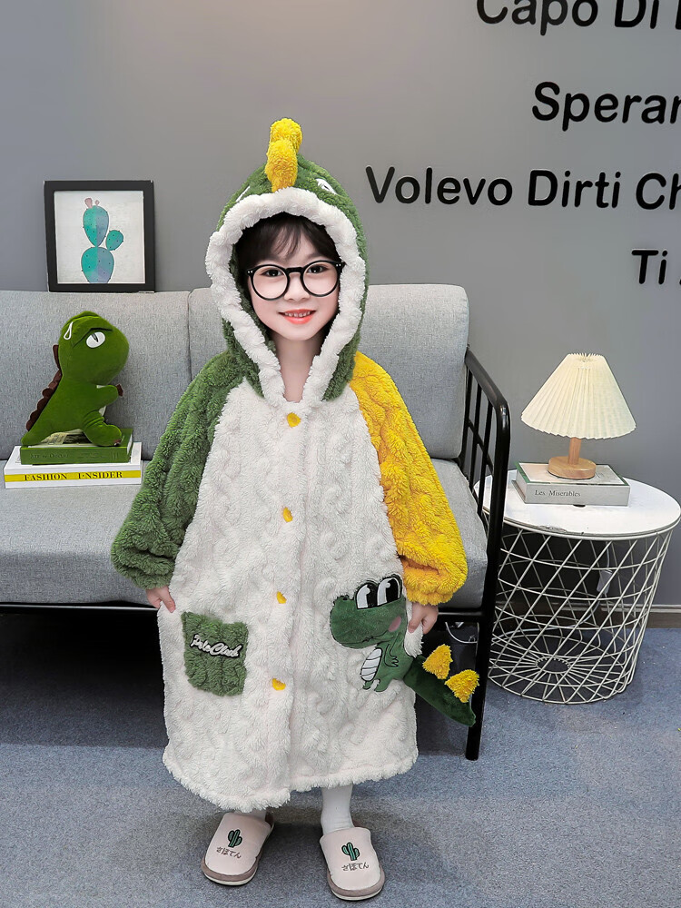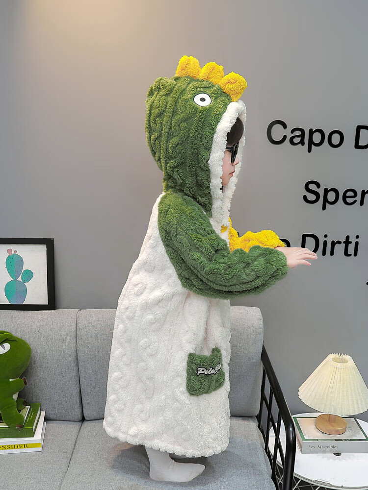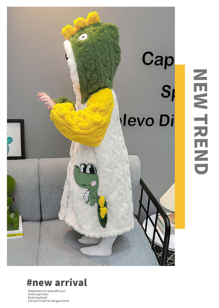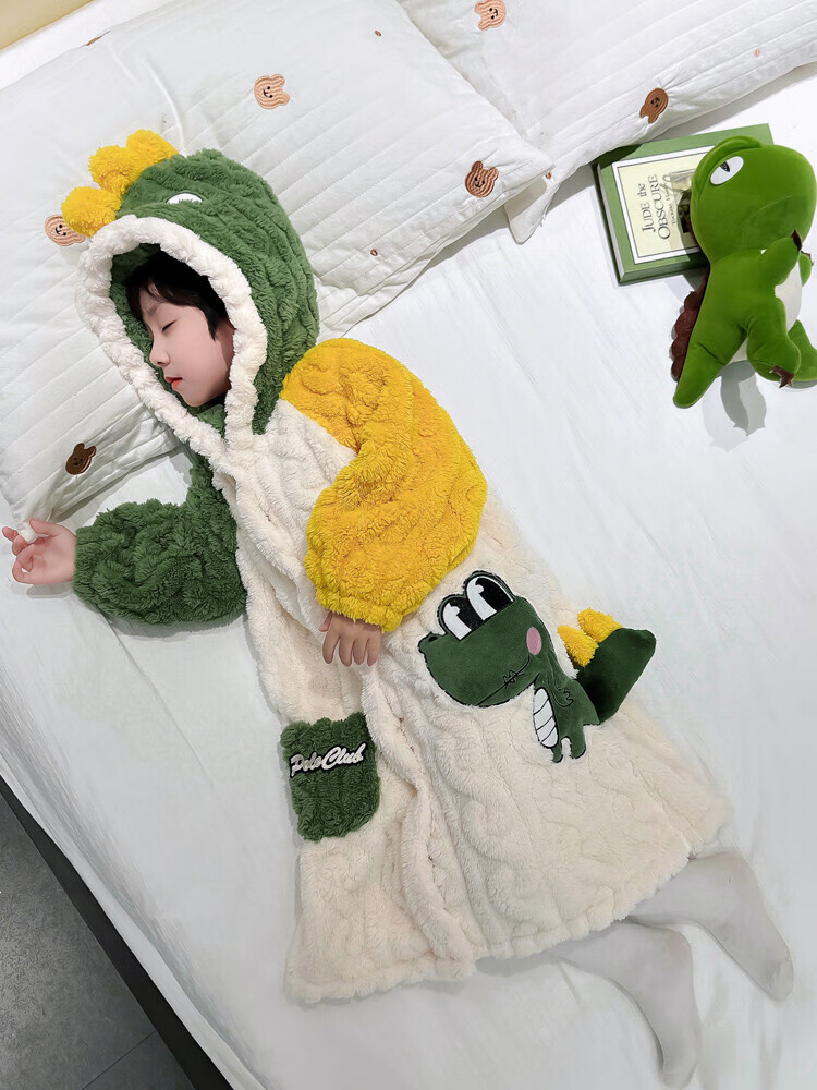 G.DUCKKIDS children's pajamas boys' winter flannel pajamas baby long hooded anti-cold bathrobe dinosaur home bathrobe beige 90 cm