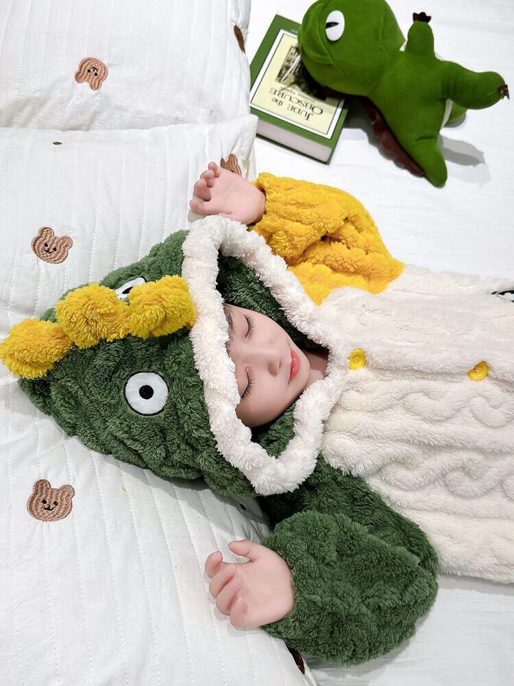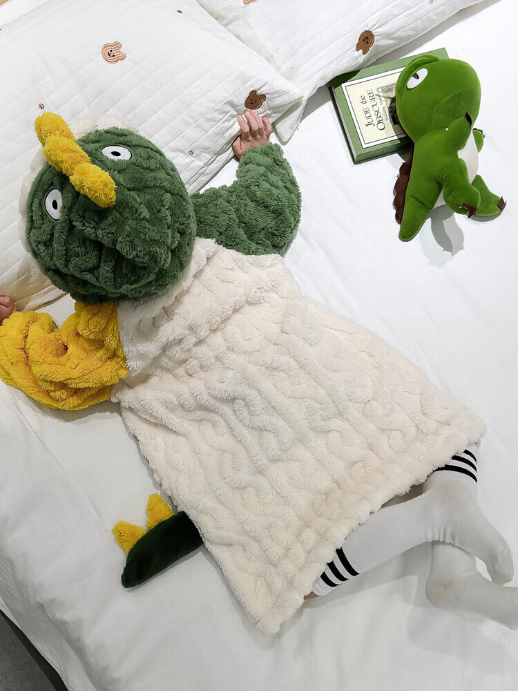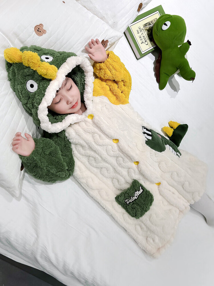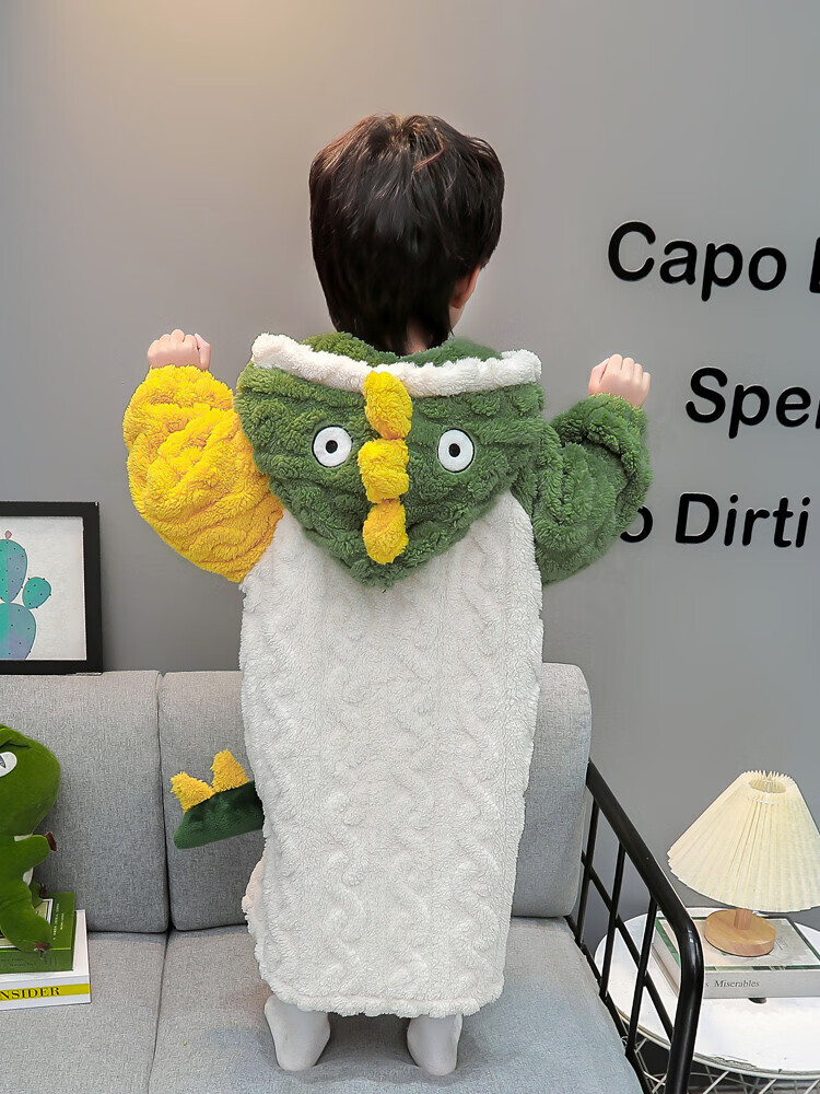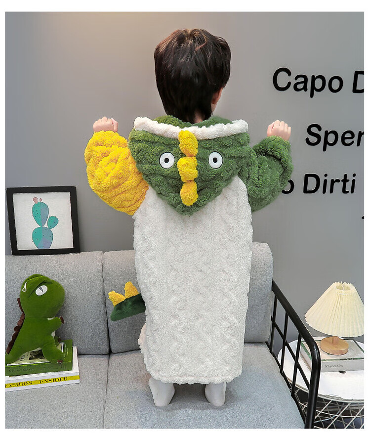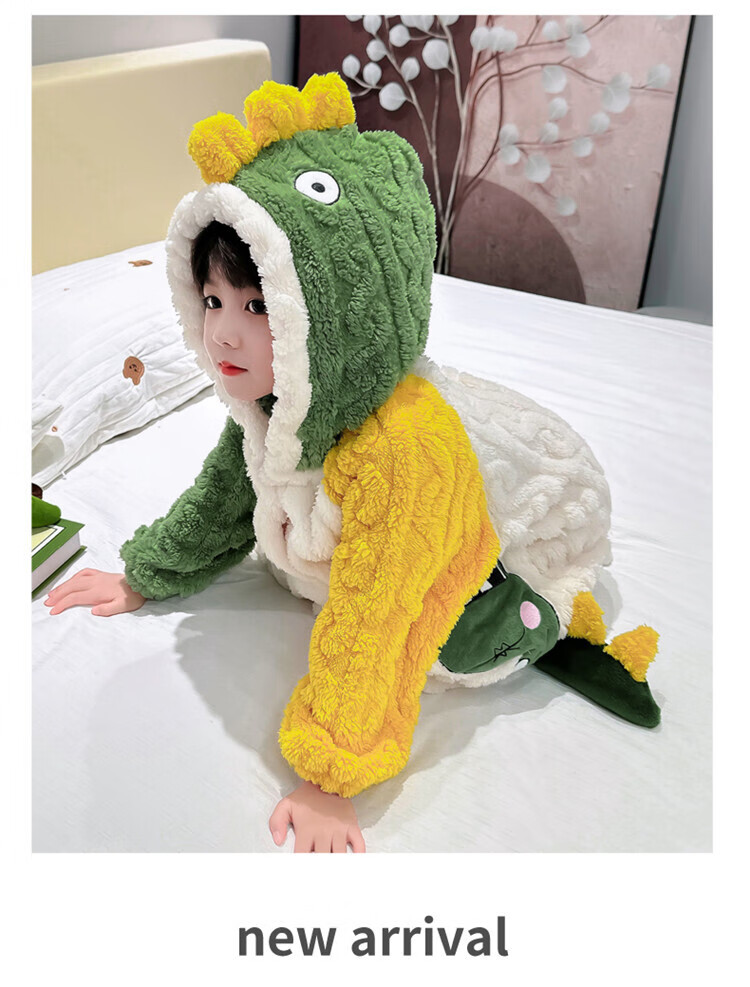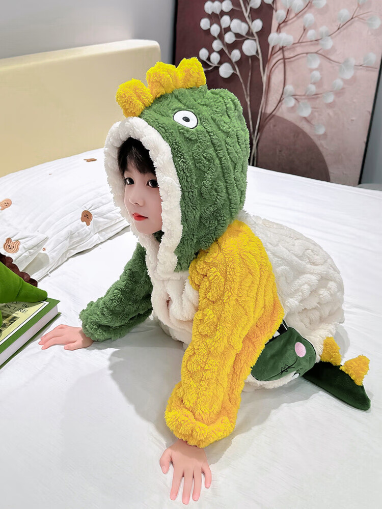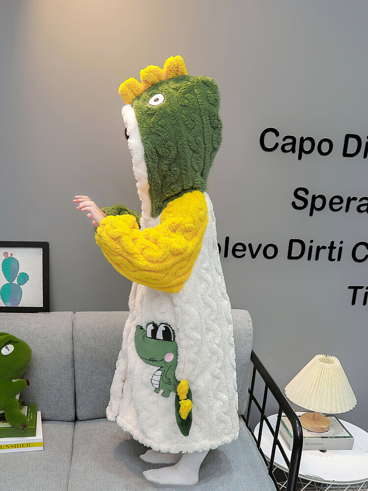 G.DUCKKIDS children's pajamas boys' winter flannel pajamas baby long hooded anti-cold bathrobe dinosaur home bathrobe beige 90 cm
